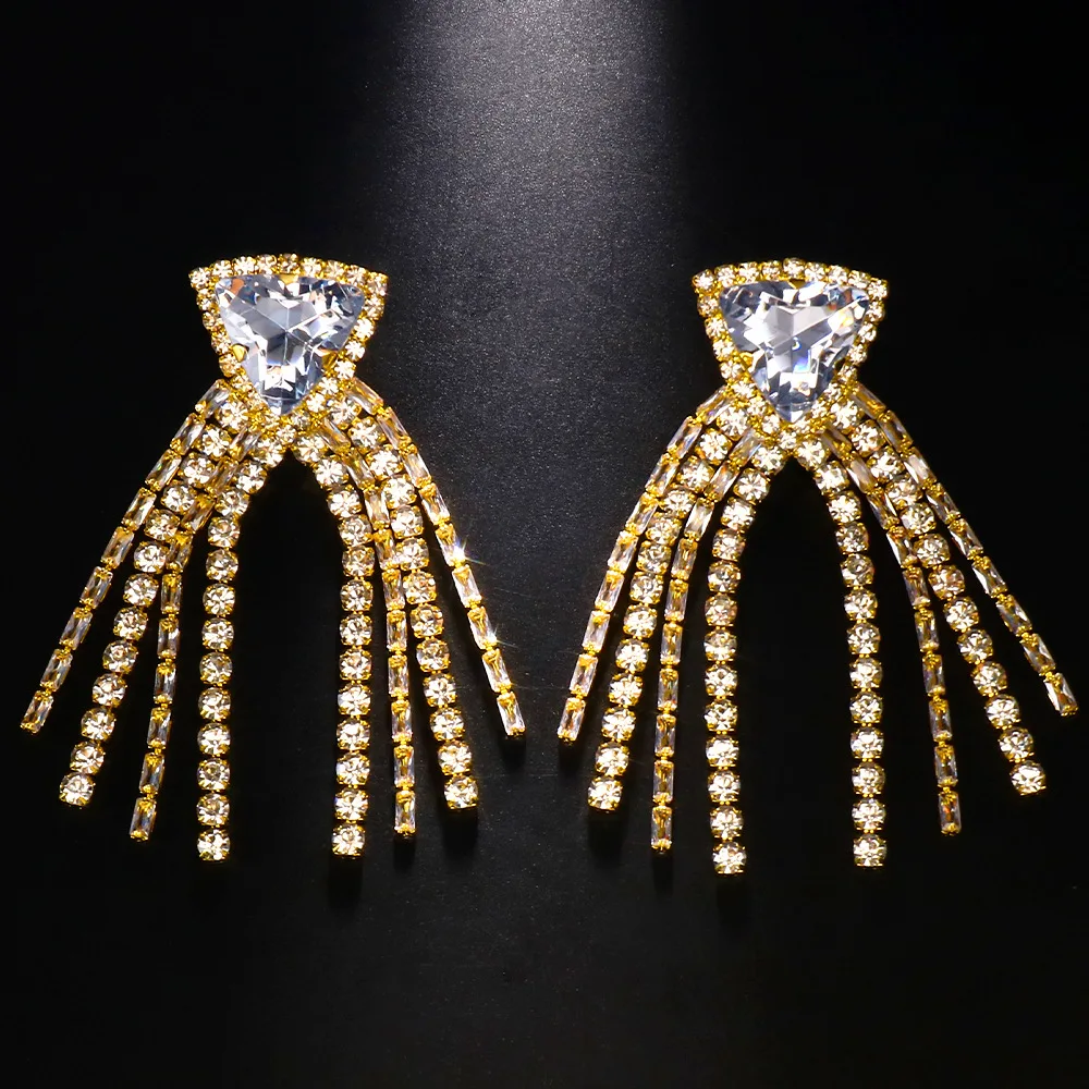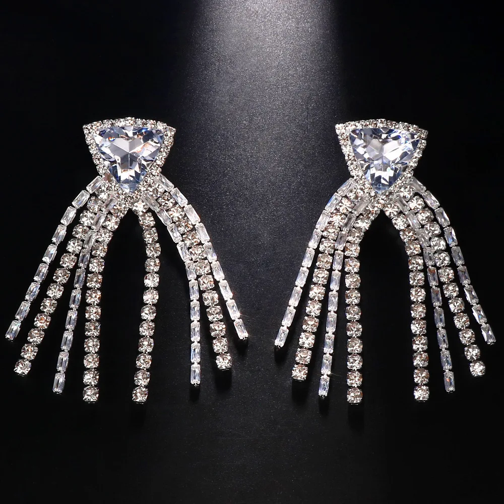 Exaggerated Triangle Tassel Rhinestone Crystal Earrings Geometric Drop Earrings Women Luxury Accessories Jewelry