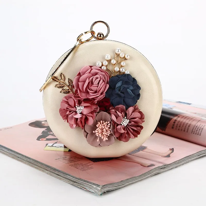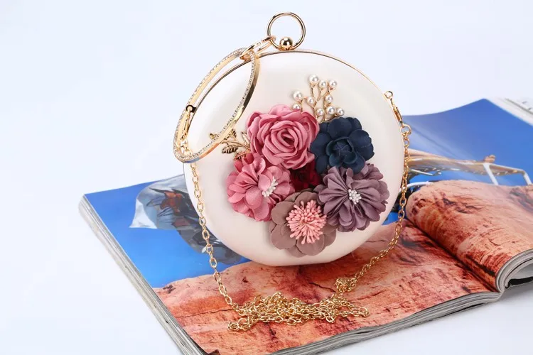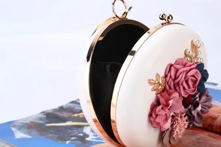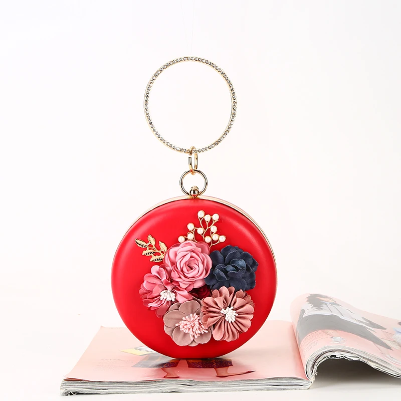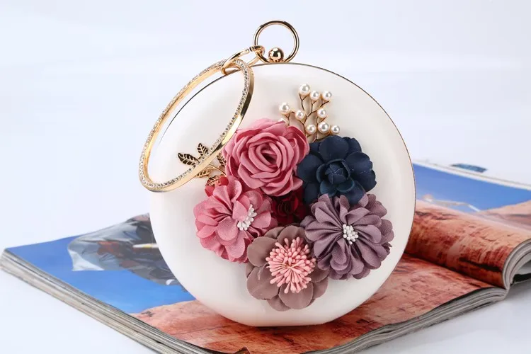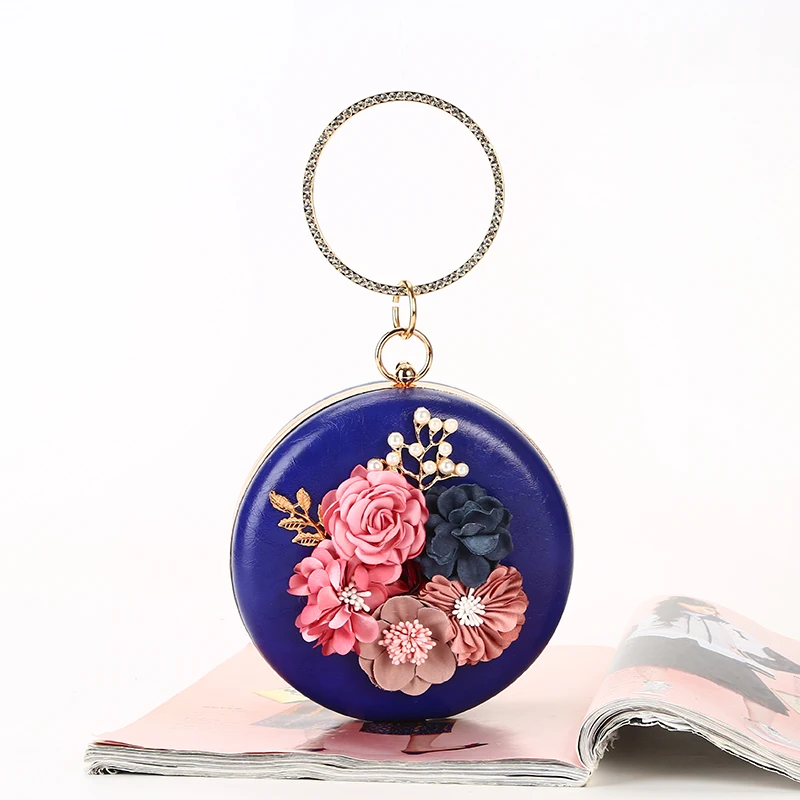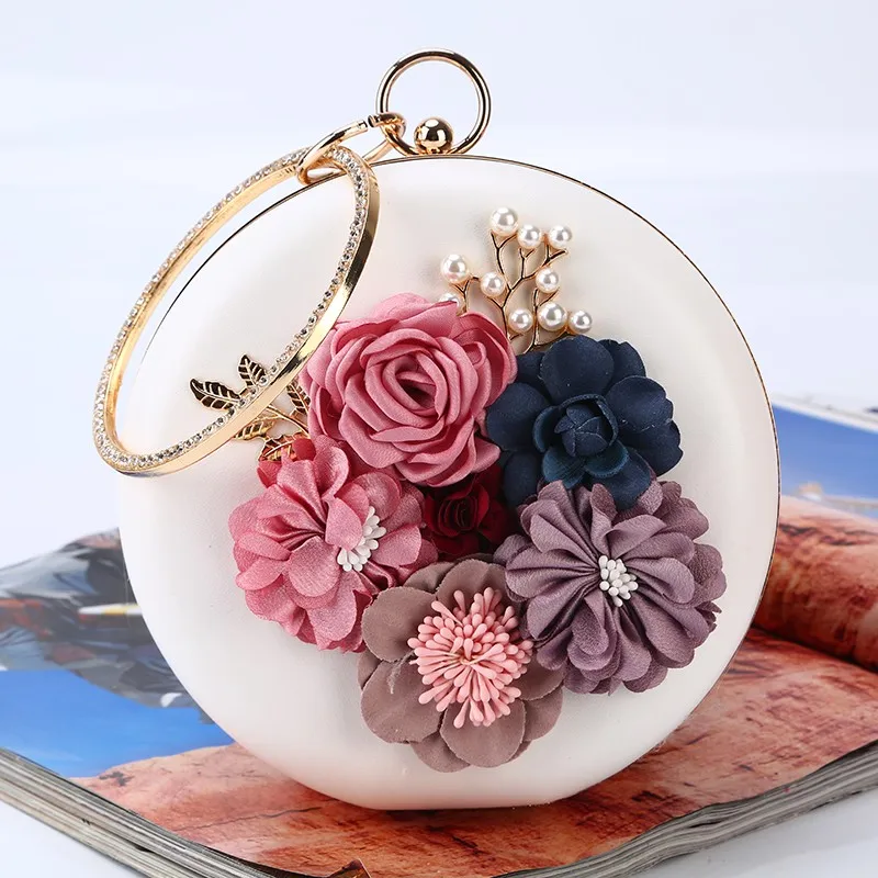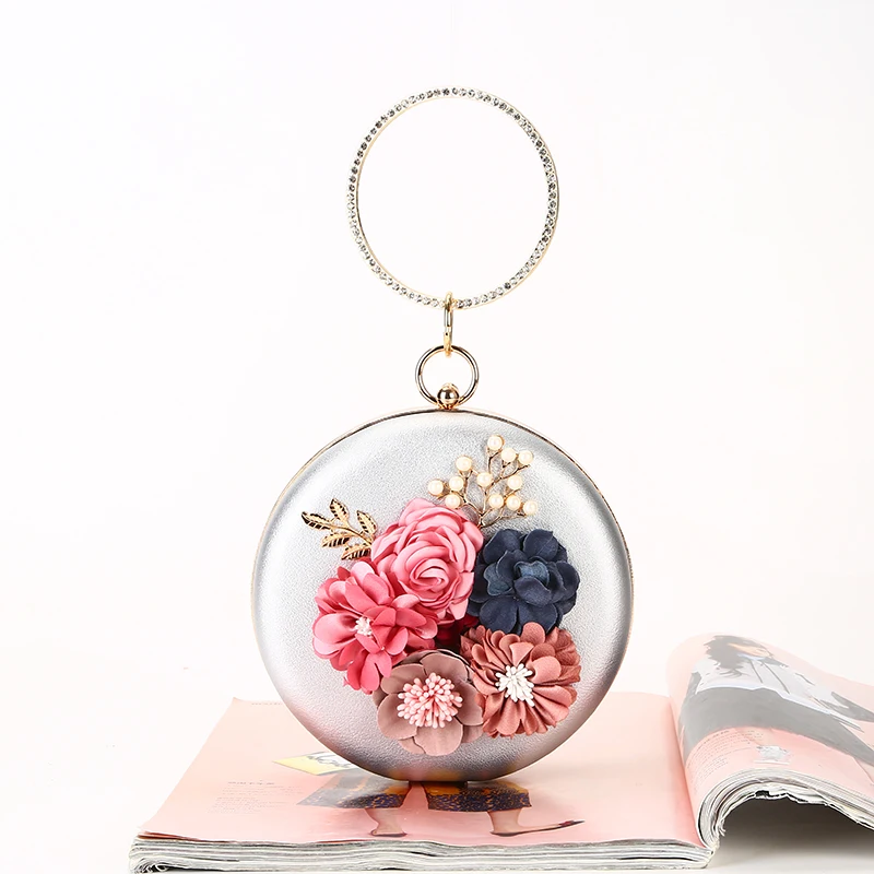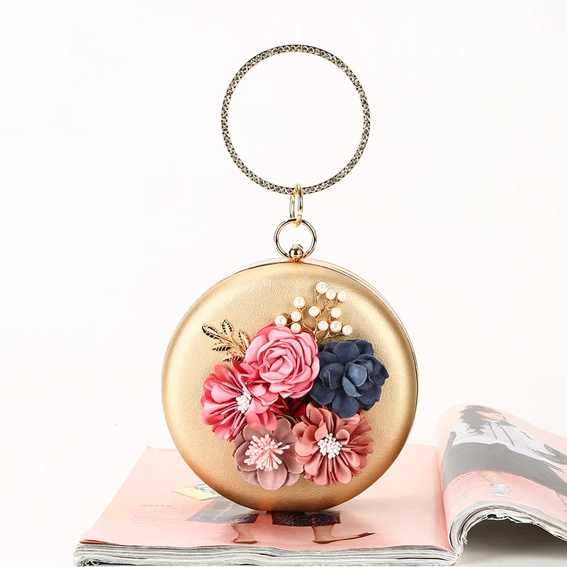 Factory direct brand new floriation evening bag classic clutches crystal metal handle ladies handbag for party wedding