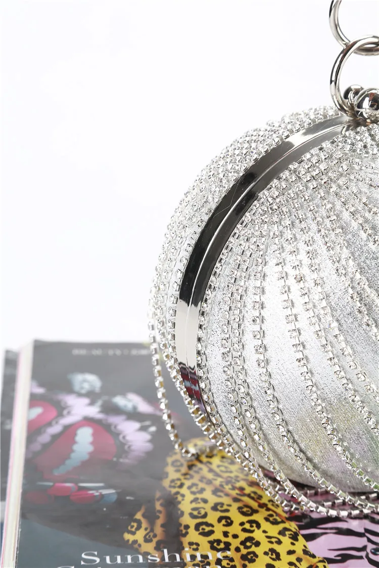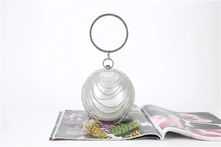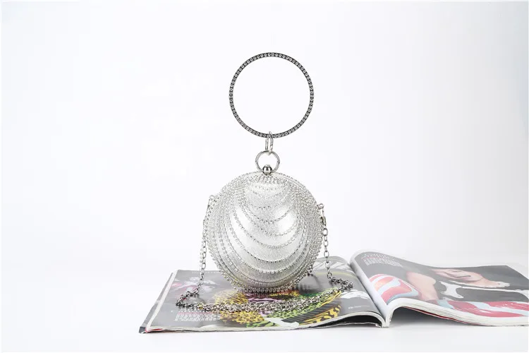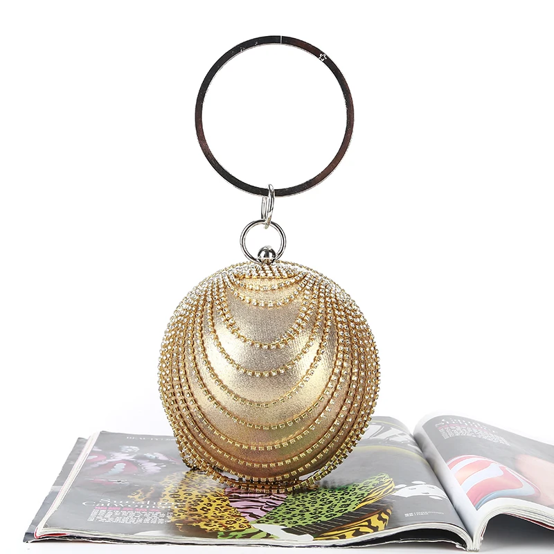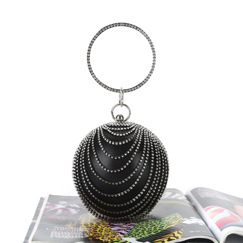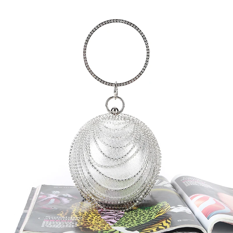 Factory direct wholesale brand new crystal PU fabric fashion ball shaped clutches tassel evening bag for party banquet wedding