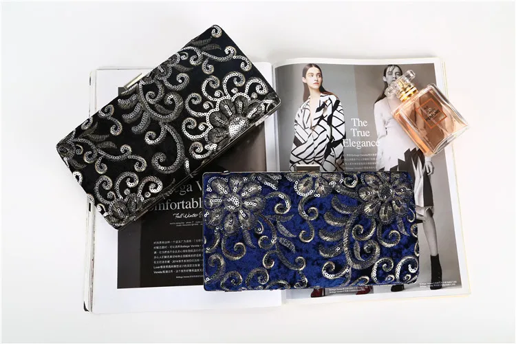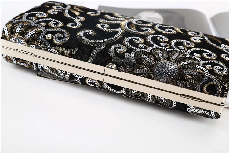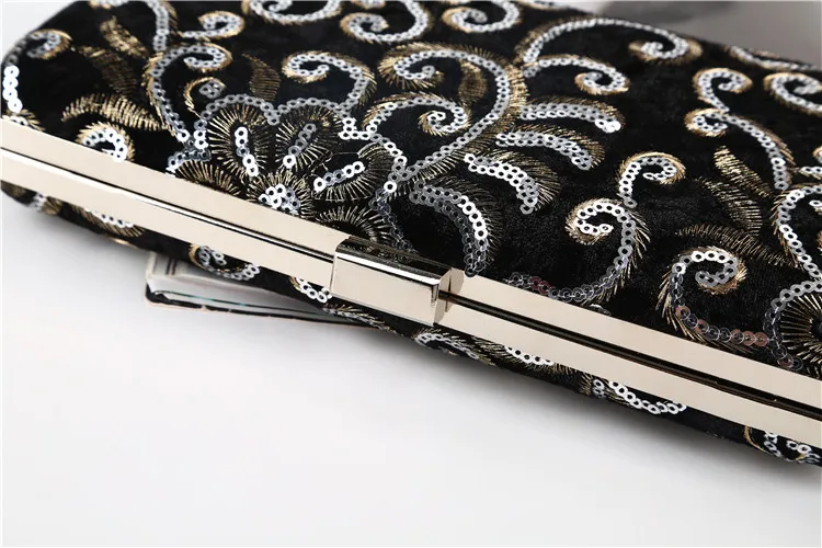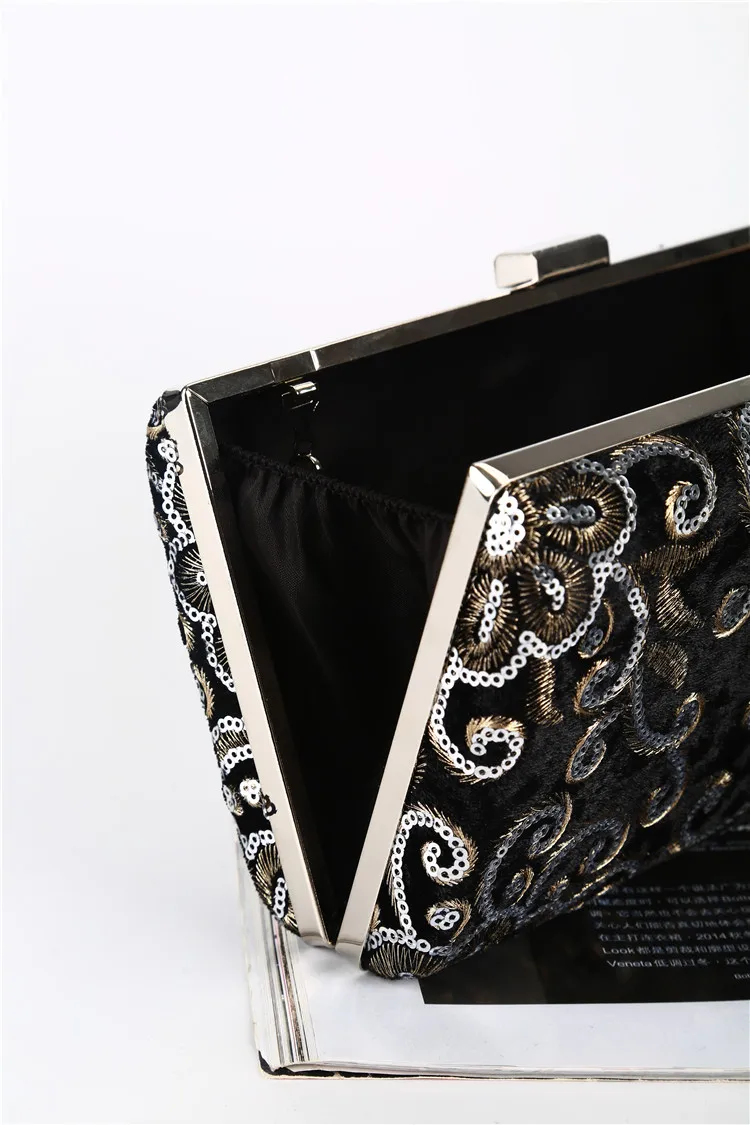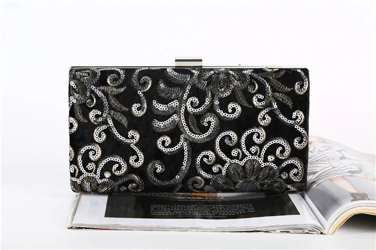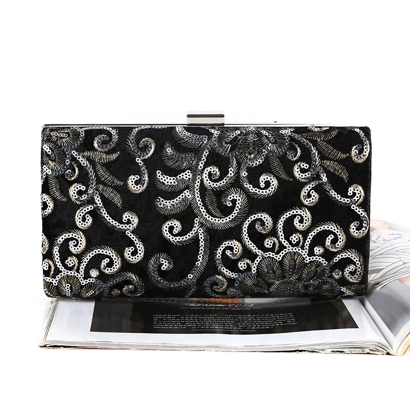 Factory direct wholesale brand new embroidery fabric evening bag sequin clutch bag women large space for party prom banquet