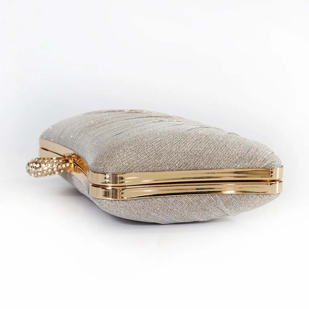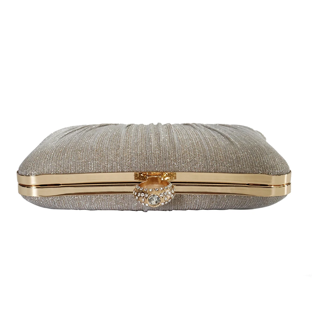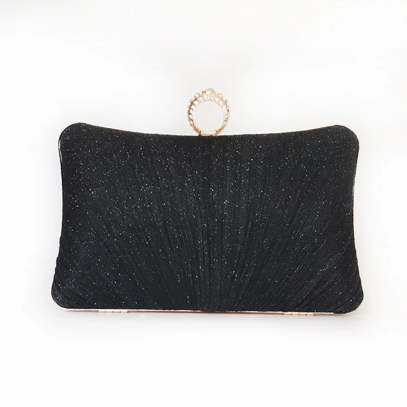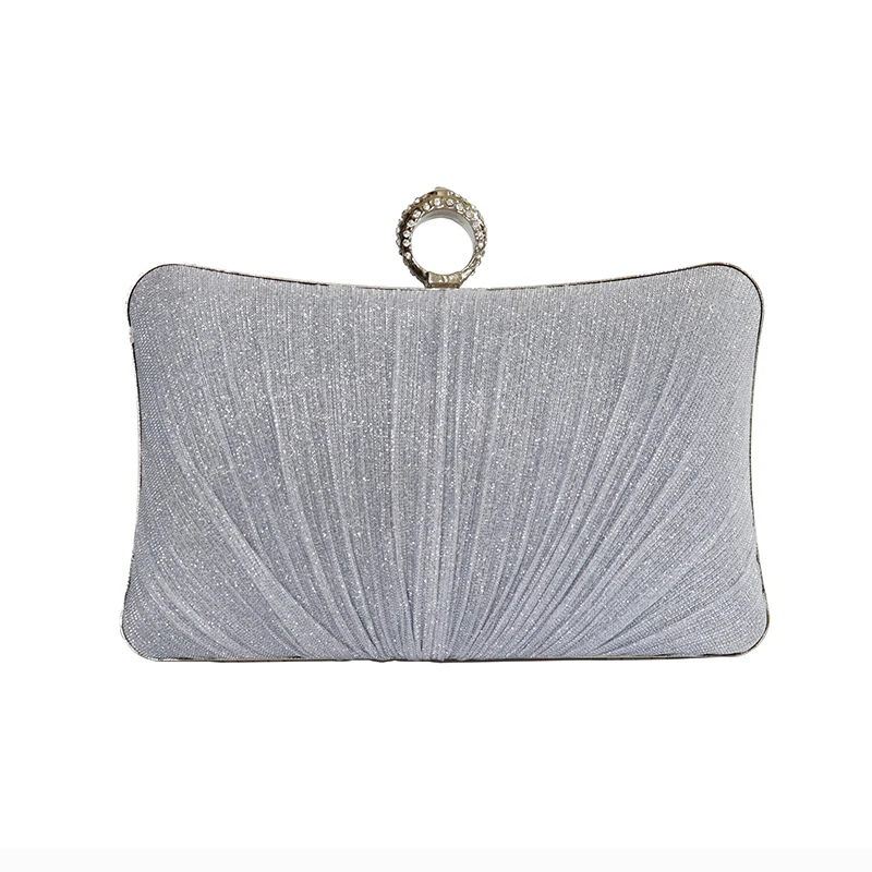 Factory direct wholesale brand new handmade pleated clutch bag shining material evening bag ring metal for party prom banquet
