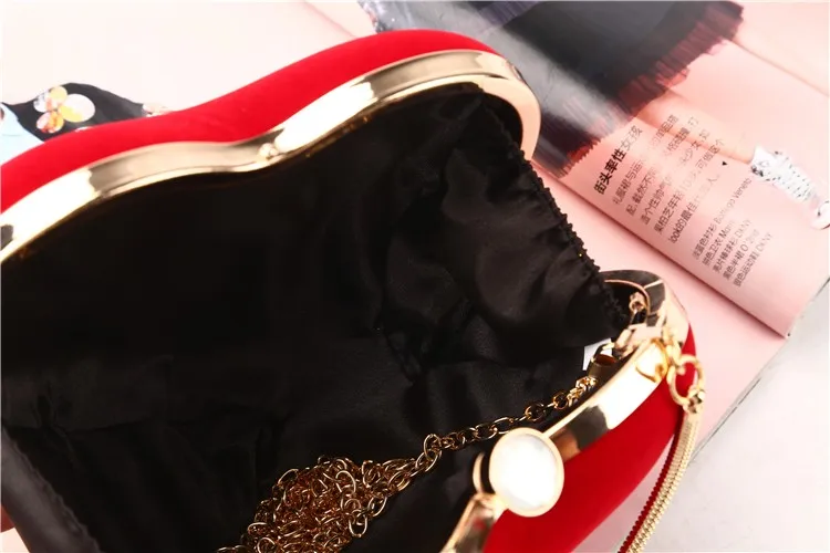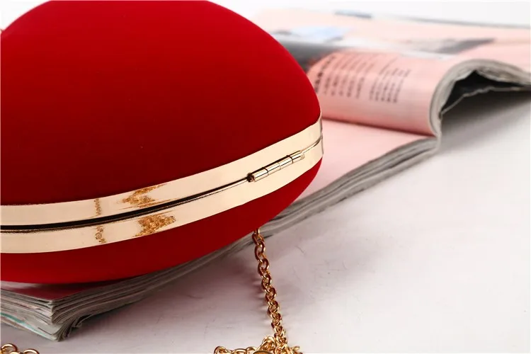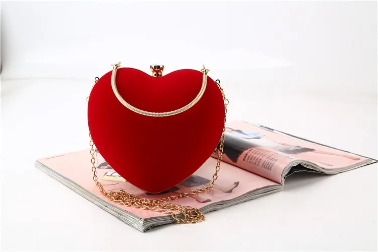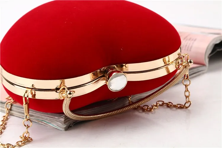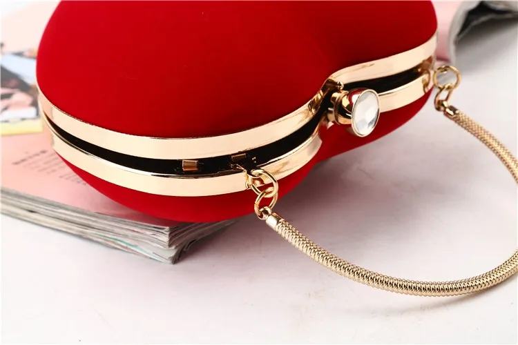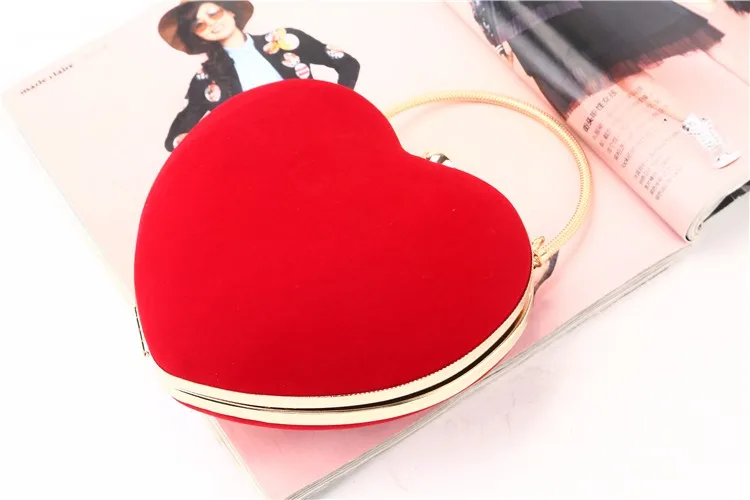 Factory direct wholesale brand new velour clutches heart-shaped metal frame evening bag metal handle for party wedding banquet