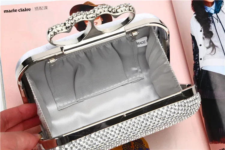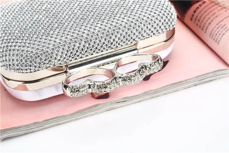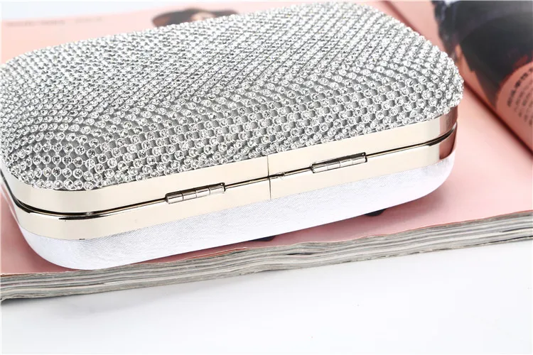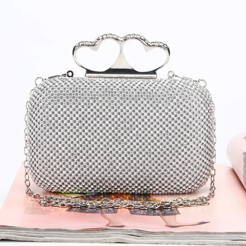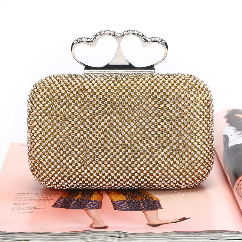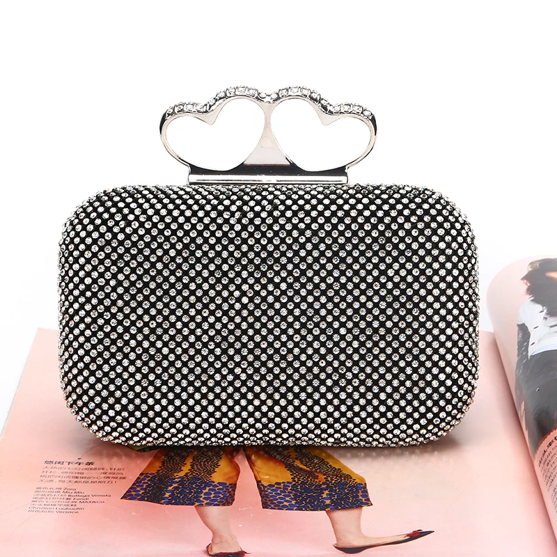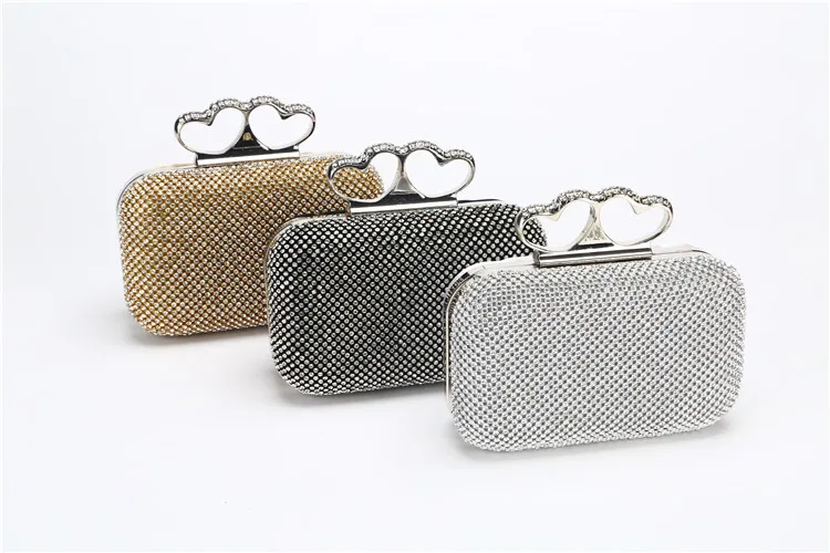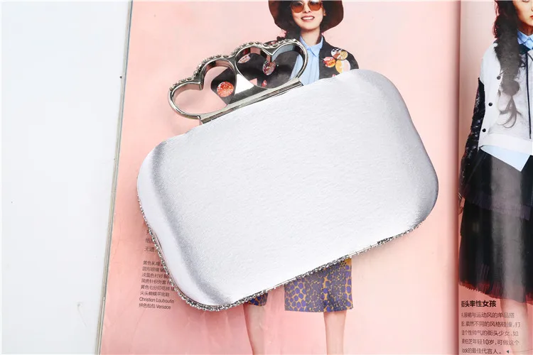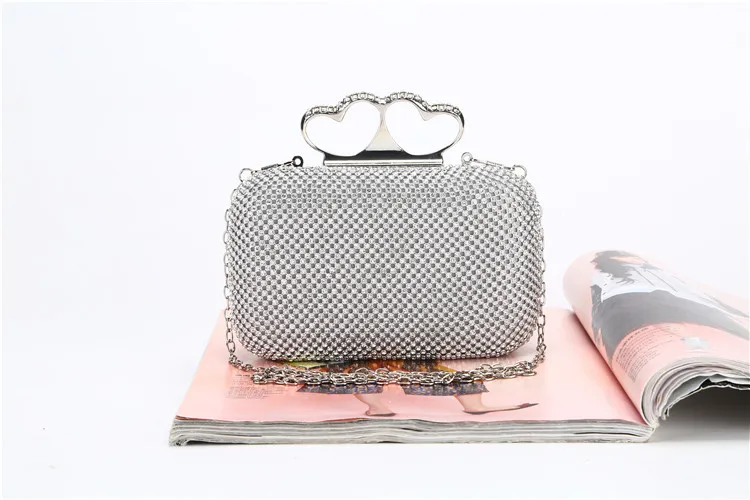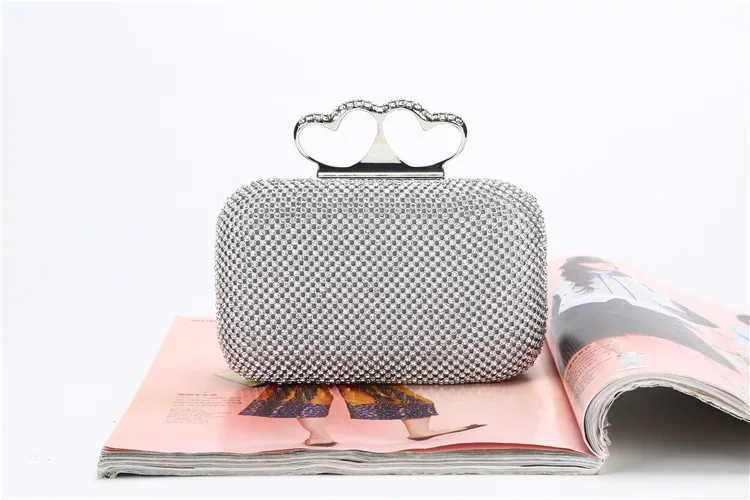Factory direct wholesale crystal evening bag brand new satin fabric lining clutch bags Double Heart head metal frame for wedding