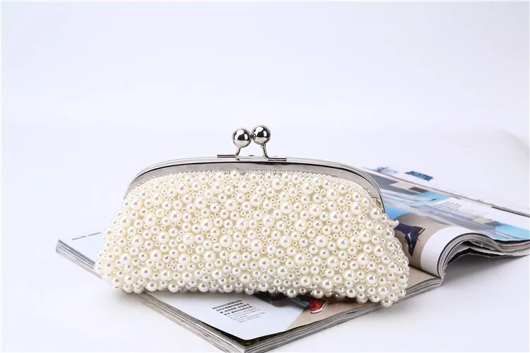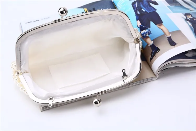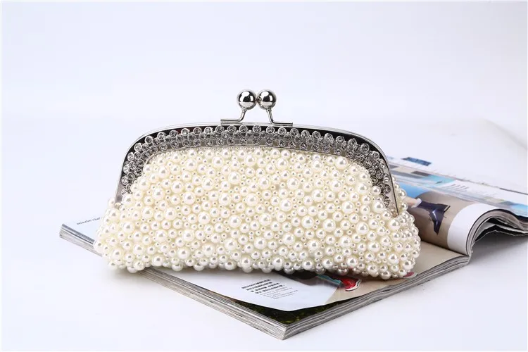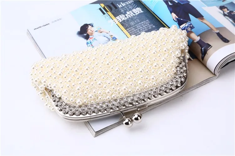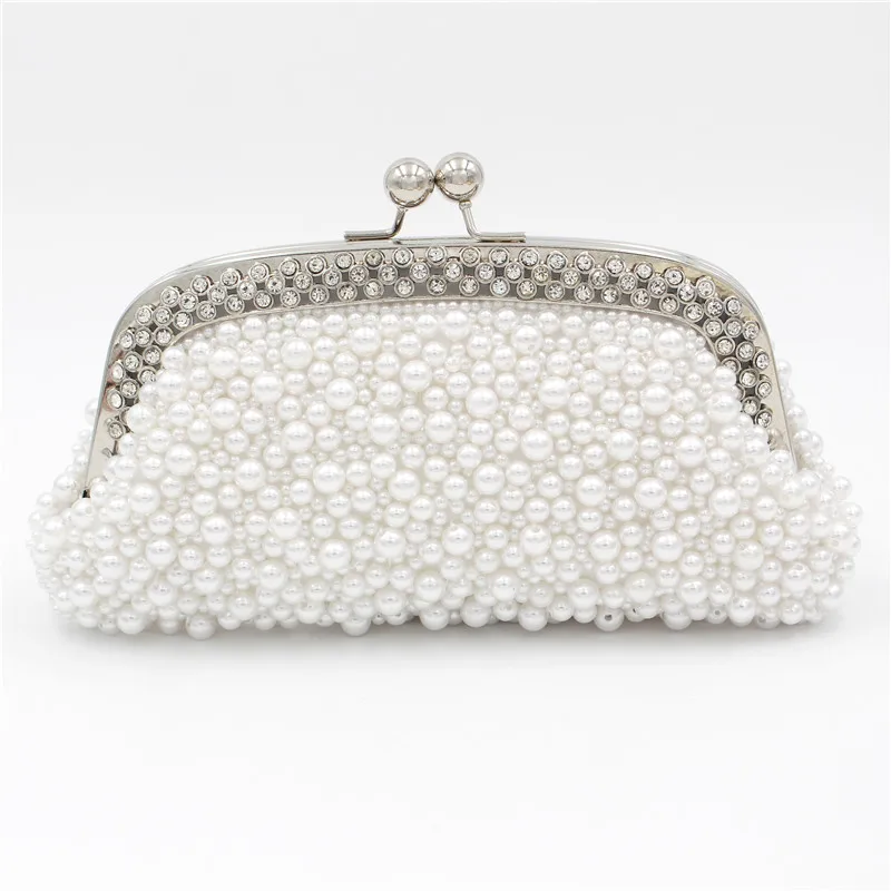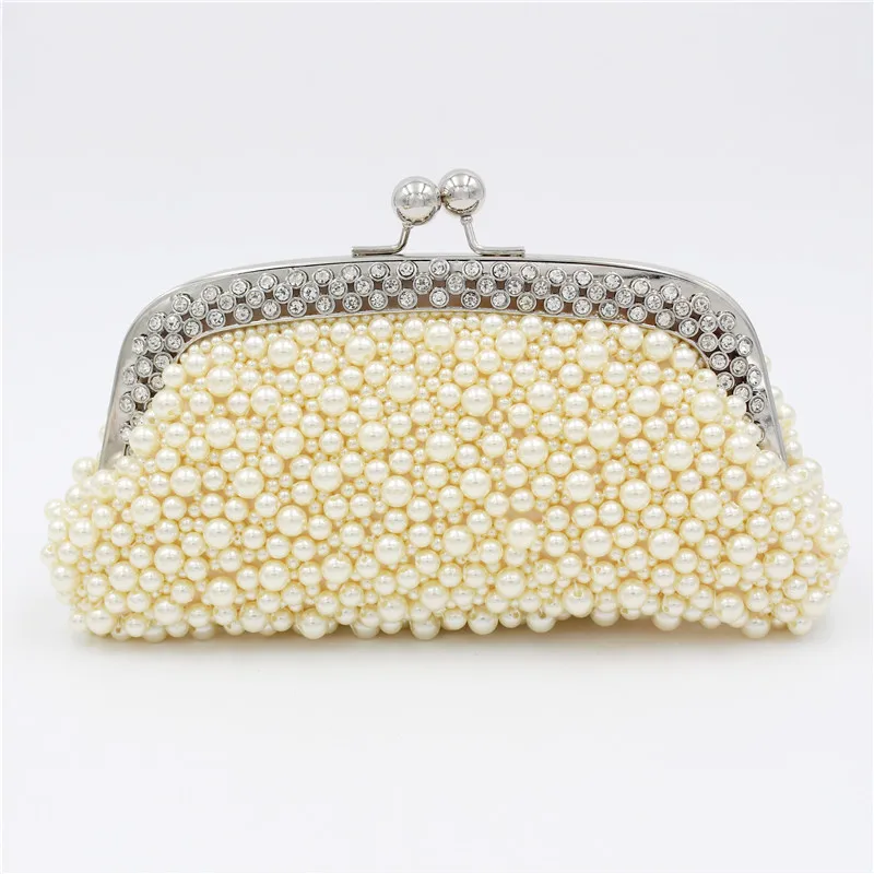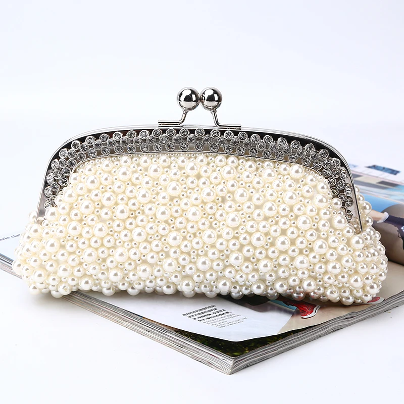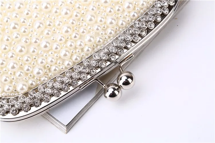 Factory direct wholesale handmade beaded clutch evening luxury pearl evening bags crystal metal frame handbags brides wedding
