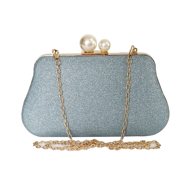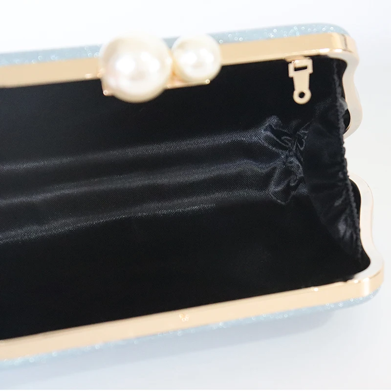 Factory direct wholesale new design shinning PU evening bag pearl switch elegant clutches for wedding party banquet