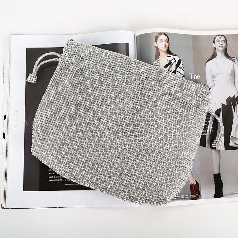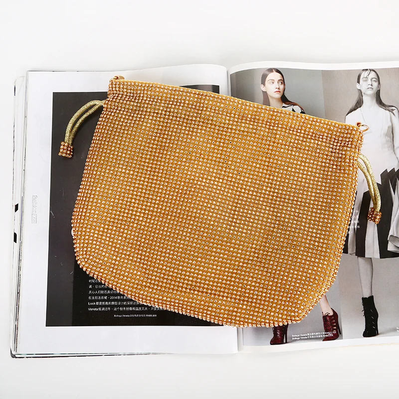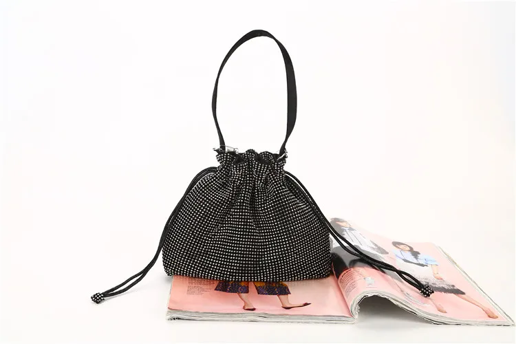 Factory direct wholesale new style luxury crystal handbags diamond lucky bag drawstring bag for women party prom banquet