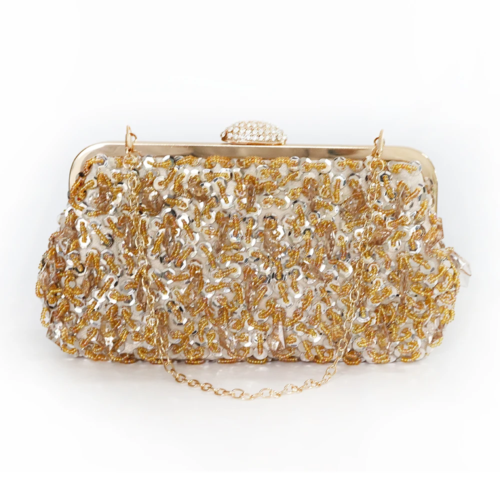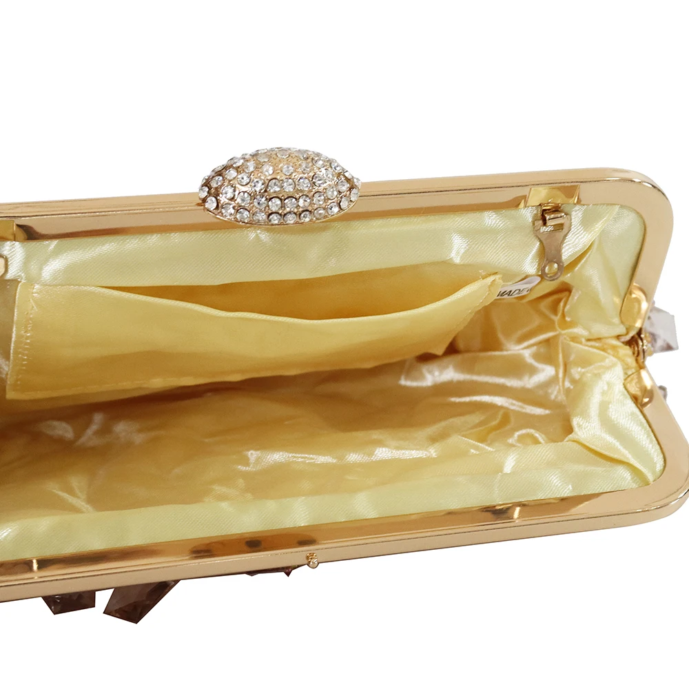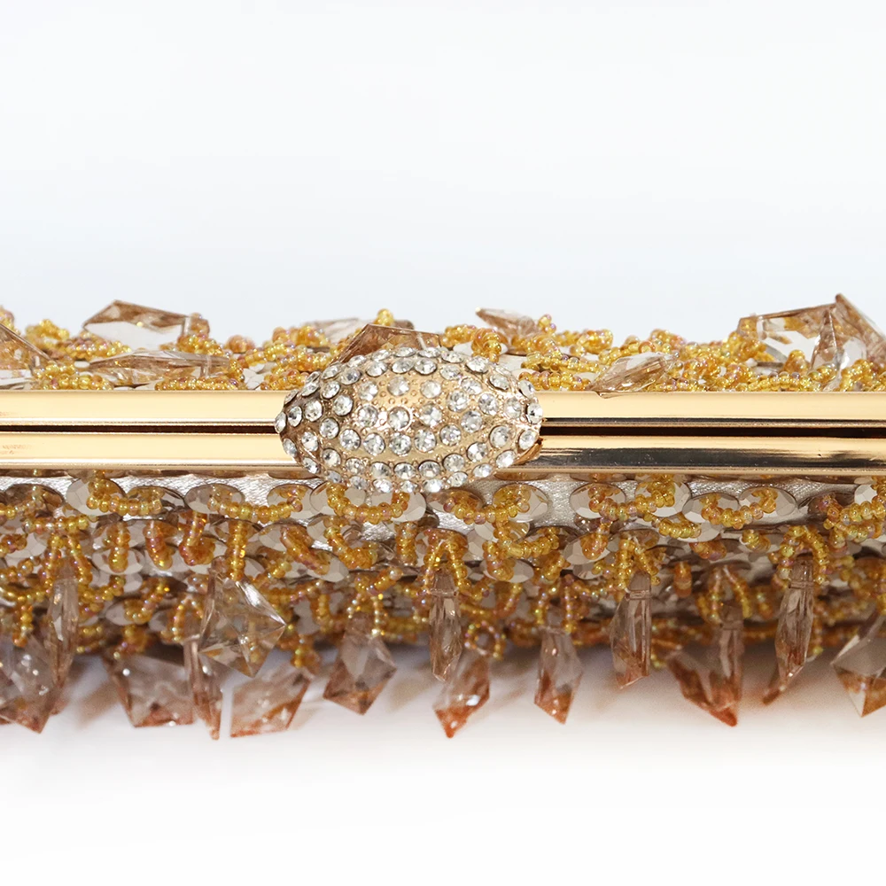 Factory direct wholesale trendy rhinestone clutch bag elegant beaded evening bag with pendant metal handle for party banquet