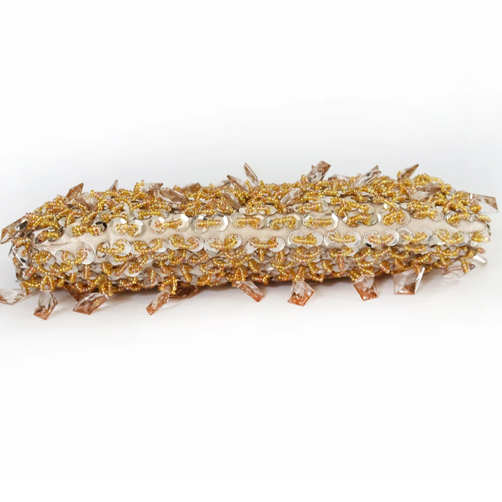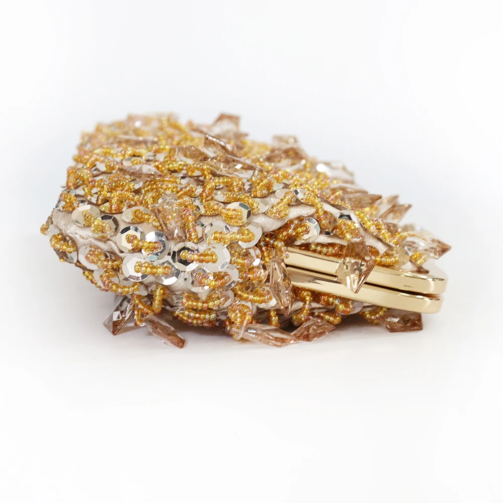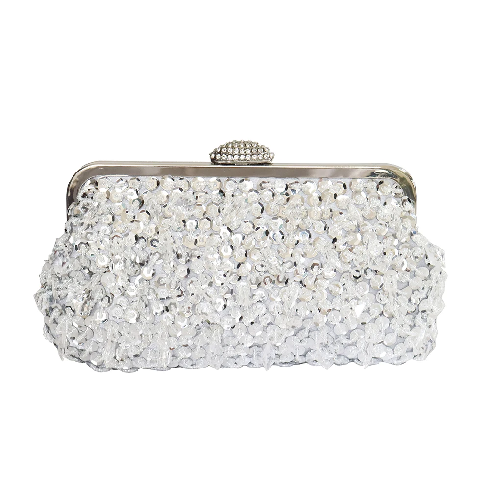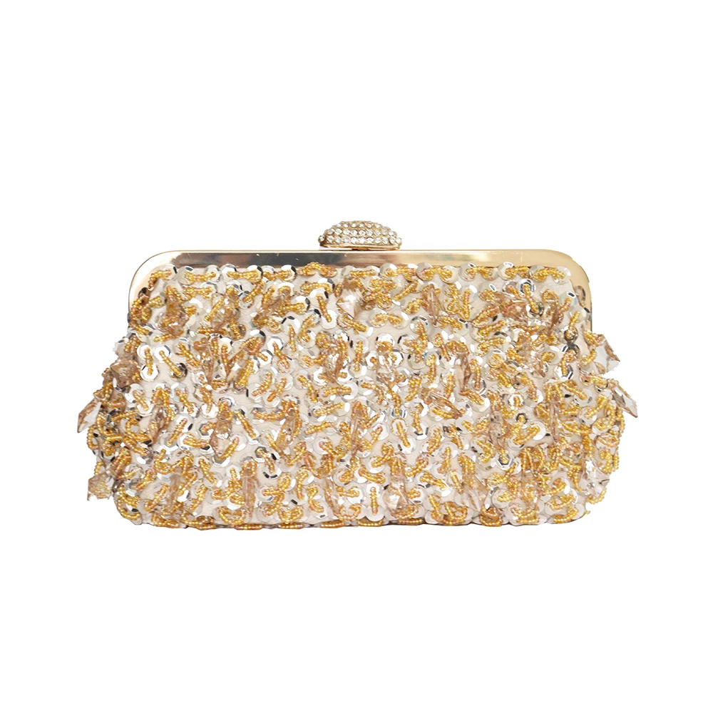 Factory direct wholesale trendy rhinestone clutch bag elegant beaded evening bag with pendant metal handle for party banquet