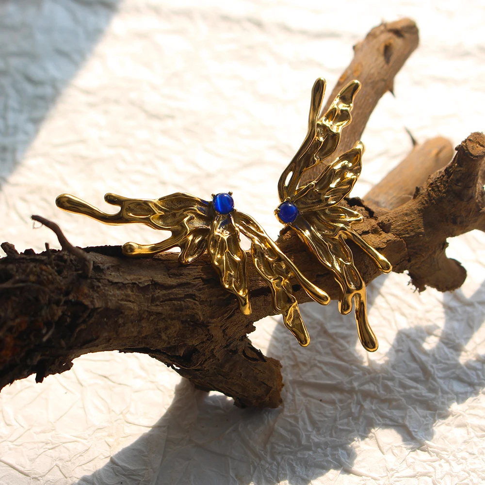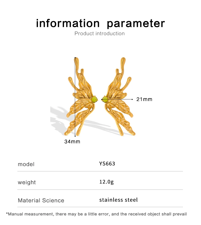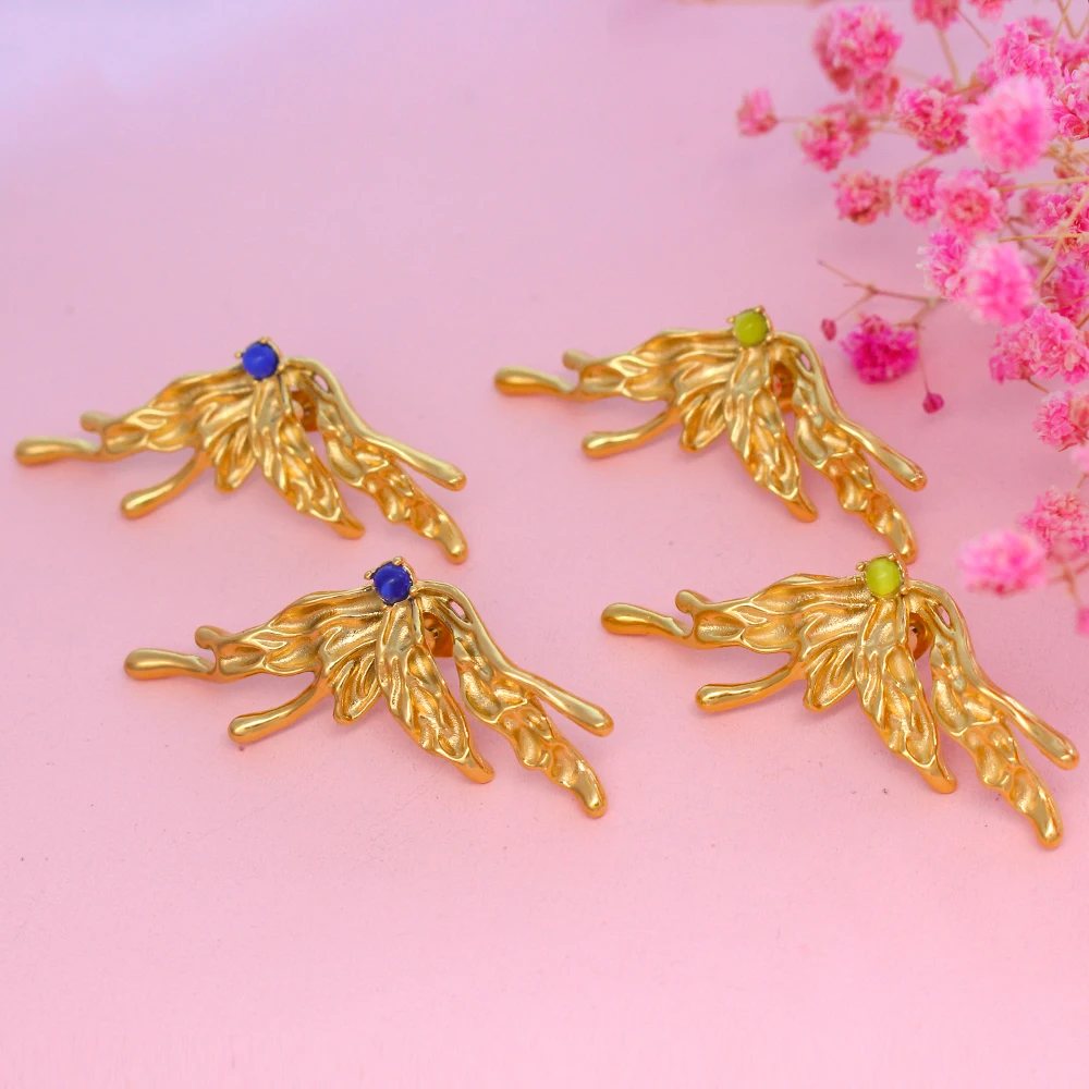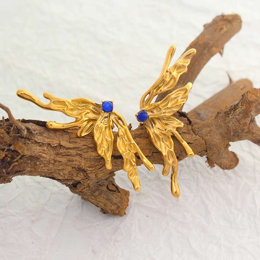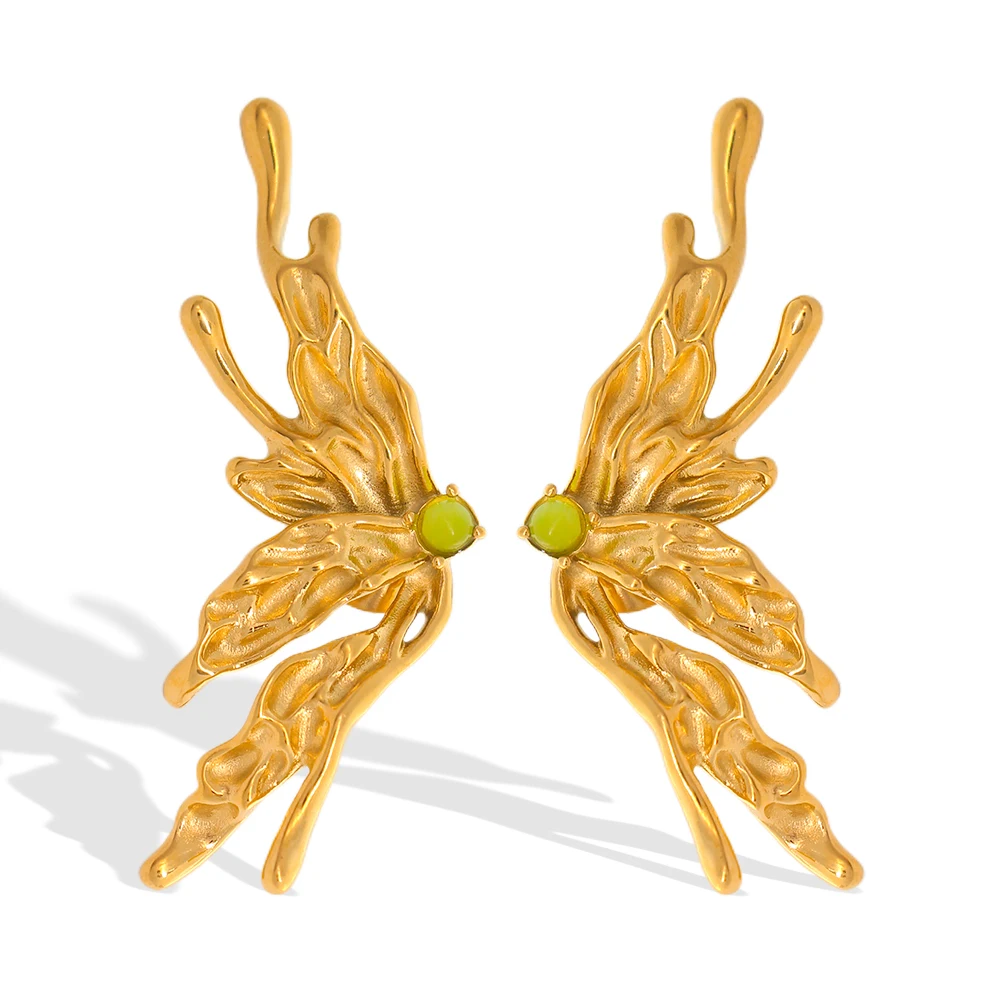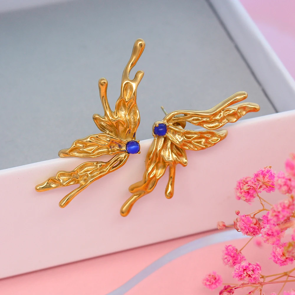 FANJIN New Arrival Stainless Steel Natural Stone Earring Wings Earrings Large Bling Earrings Women Party Jewelry