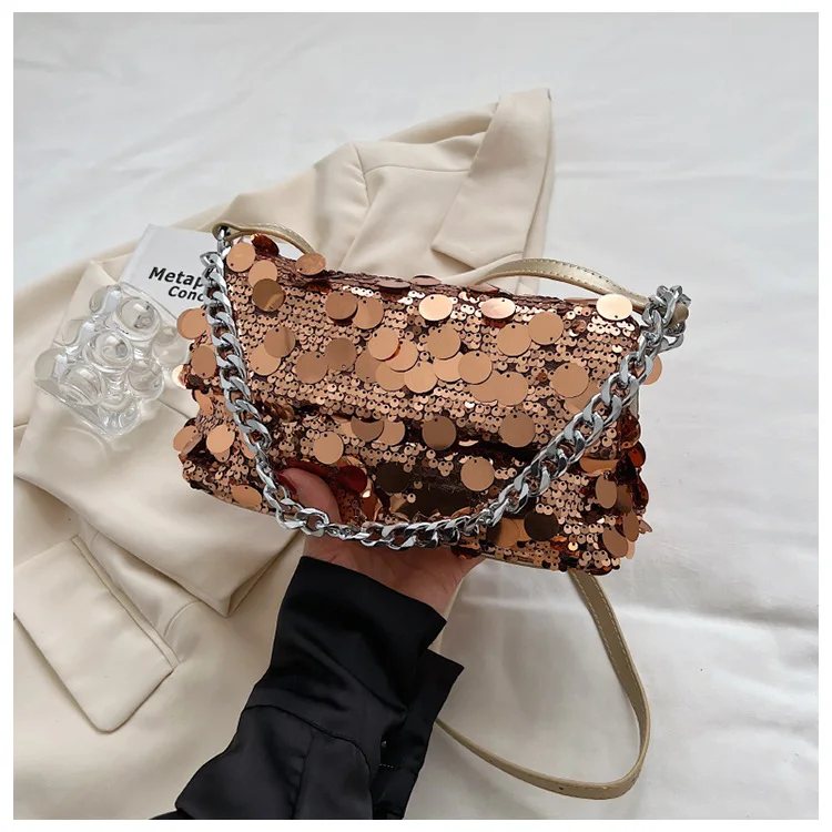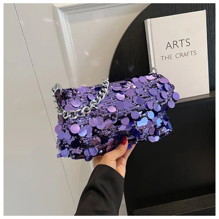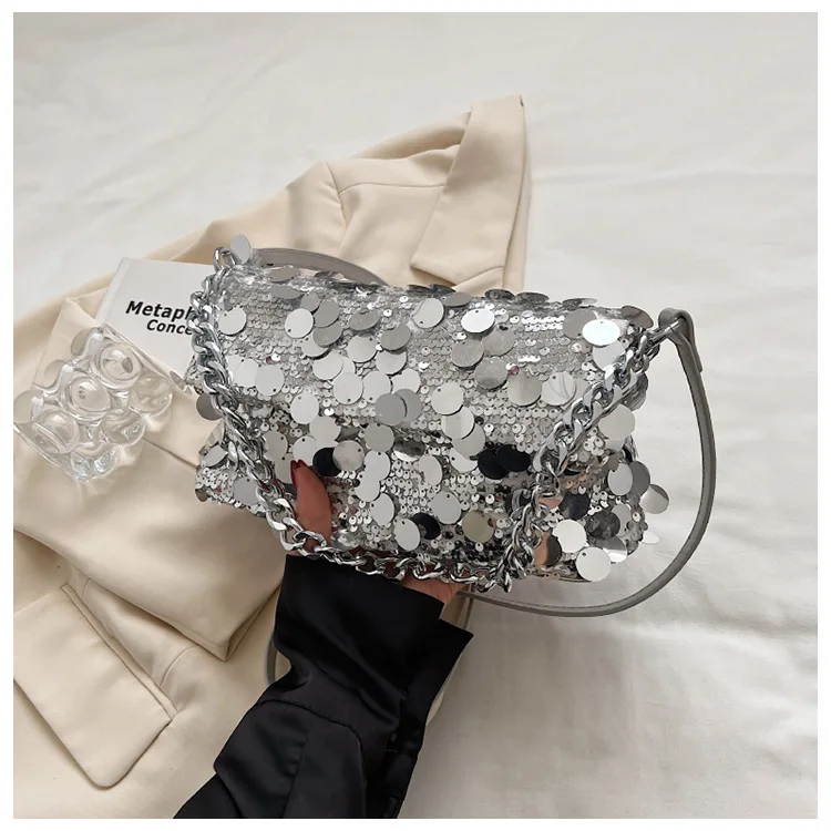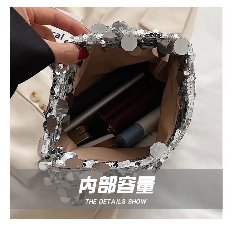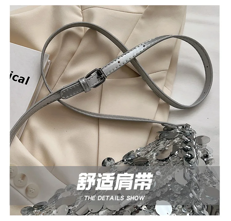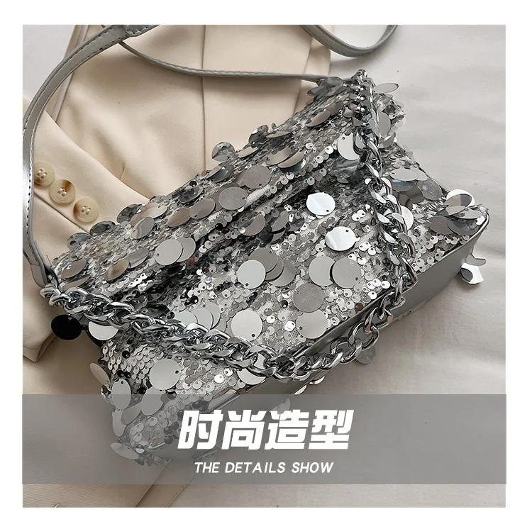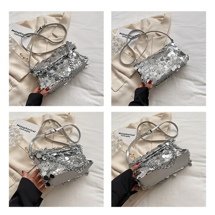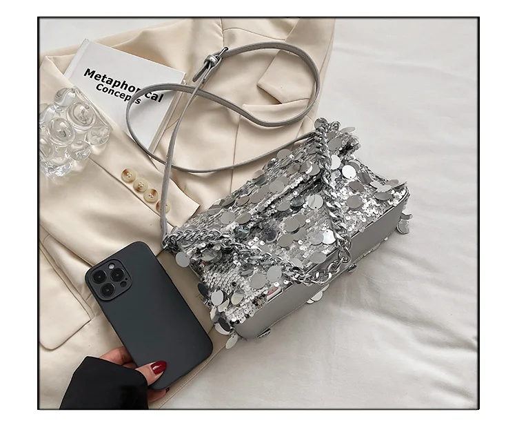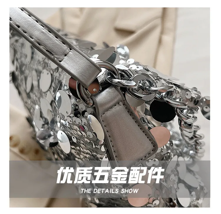 Fashion Design Clutch Purse Silver Sequin Handbags Rhinestone Tassel Evening Bags Women Elegant Shoulder Bags Shiny Party Bag