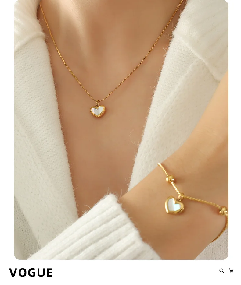 Fashion Heart Pendant Necklace Collar Chain Bracelet Earring Set Girl Jewelry