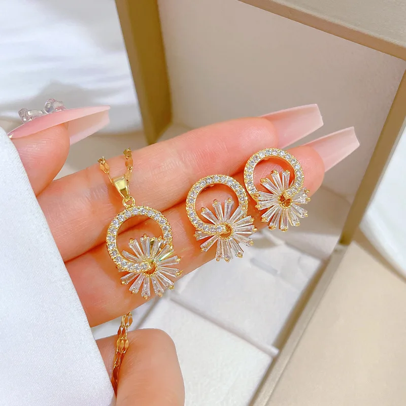 Fashion Jewelry Set Women Minimalist 18K Gold Stainless Steel Flower Necklace And Earrings Set For Gift