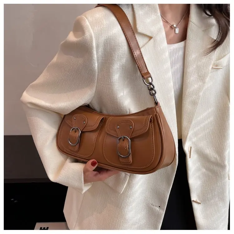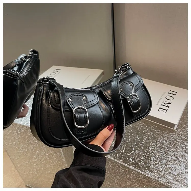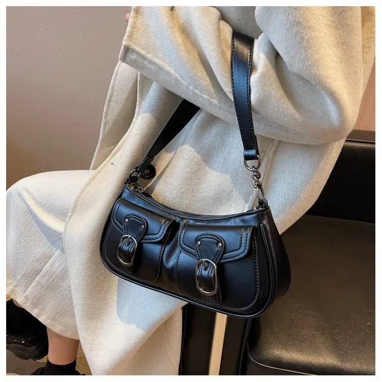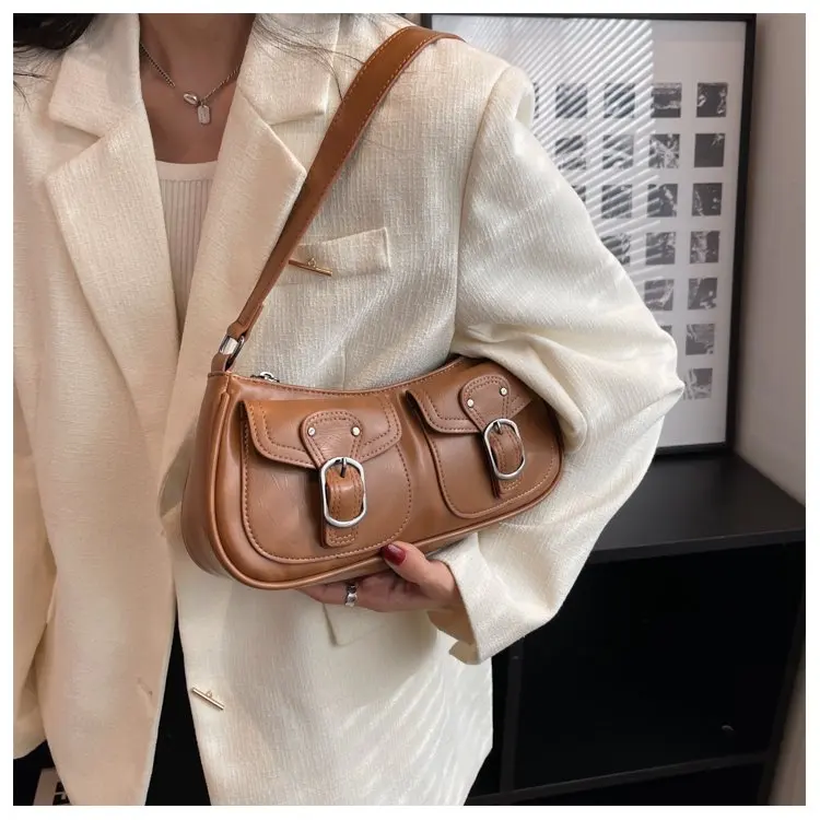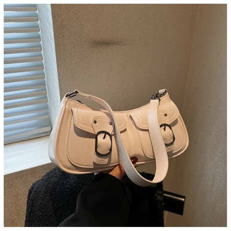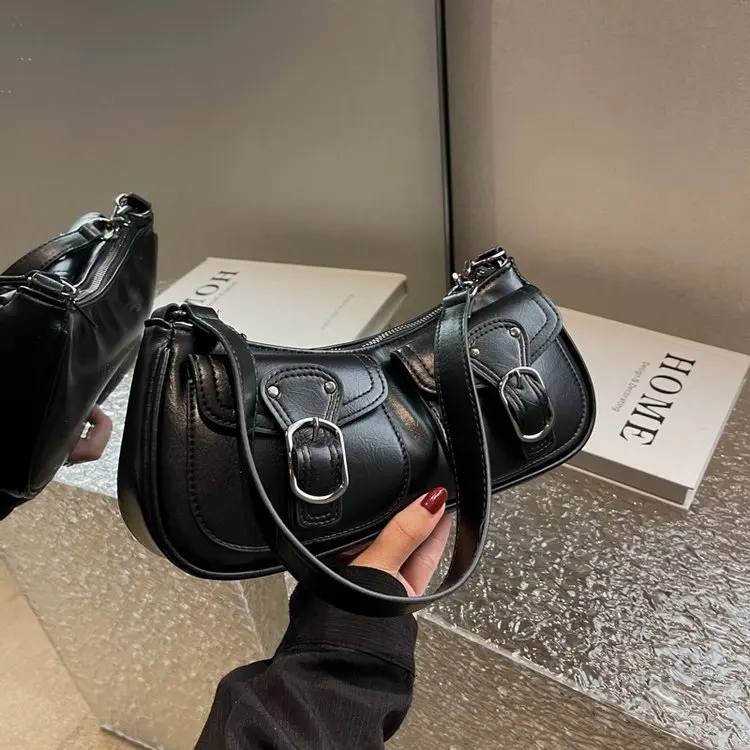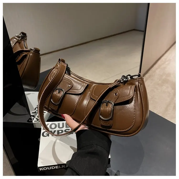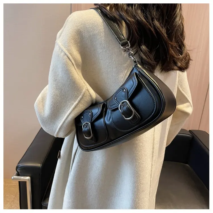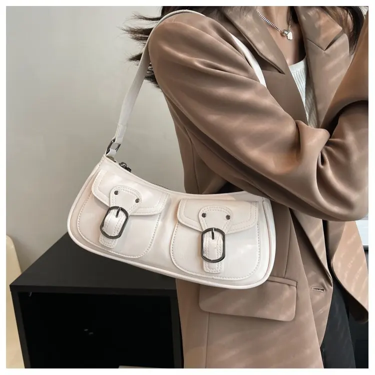 Fashion Leather Shoulder Armpit Bag for Women 2024 Tend Female Simple Small Pocket Design Underarm Handbags and Purses