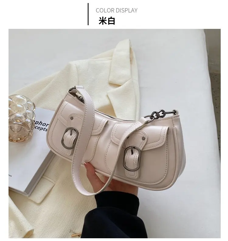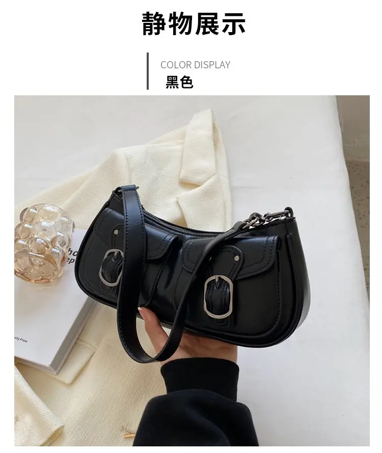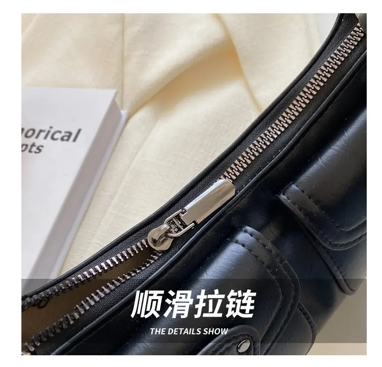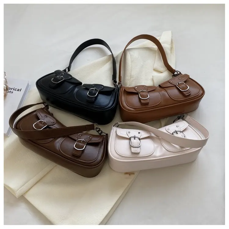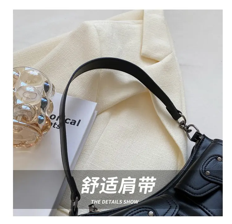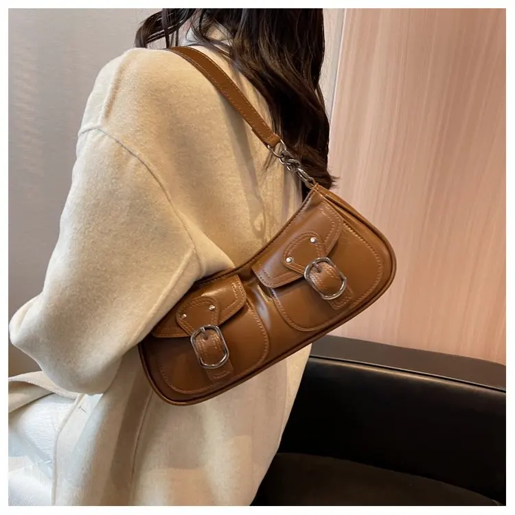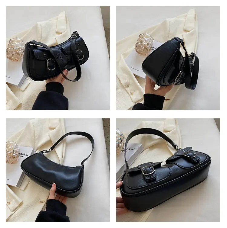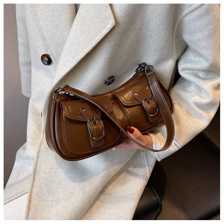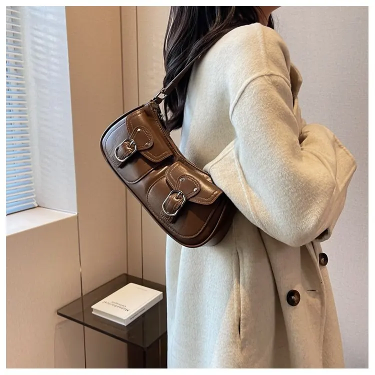 Fashion Leather Shoulder Armpit Bag for Women 2024 Tend Female Simple Small Pocket Design Underarm Handbags and Purses