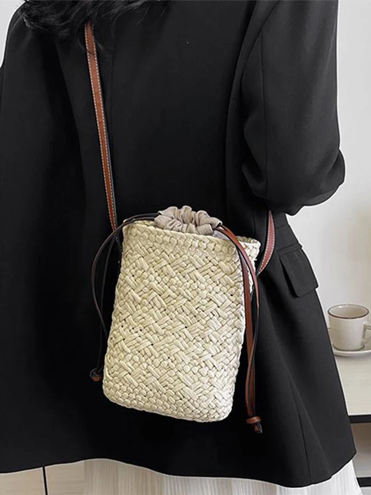 Fashion Luxury Handbag High-grade Leather Trend Versatile Simple Drawstring Bucket Bag Retro Texture Brand Designer Shoulder Bag