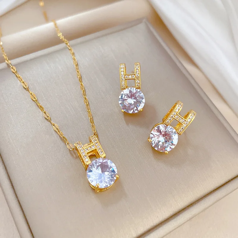 Fashion Simple H Jewelry Set Fine Jewelry Diamonds Halo Classic Alphabet zircon Wedding Jewelry Sets