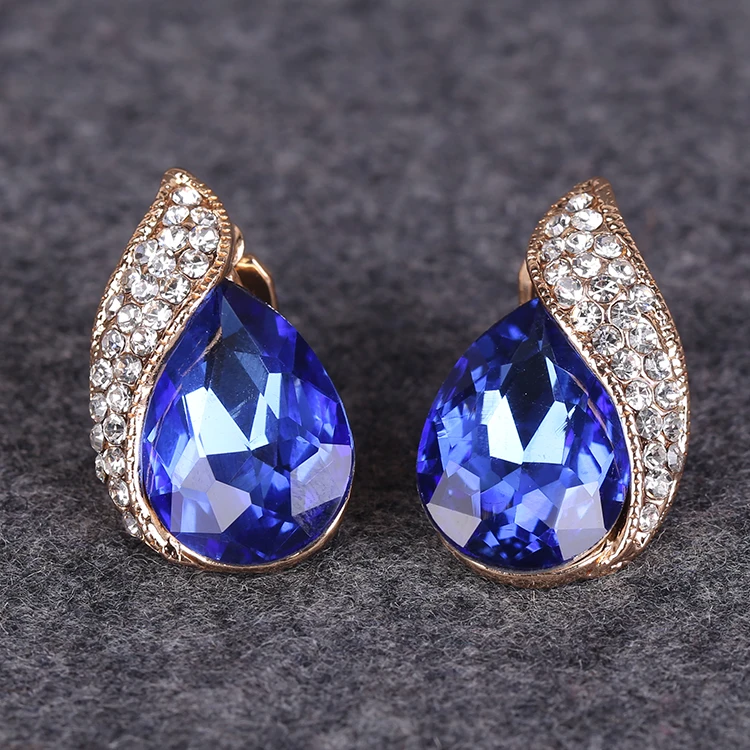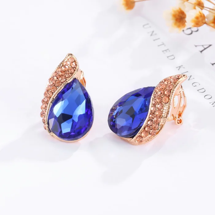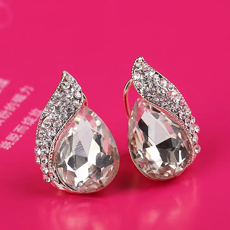 Fashion Women's Teardrop Clip on Earrings Non Piercing Rhinestone Crystal Charm Jewelry Ear Clip Wholesale