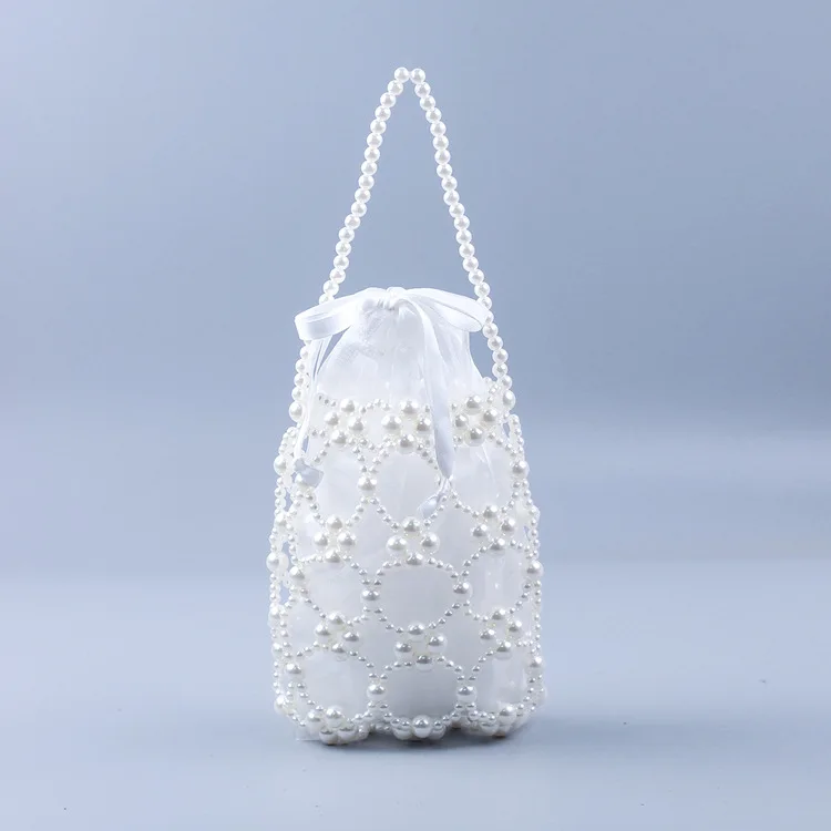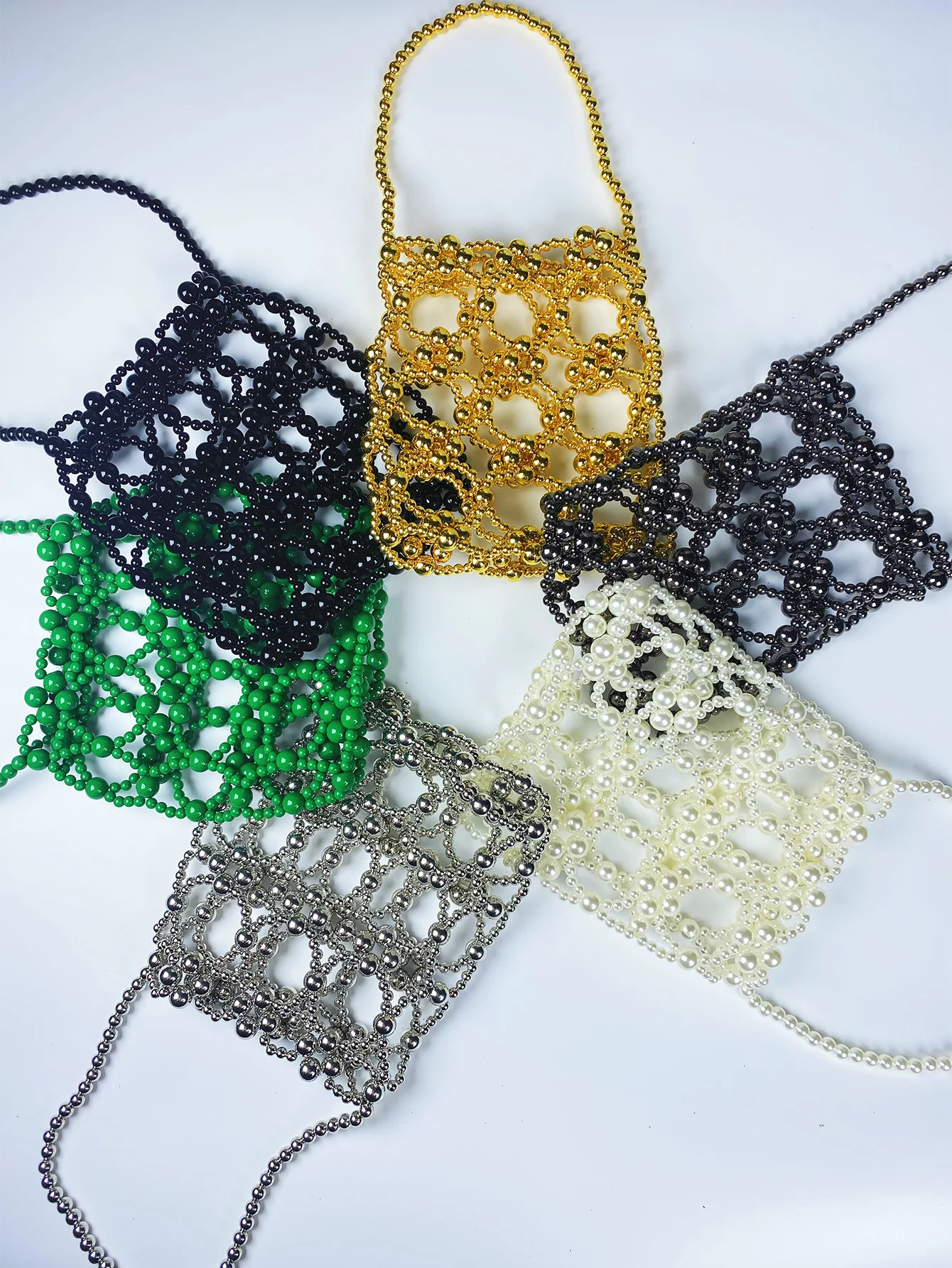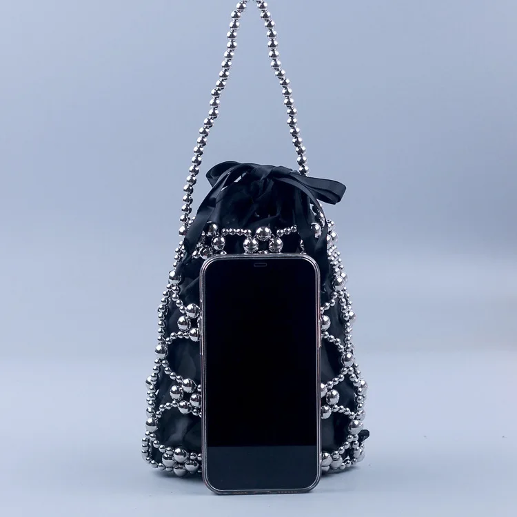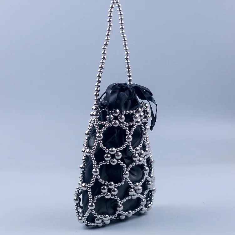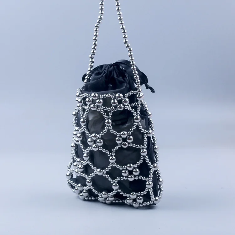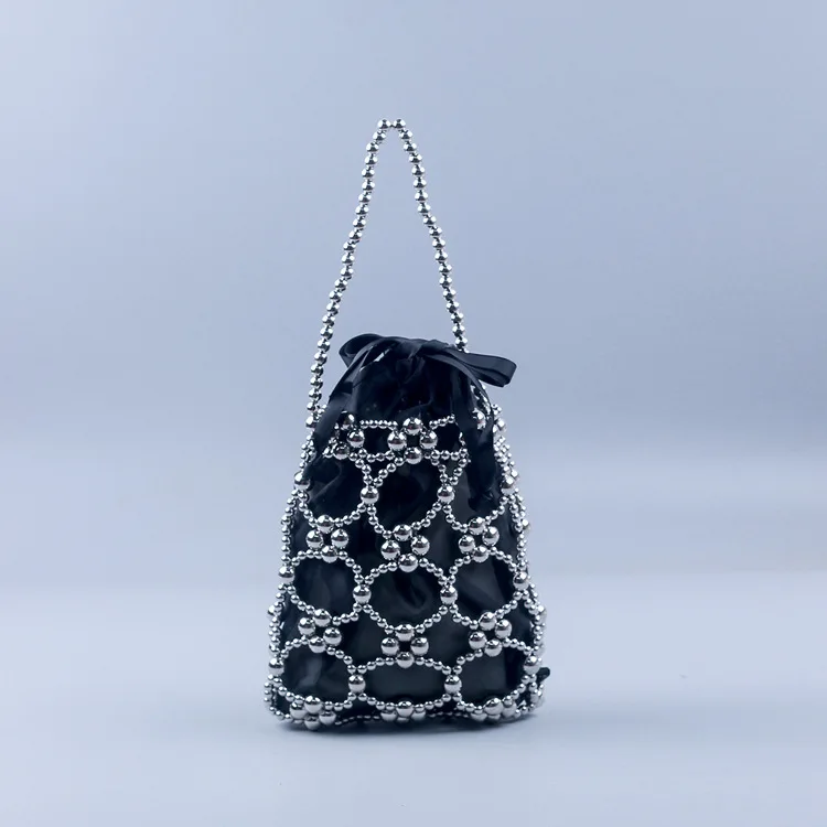 Fashionable and trendy plated hand woven acrylic street photography casual versatile beaded handbag Hollow Out Bucket Pouch