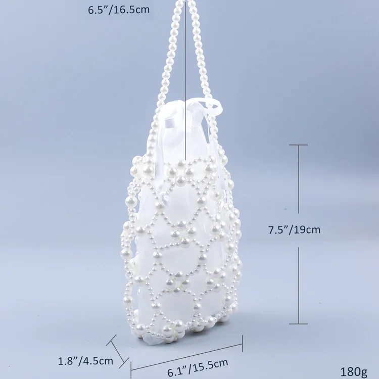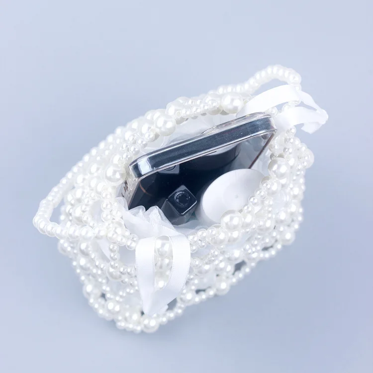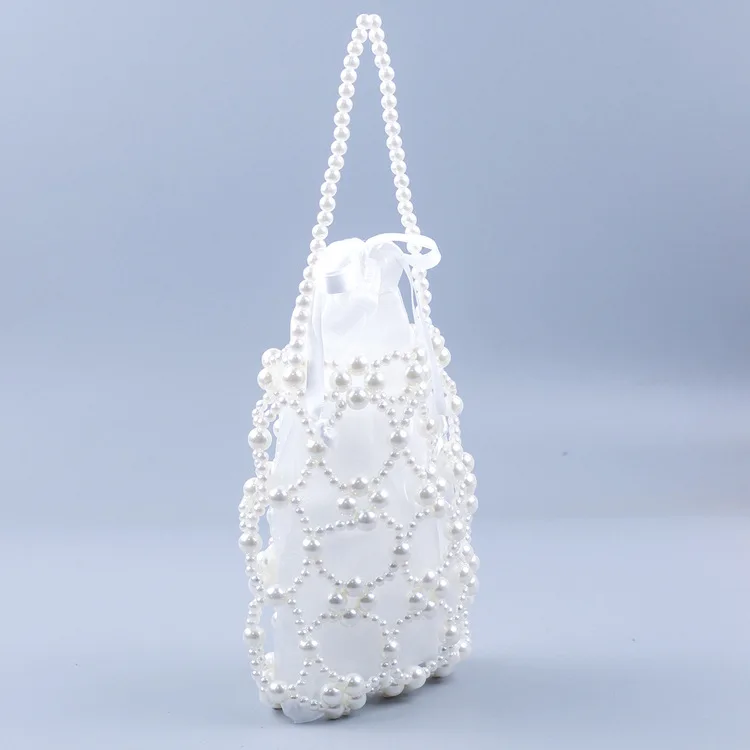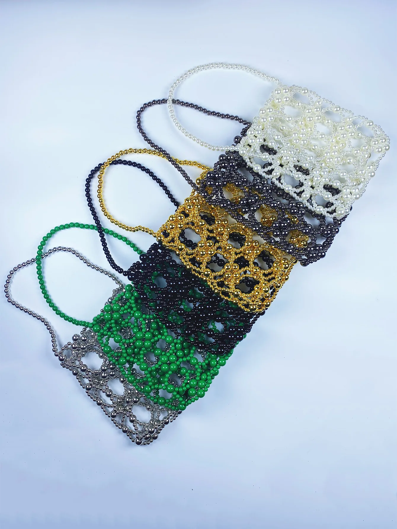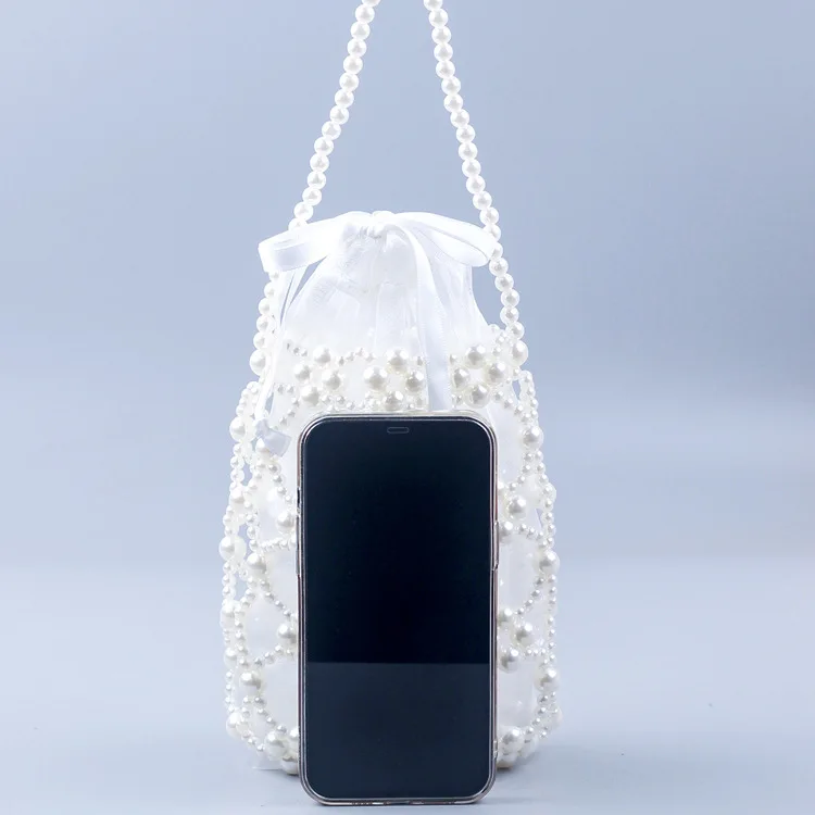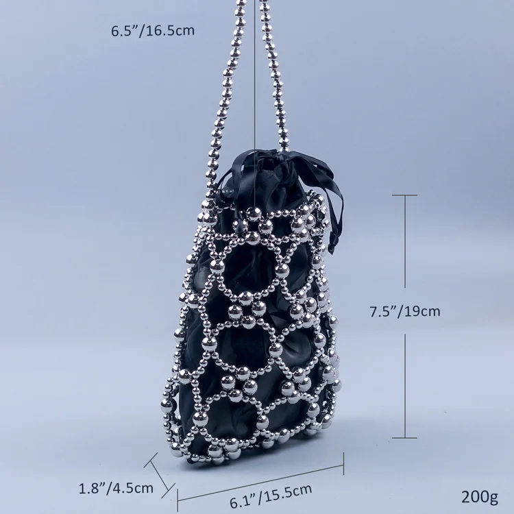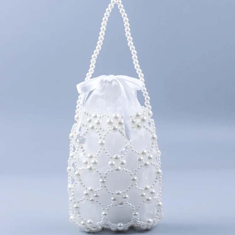 Fashionable and trendy plated hand woven acrylic street photography casual versatile beaded handbag Hollow Out Bucket Pouch