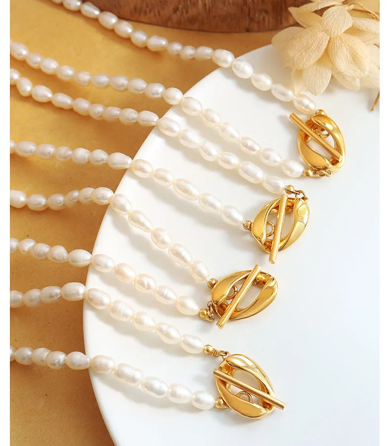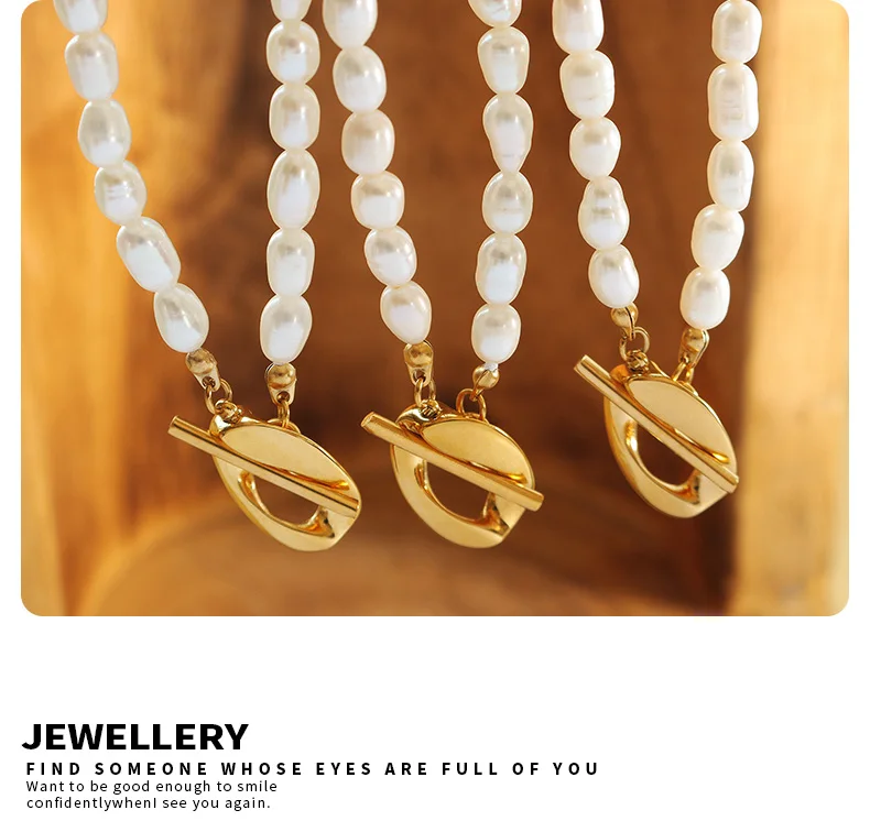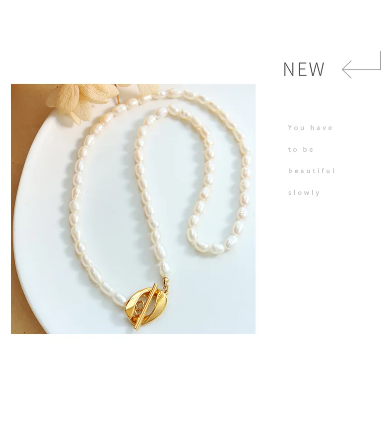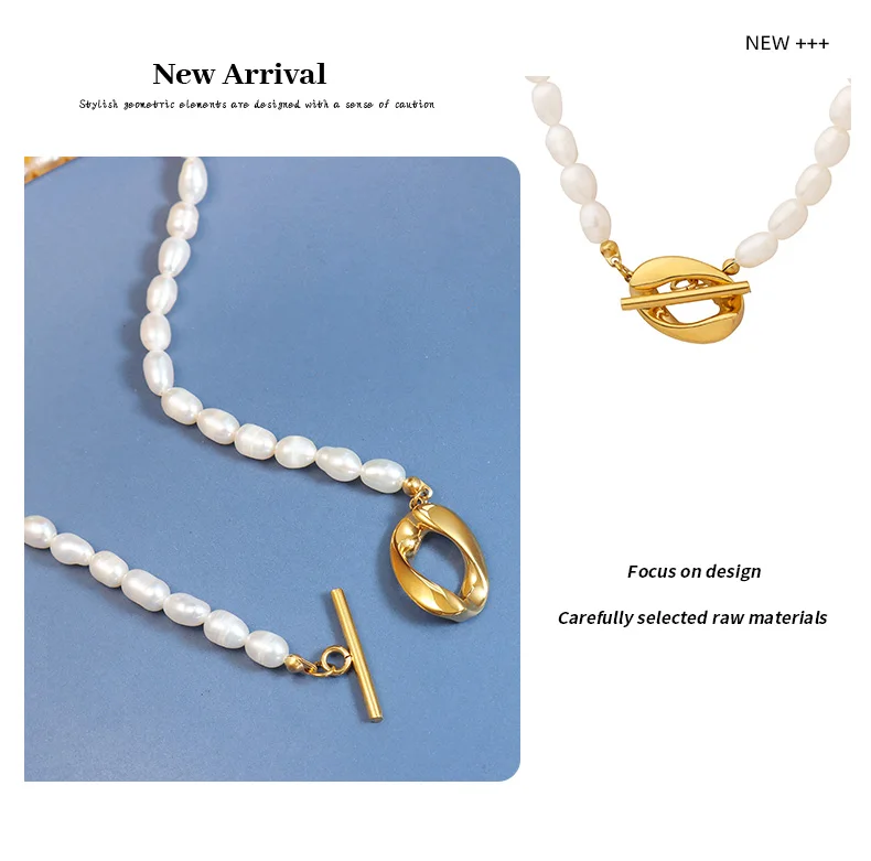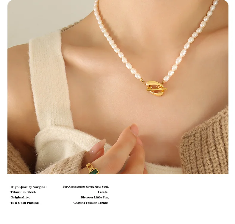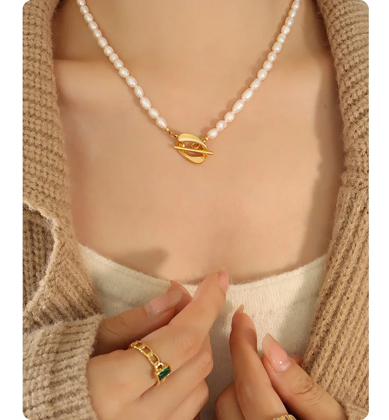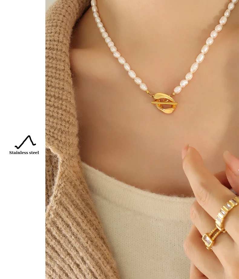French OT Chain Necklace Freshwater Pearl Pendant Chain Necklace Hip Hop Stainless Steel Jewelry