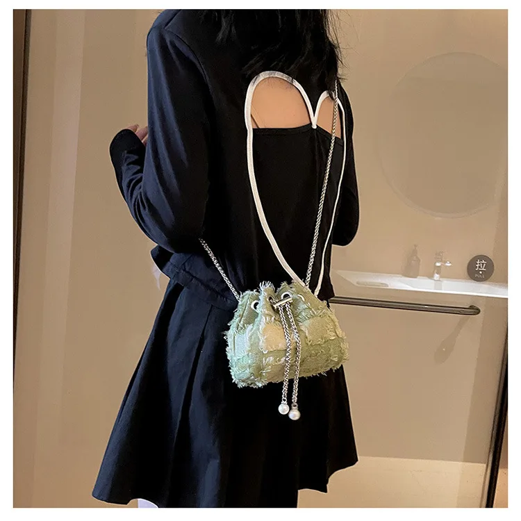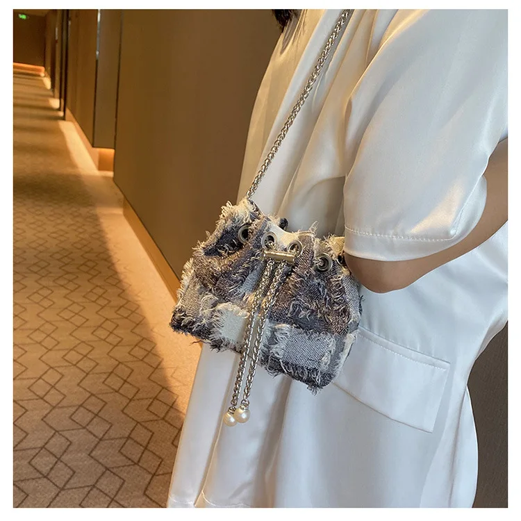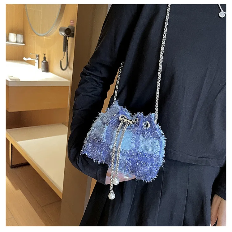 Fringed Tassel Women's Bags Retro Design Denim Bag Trend Crossbody Bag Quality Bucket Bags Handbags for Women Small New Purses