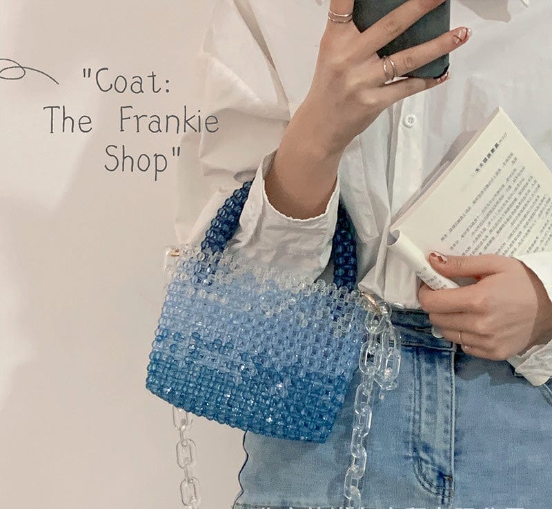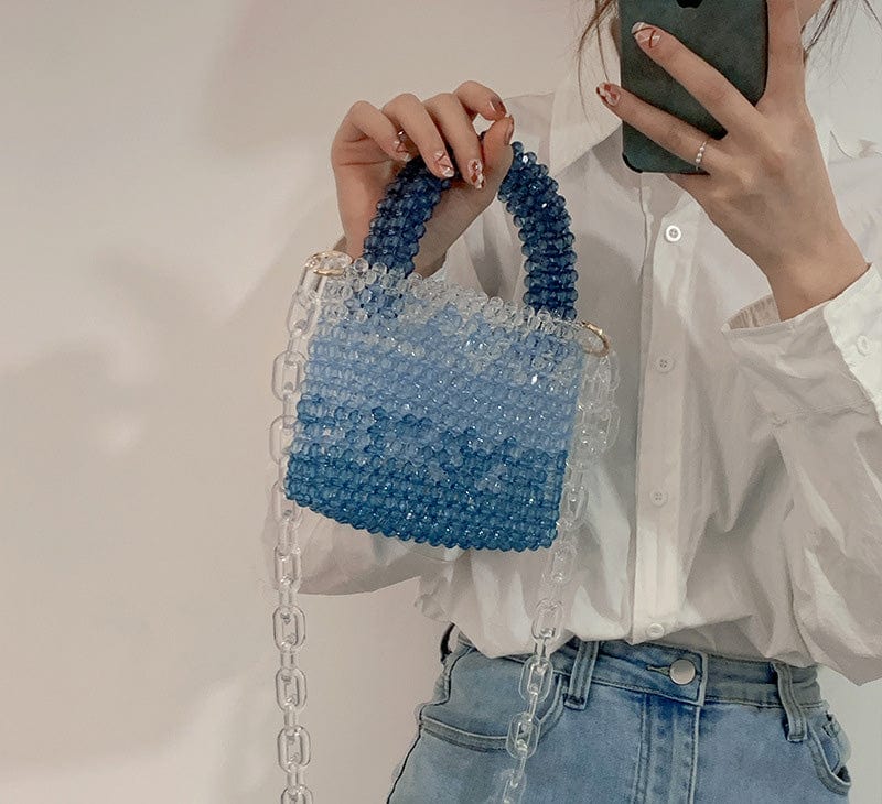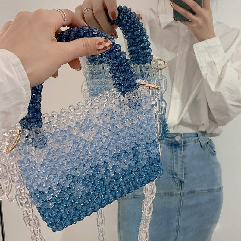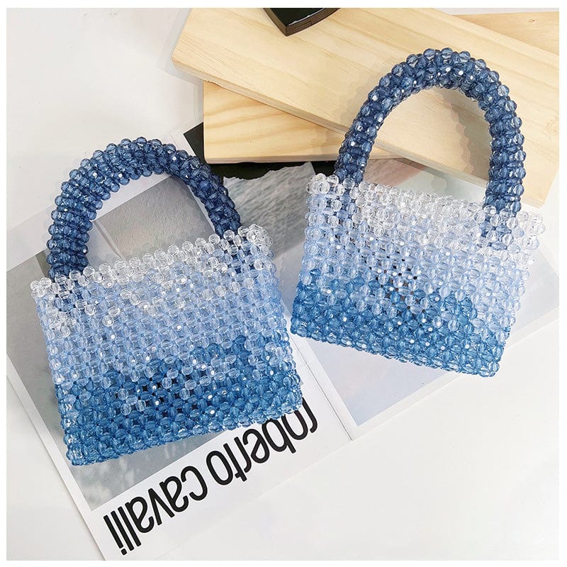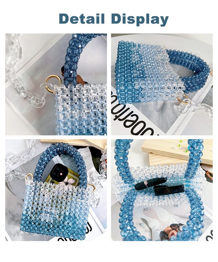 Girls Diy Handle Acrylic Pearl Clear Beading Purse Crystal Beach Beaded Clutch Handbag Wholesale Evening Handmade Beaded Bags