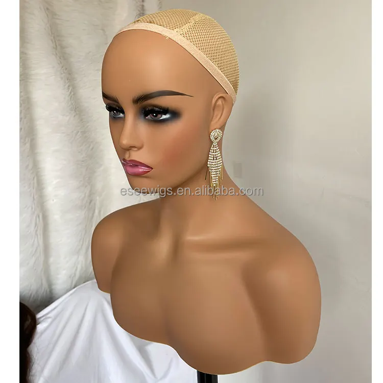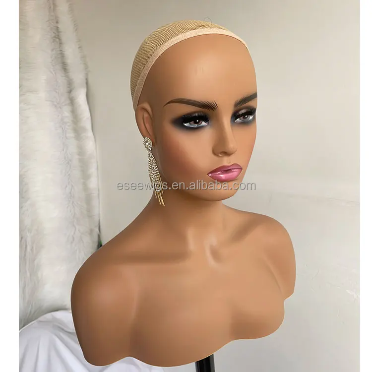 The manikin head has a realistic beautiful look, with eyelashes, lipstick and make up.