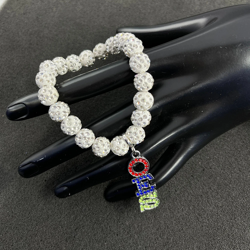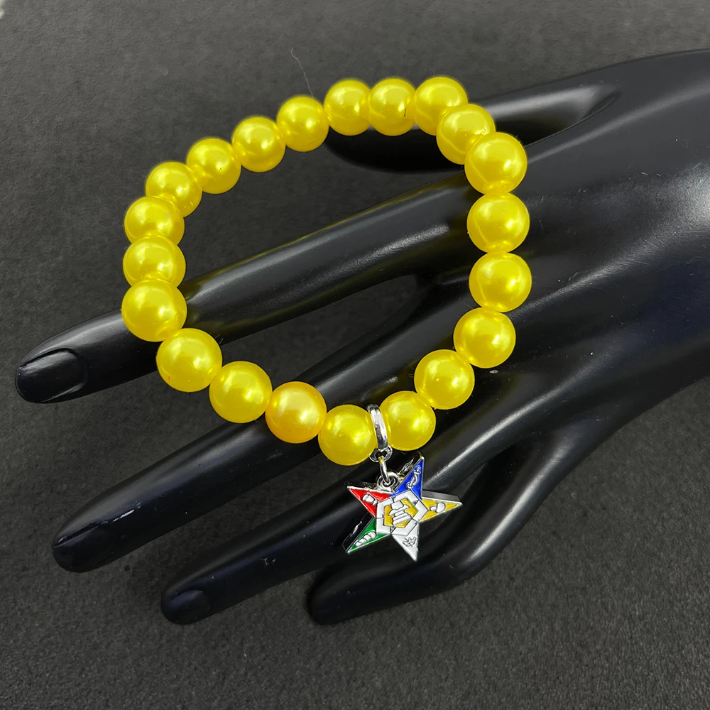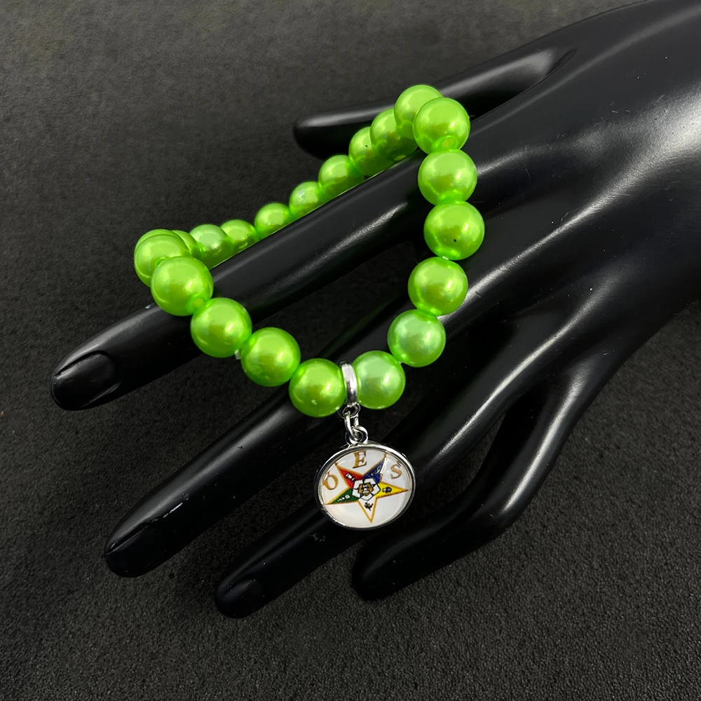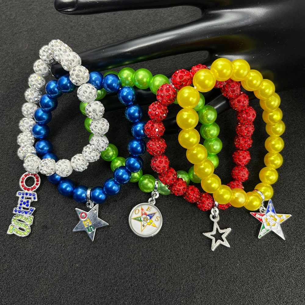 Handmade Red Blue White Gold Green Greek Sorority Order of Eastern Star OES Pearl Set Bracelets Neutral Jewelry Set