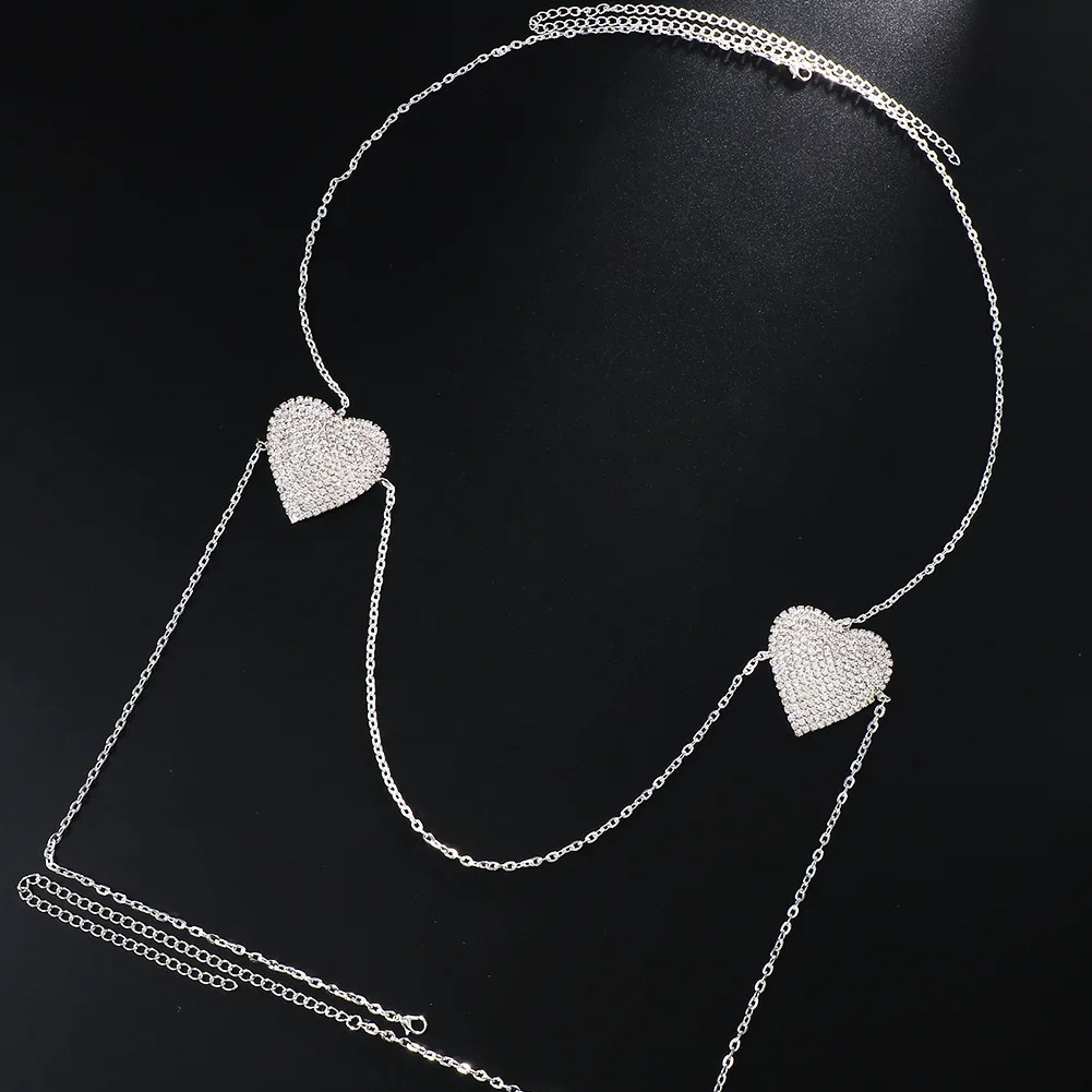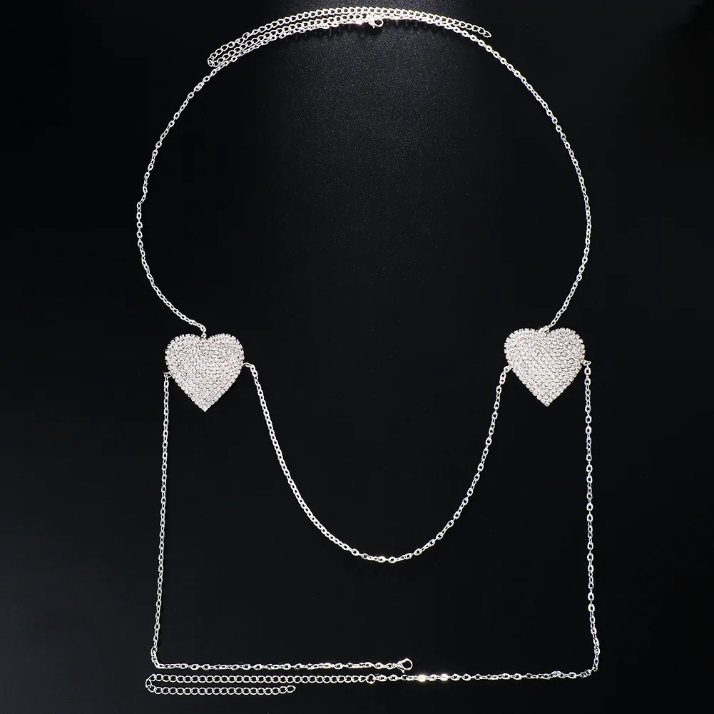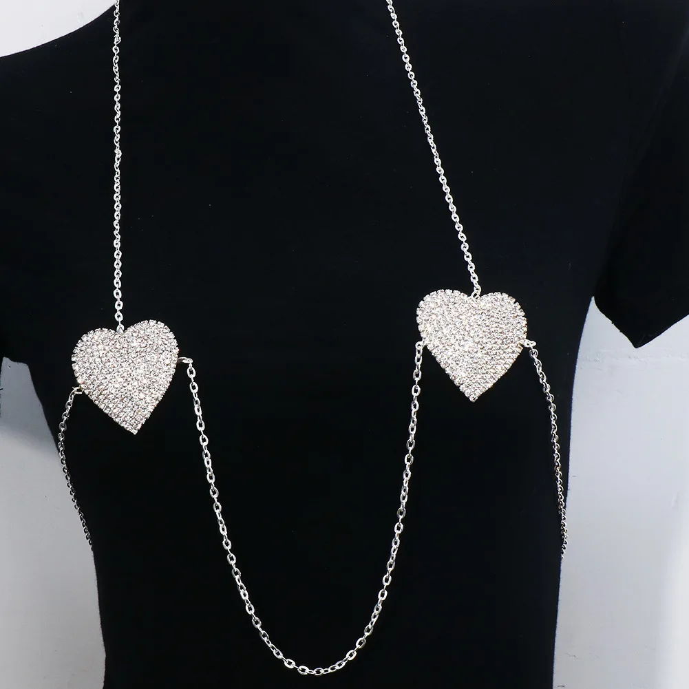 Heart Shaped Body Chain Sexy Interesting Diamond Heart Chest Sticker Jewelry No Piercing Jewelry