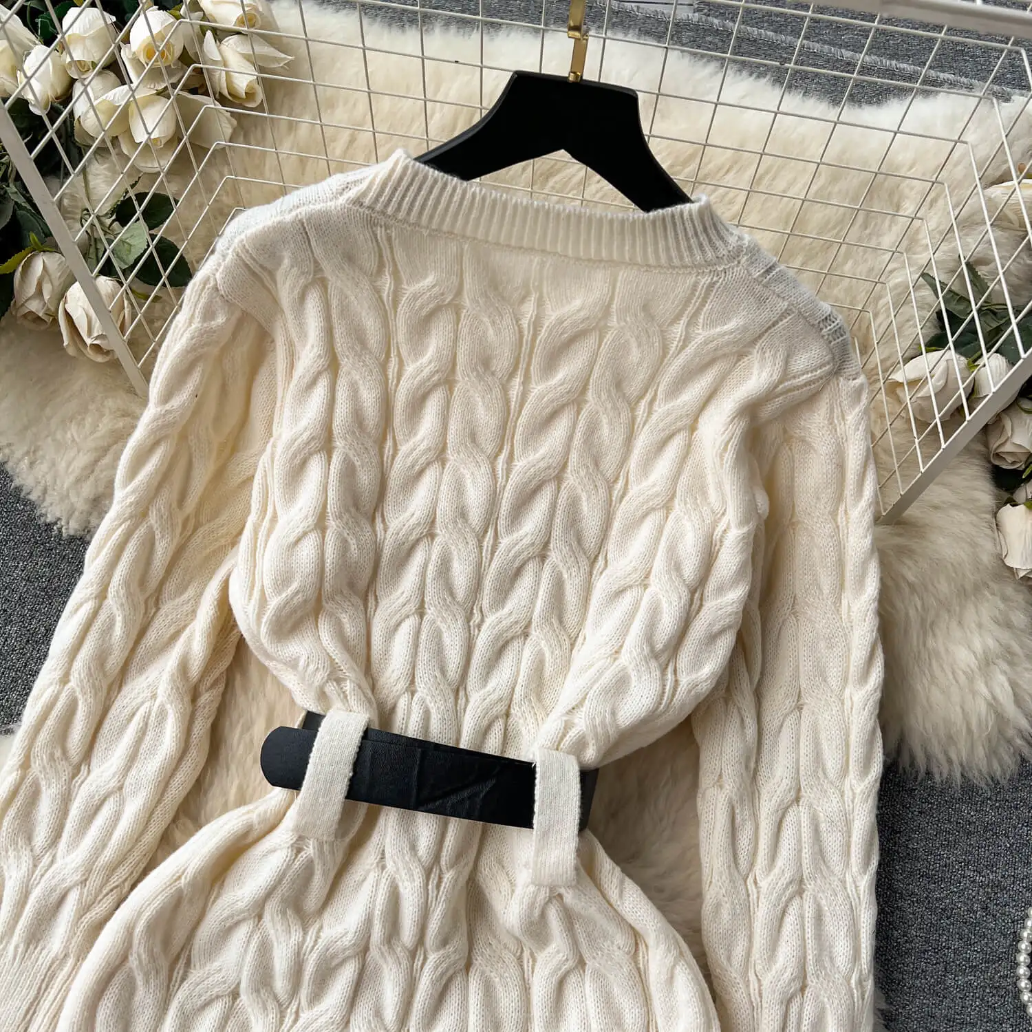 High-Grade Female Autumn Winter Waist Small Design Light Luxury Socialite Knitted Dress