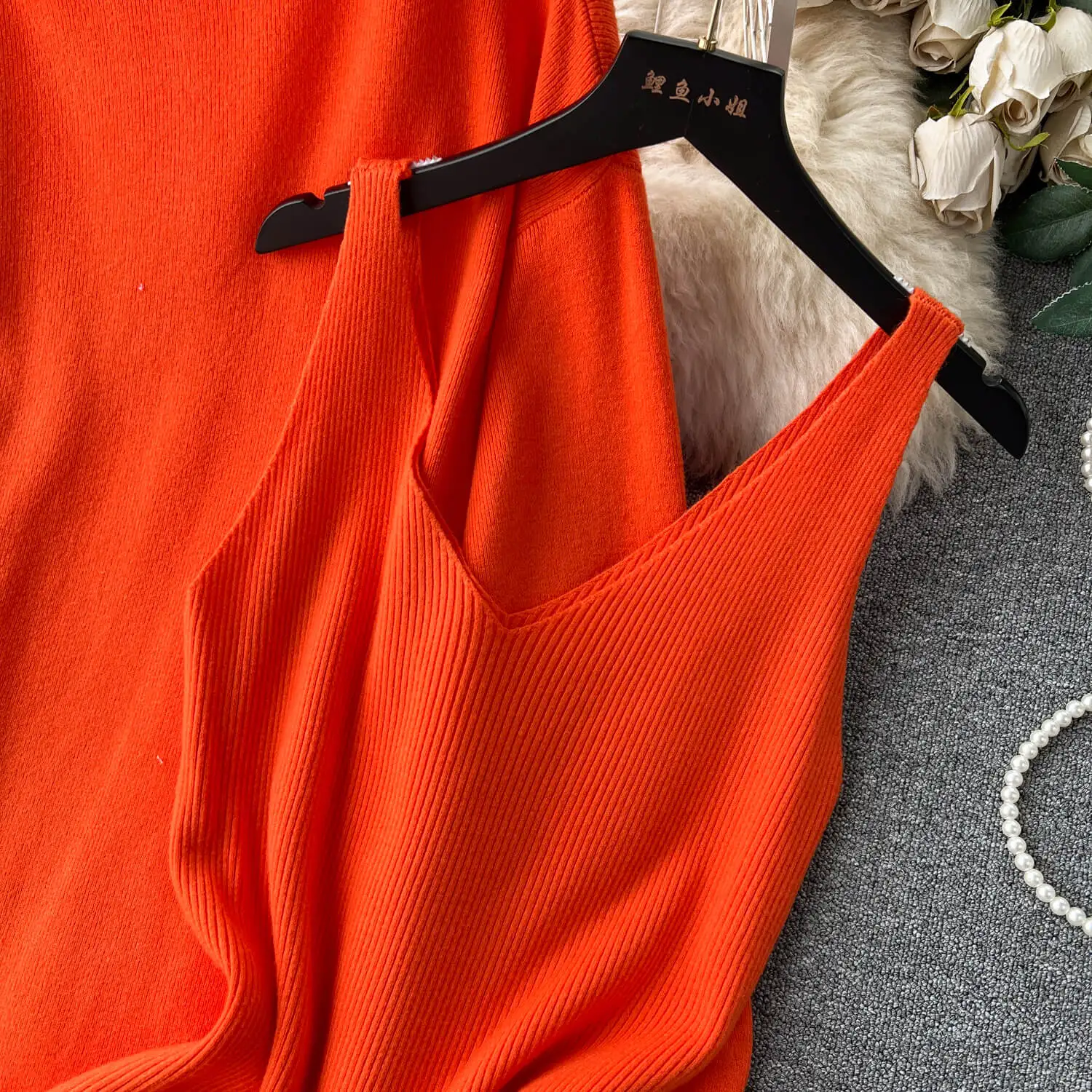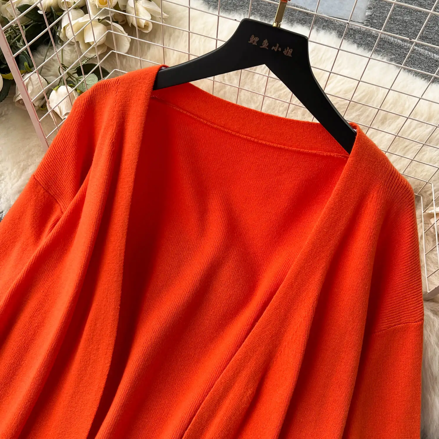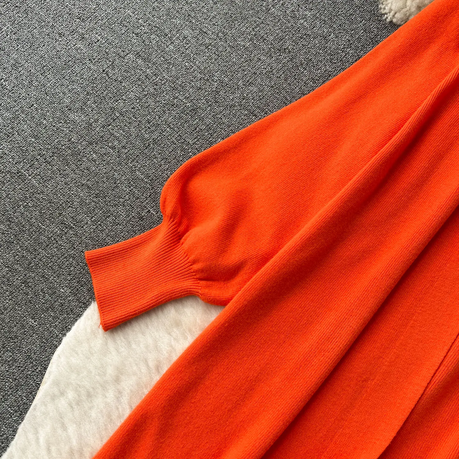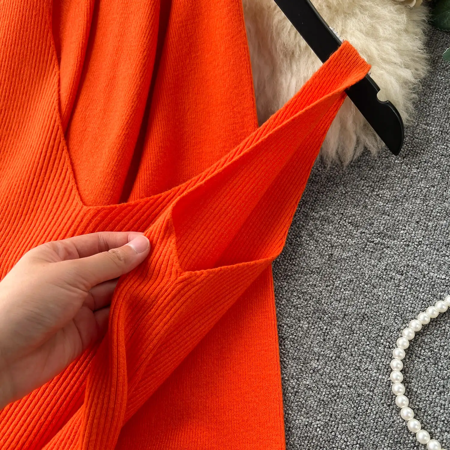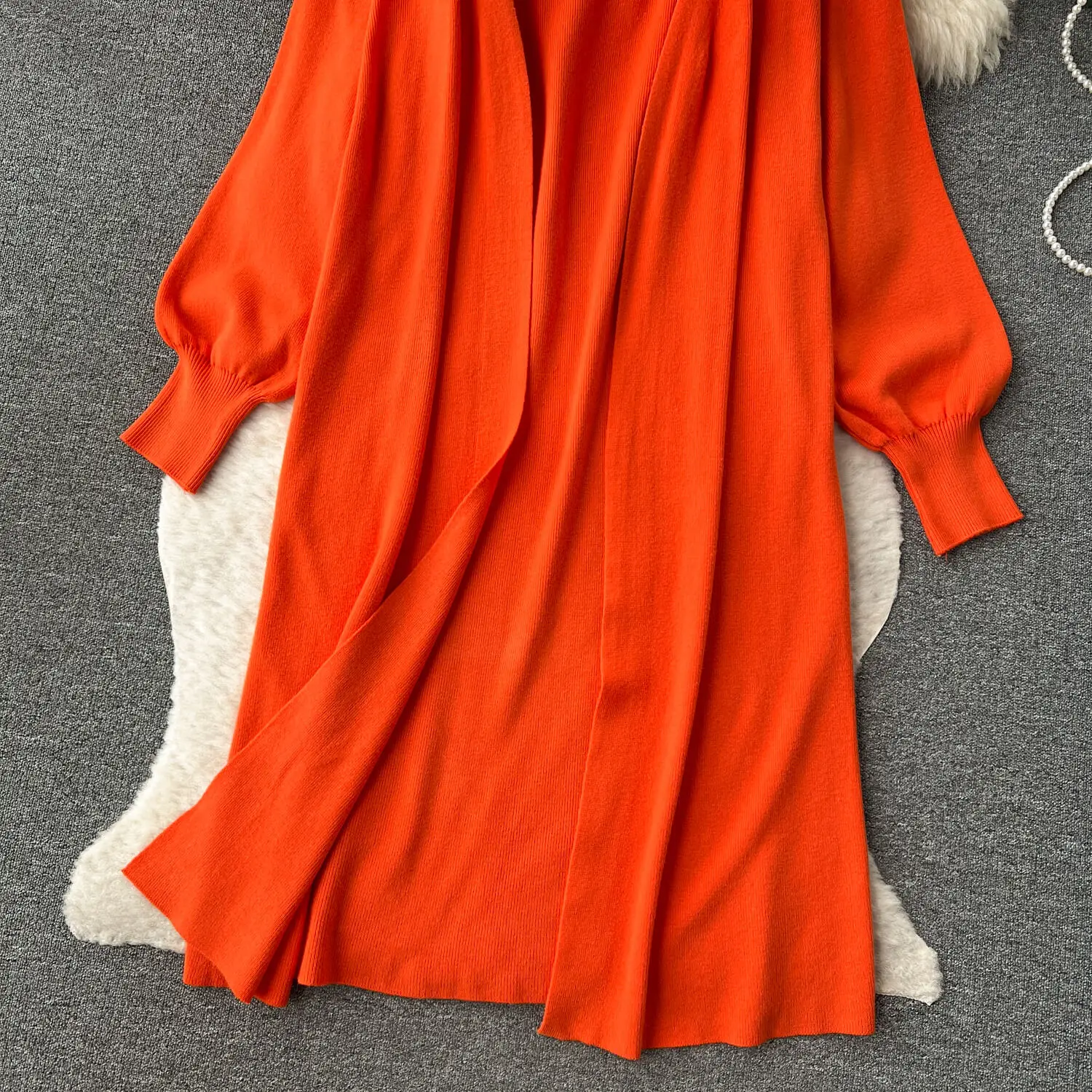 High-Grade Solid Color Knitted Fashion set Women's Autumn V-Neck Halters Dress + Loose Slim Long-Sleeved Top