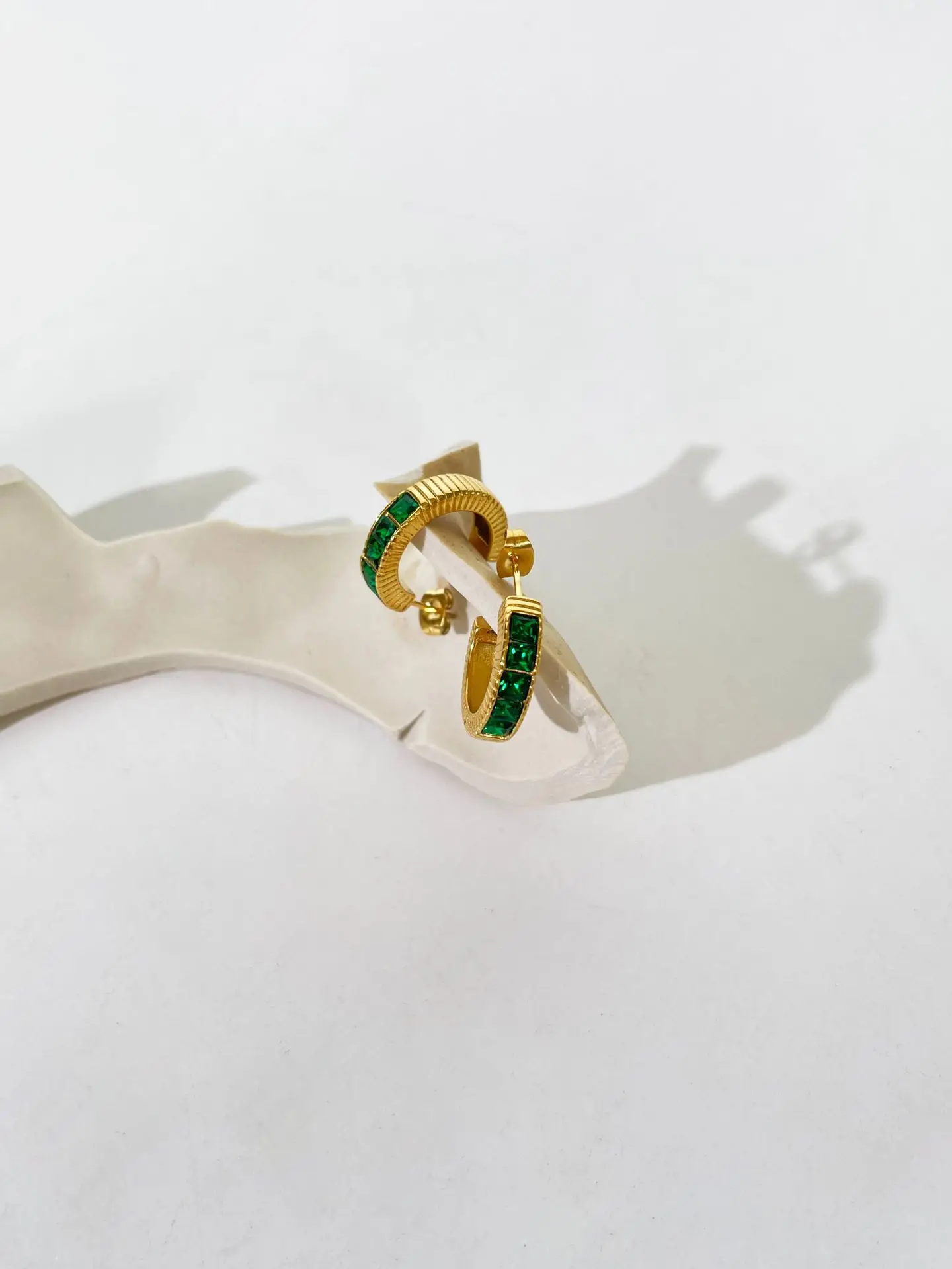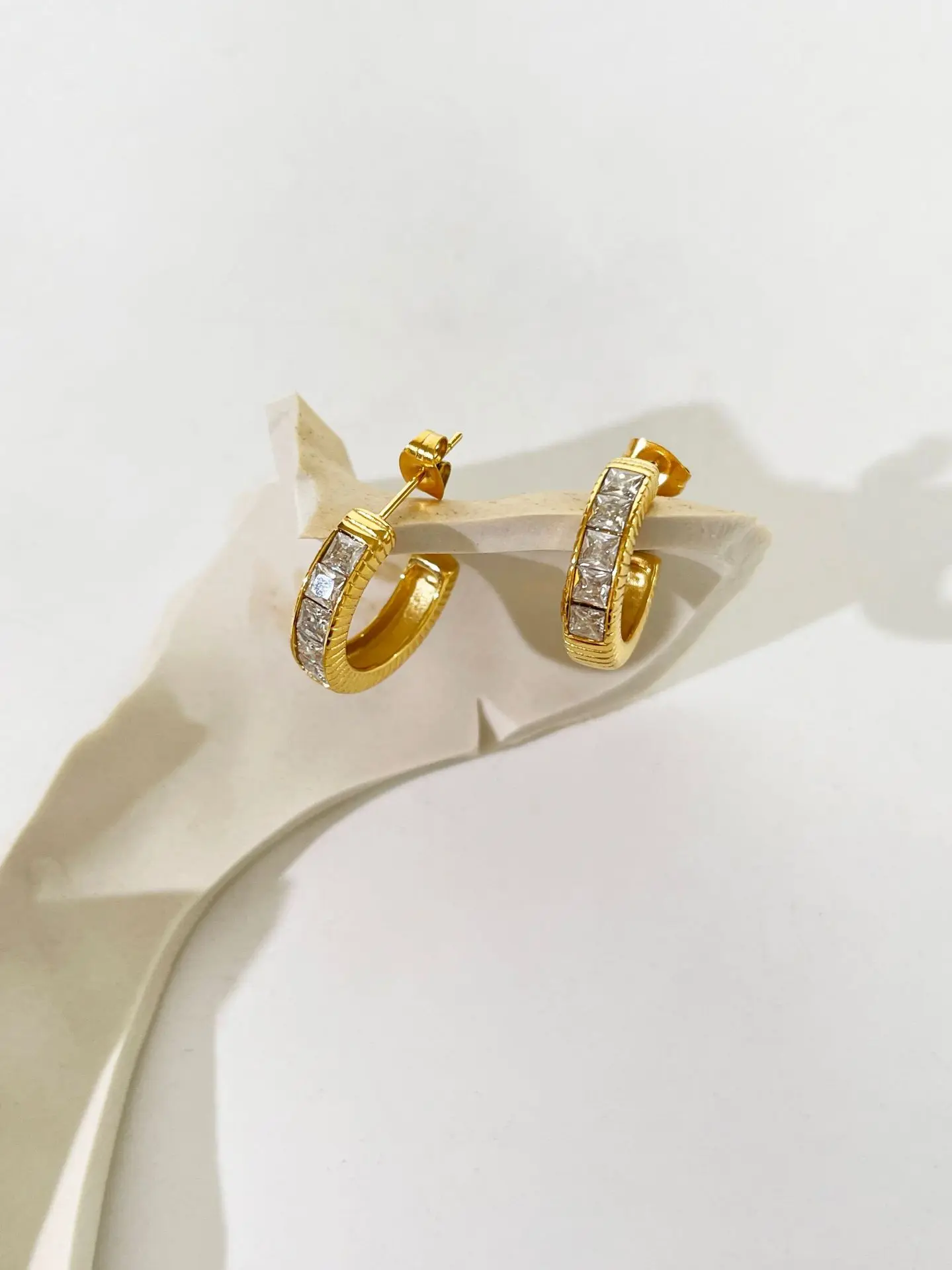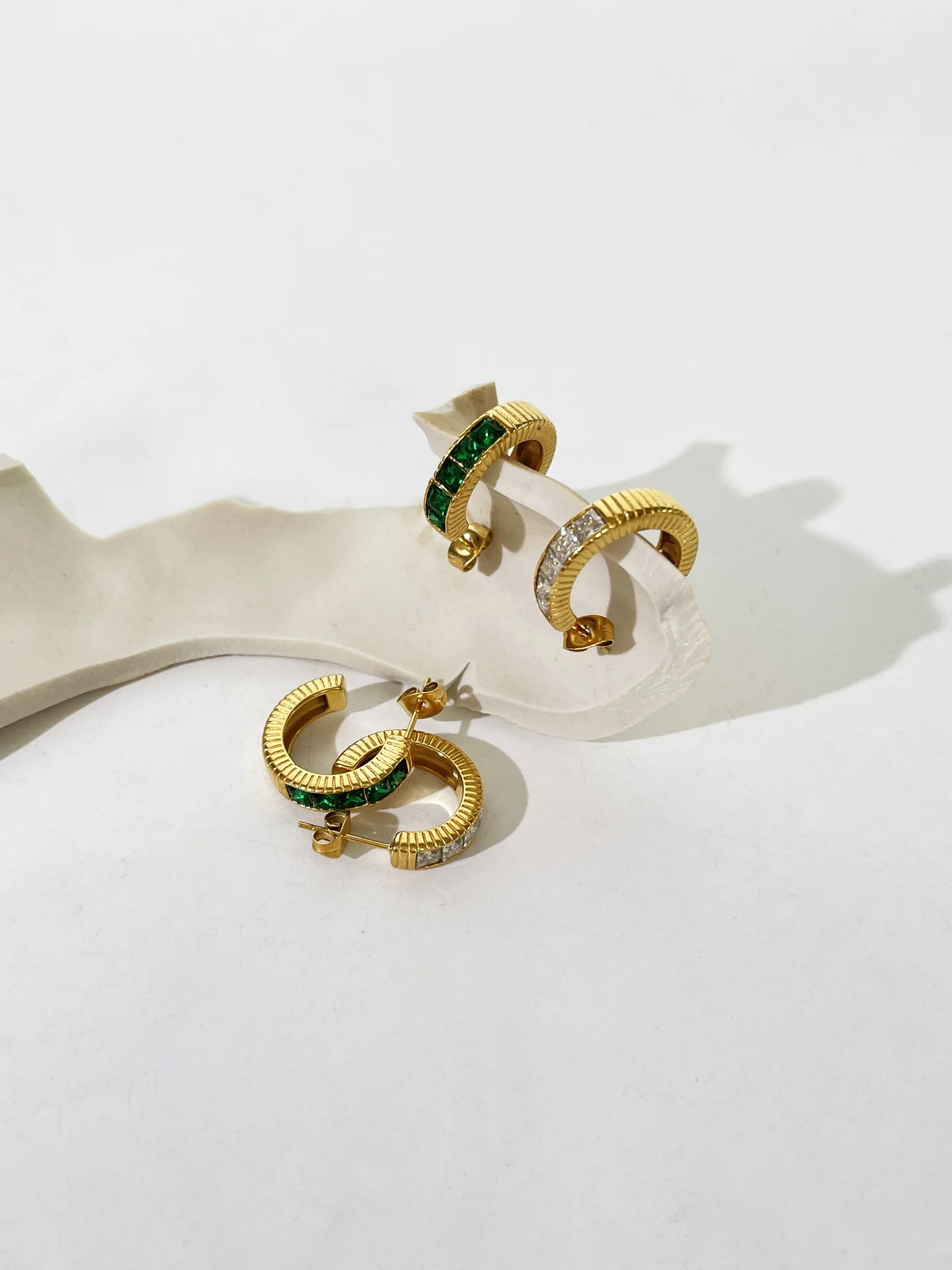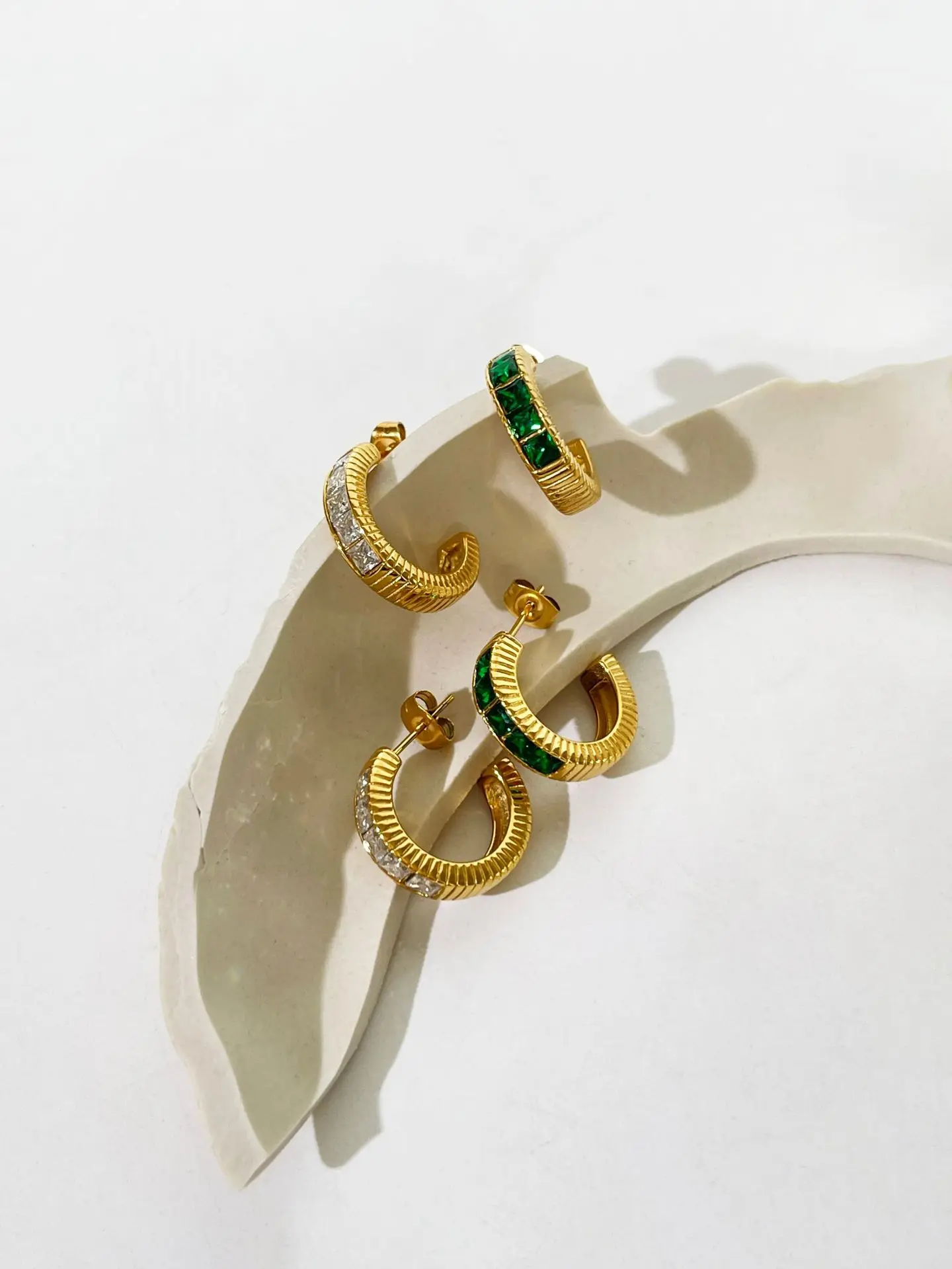 High Quality Bling Cubic Zirconia Jewelry Stud Earrings for Women Gold stainless steel C Shape Earrings