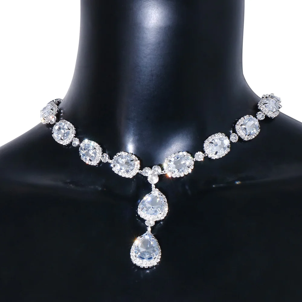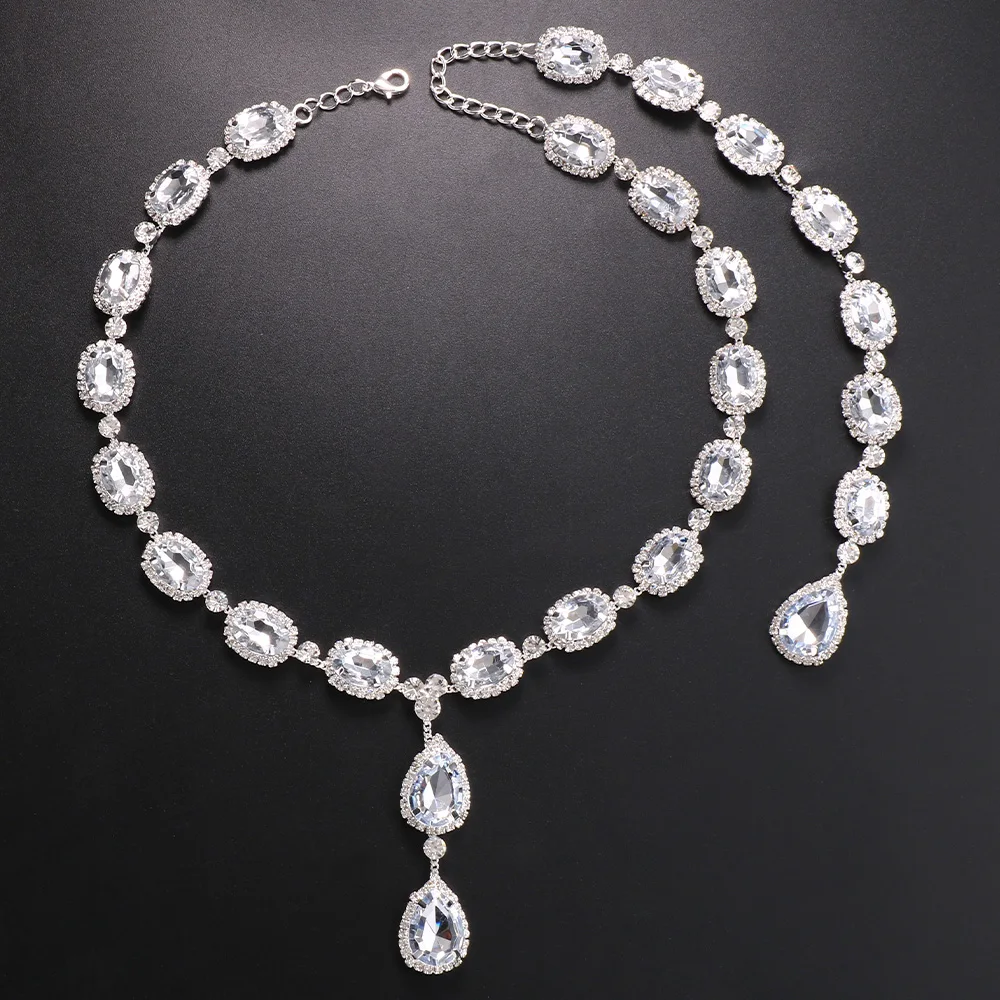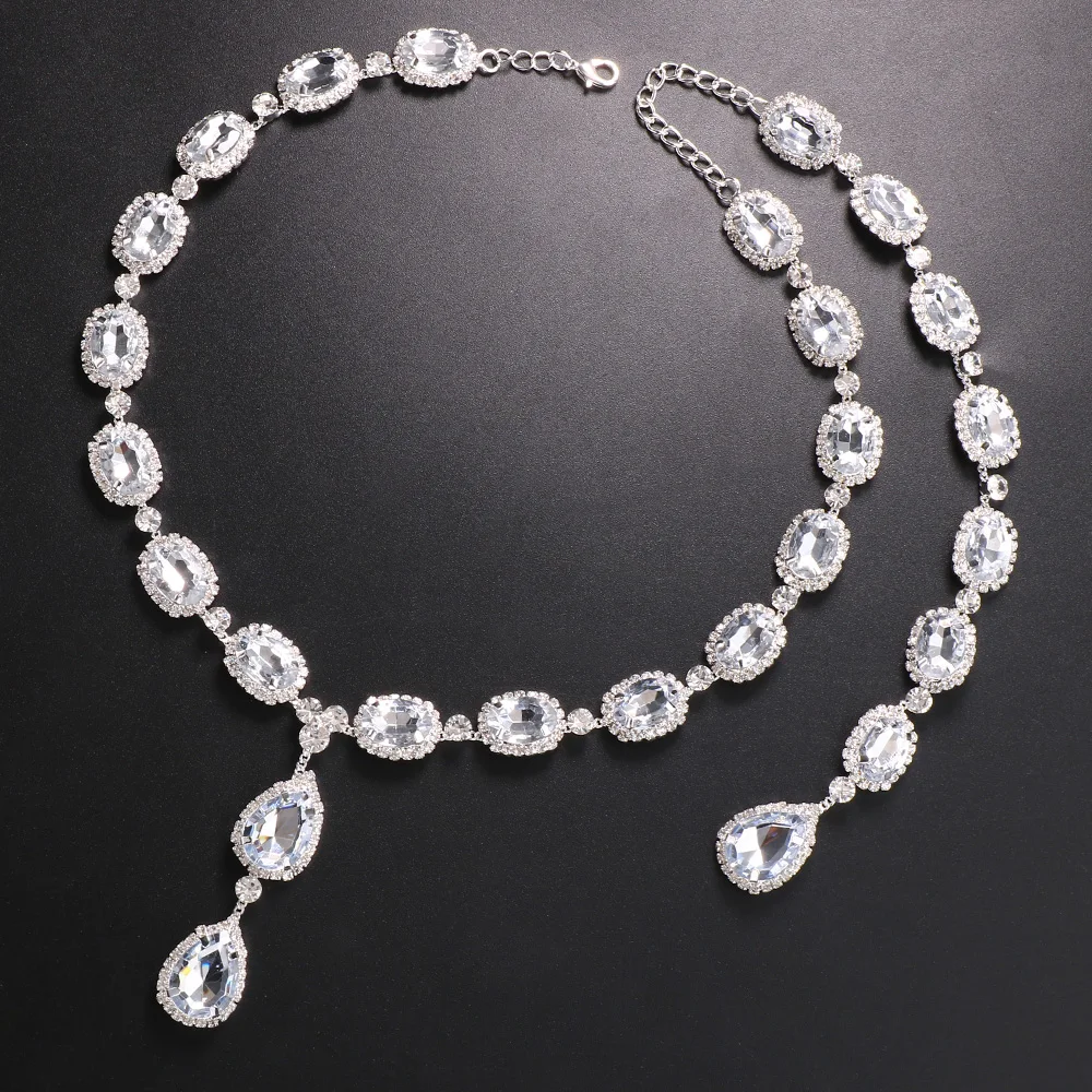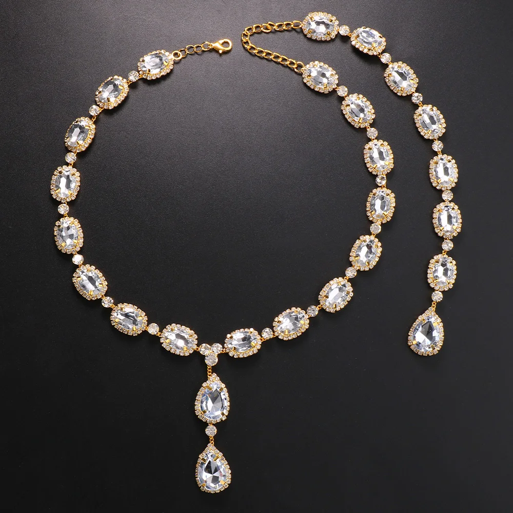 High Quality Crystal Water Drop Back Chain New Style Square Shape Gemstone Necklace Body Chain Wedding Jewelry