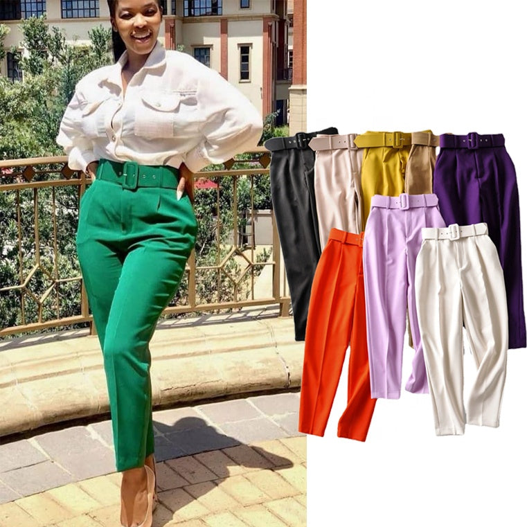 High waist women harem suit pants with matching belt casual formal office trousers for ladies