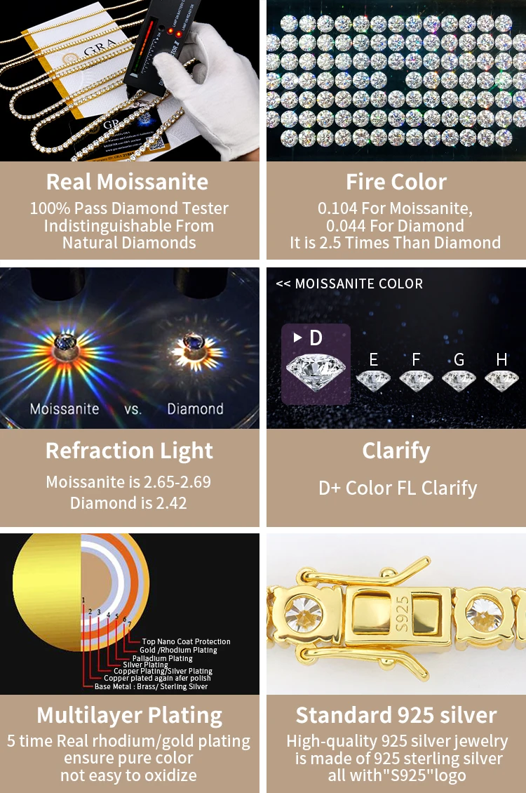 Hip hop fine jewelry 5mm silver 925 link necklace gra vvs lab diamond mossanite moissanite chainb for men