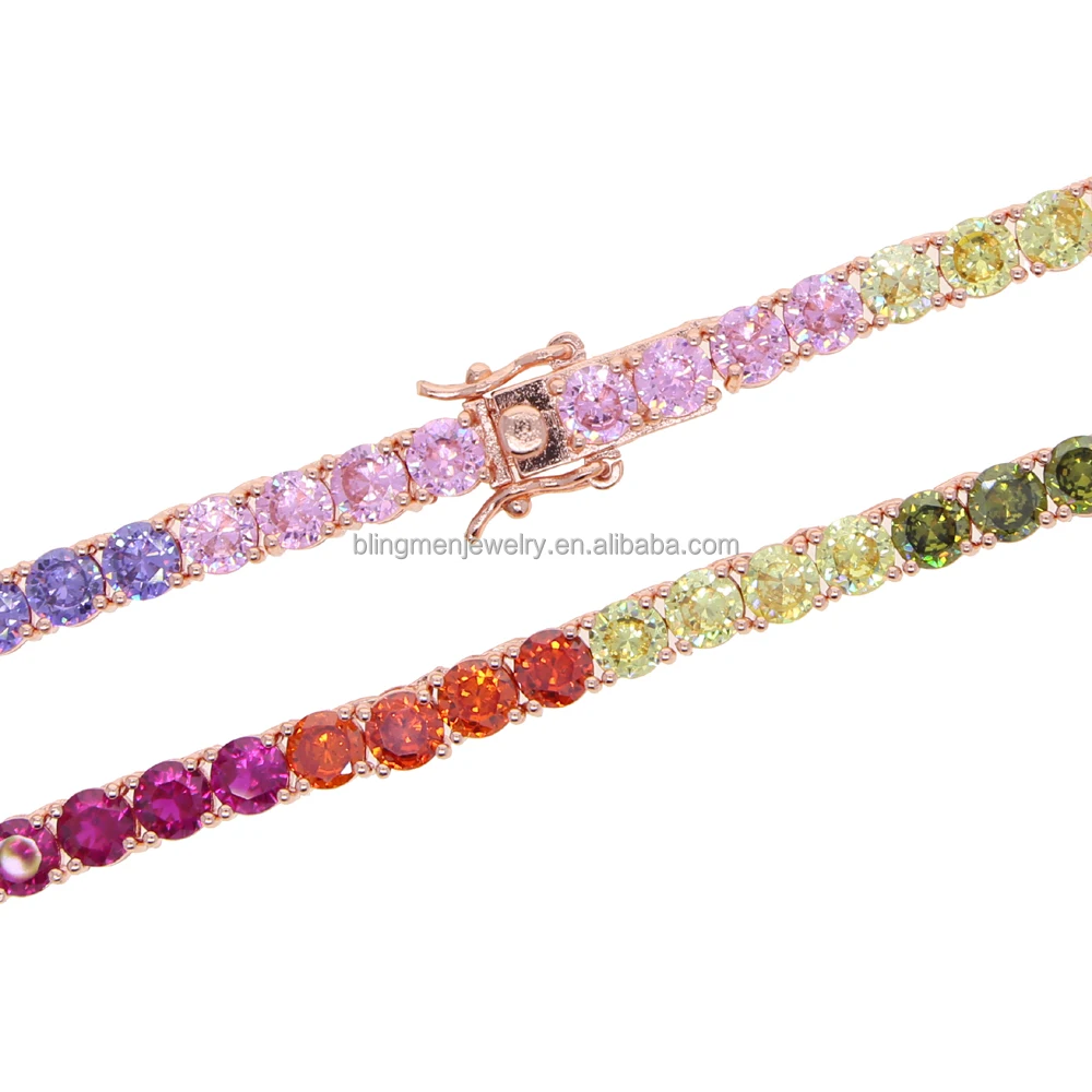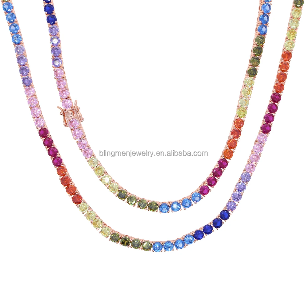 hip hop ice men women couple fashion jewelry cz tennis chain colorful necklace
