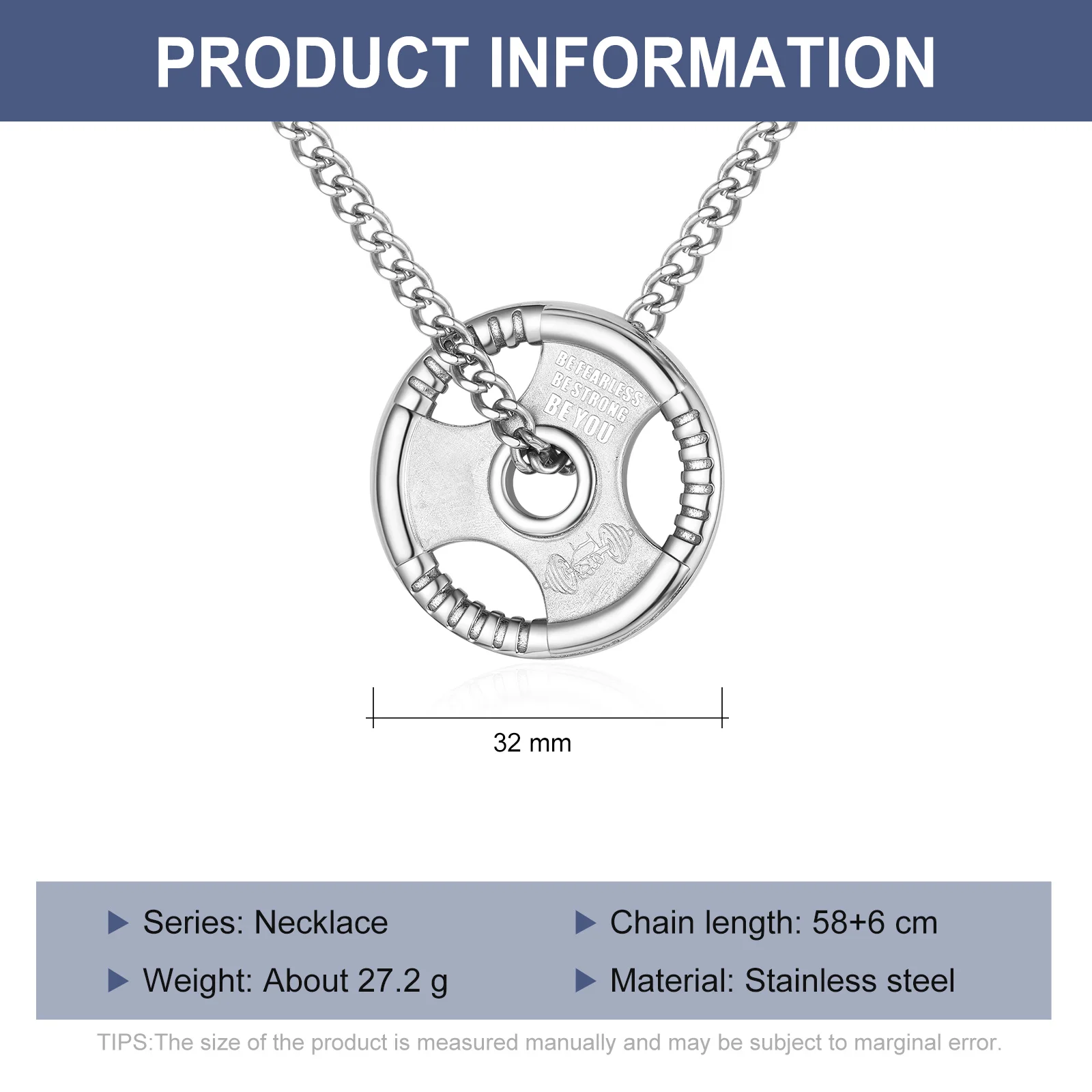 Hip Hop Jewelry Gym Weightlifter Grip Plate Pendant Necklace Father Gift Stainless Steel Necklace