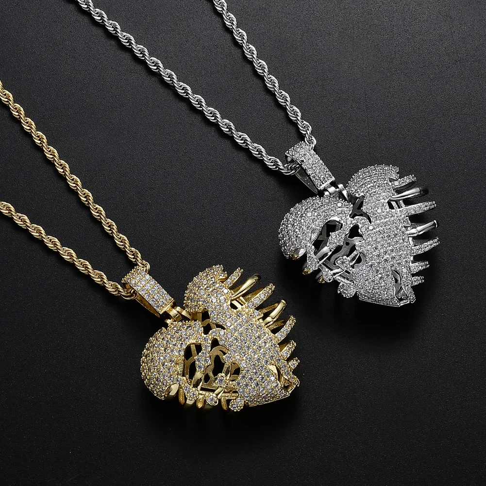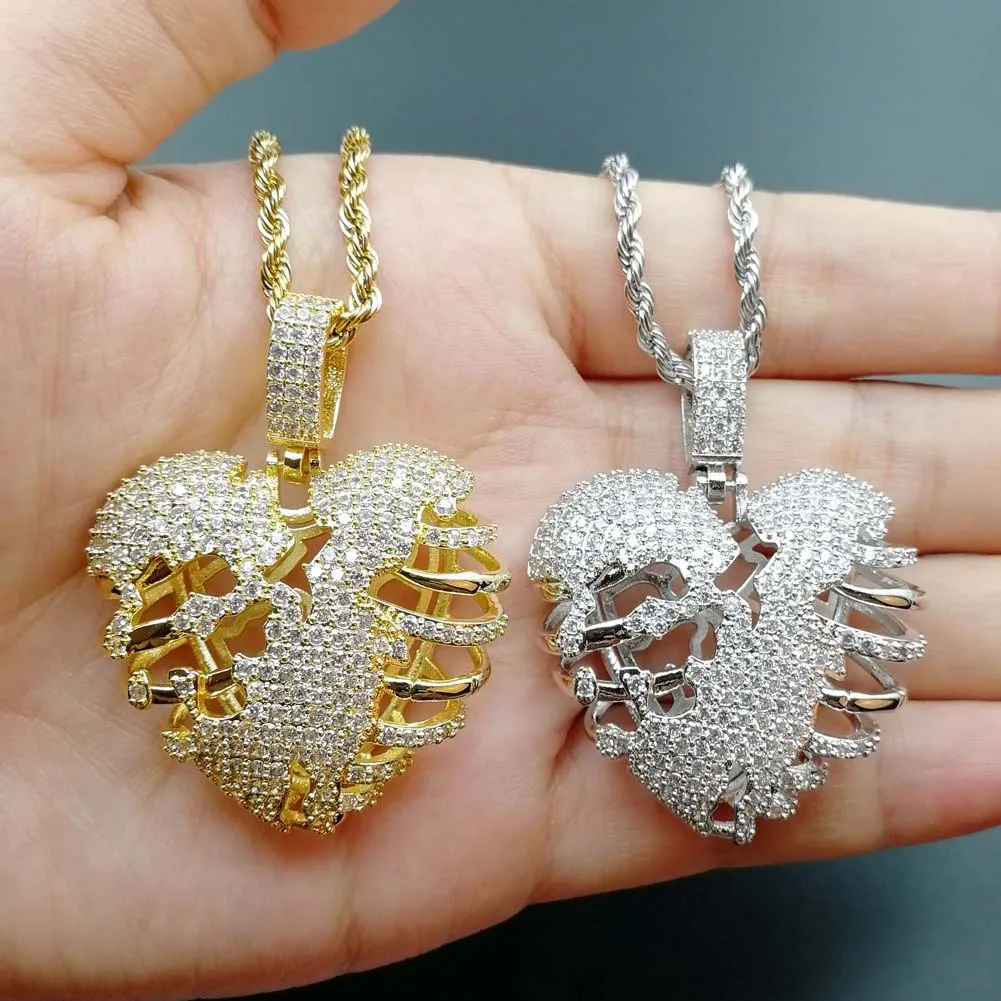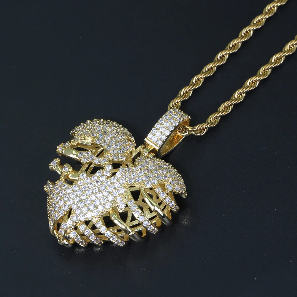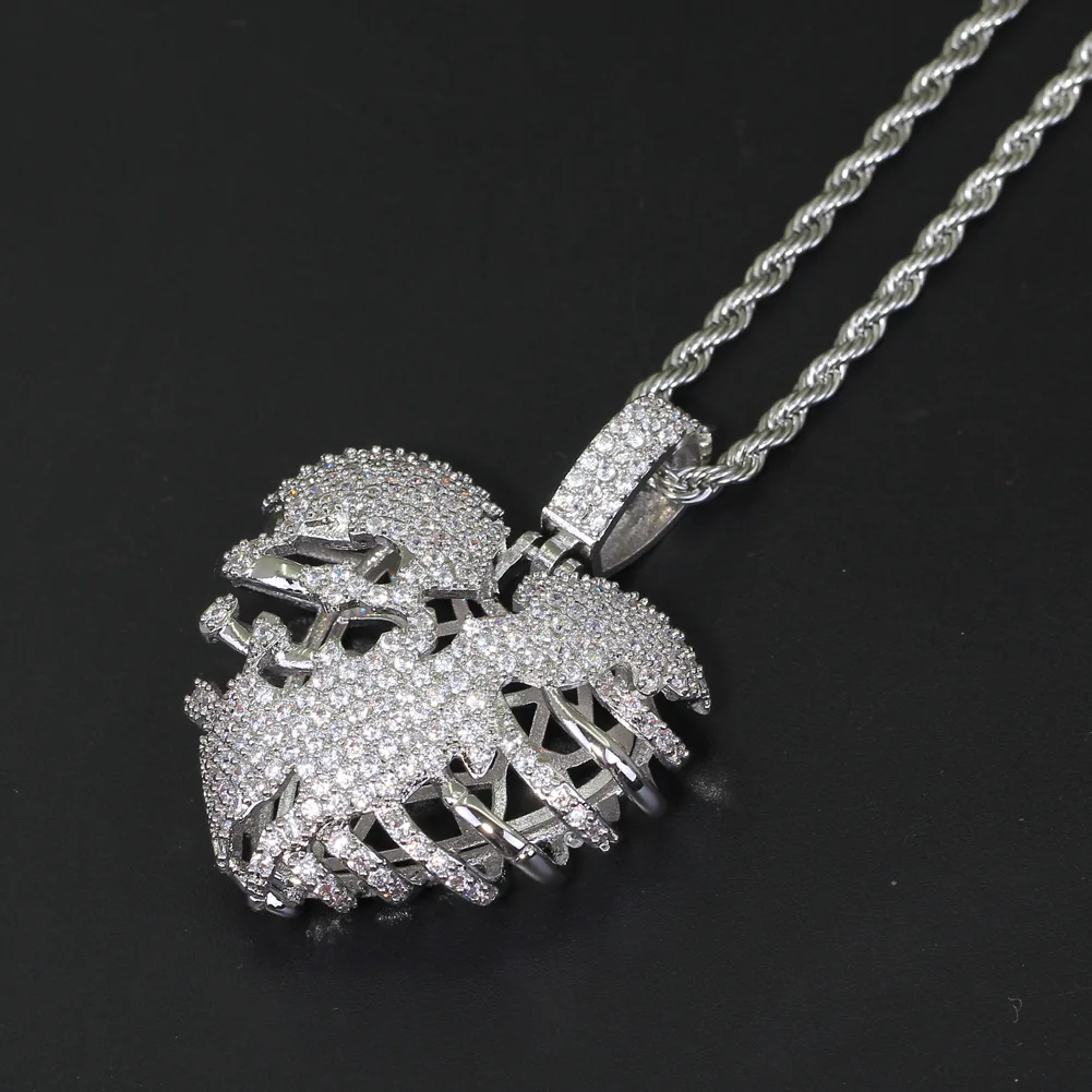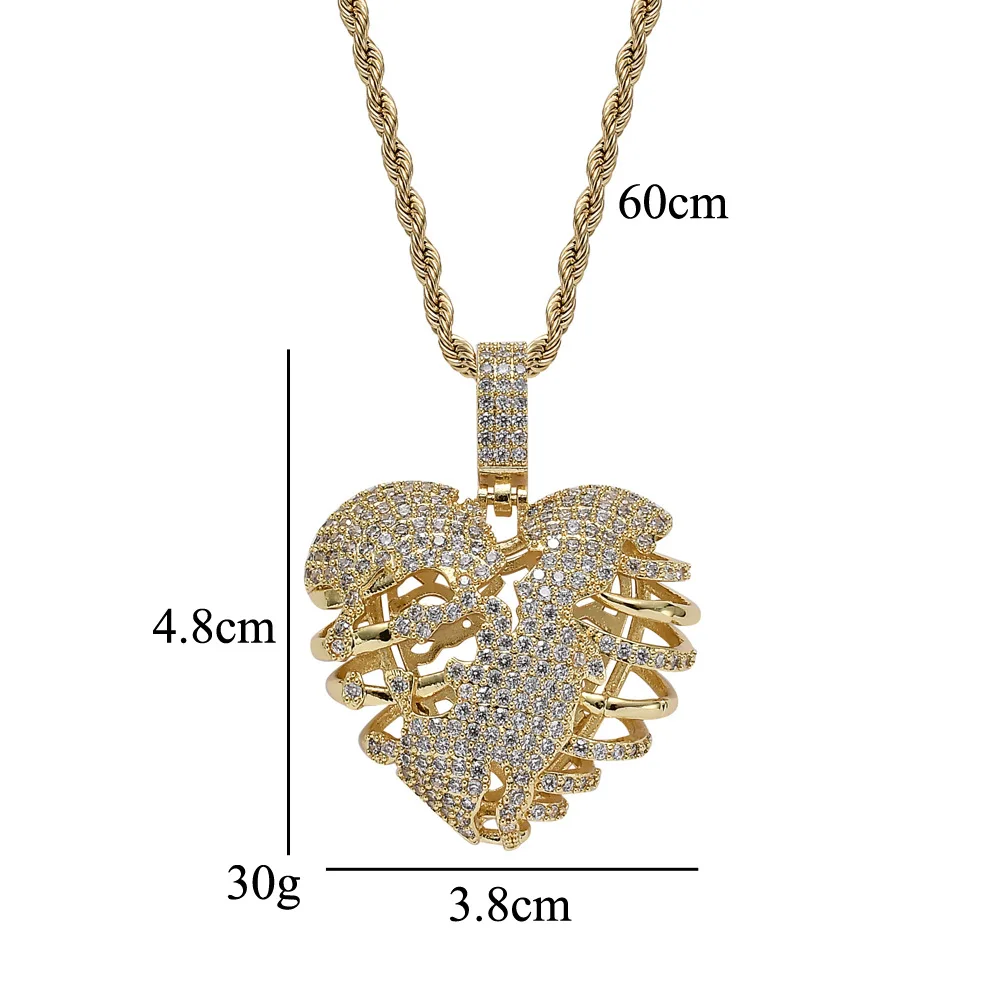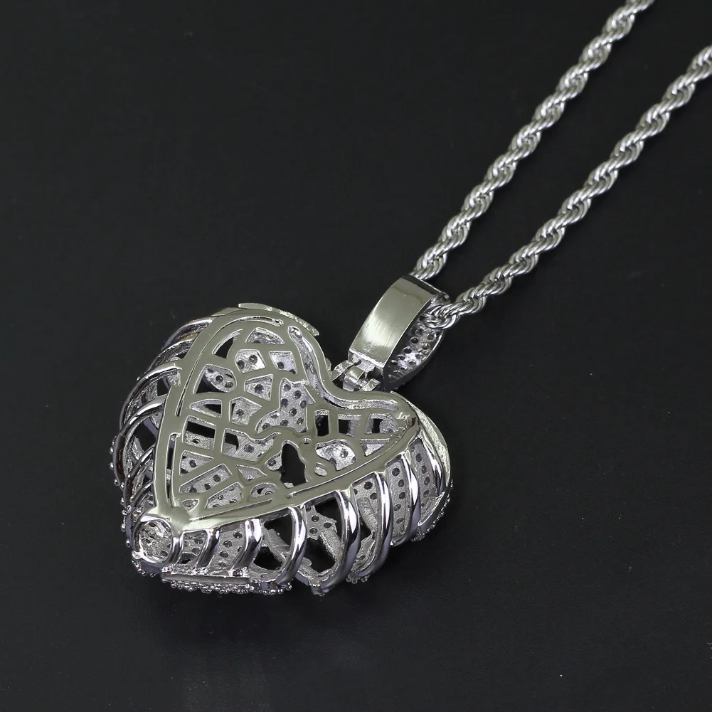 Hip Hop Jewelry Stereo Hollow Heart Pendant Copper Inlaid Zircon necklace for girls