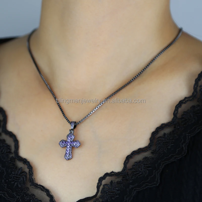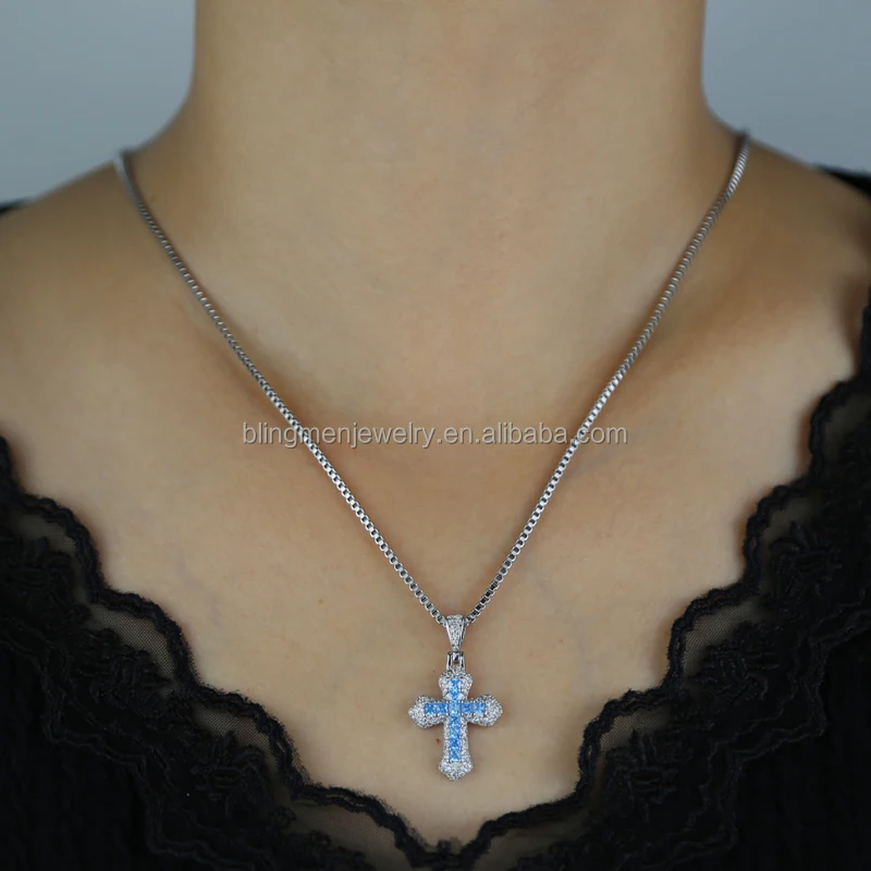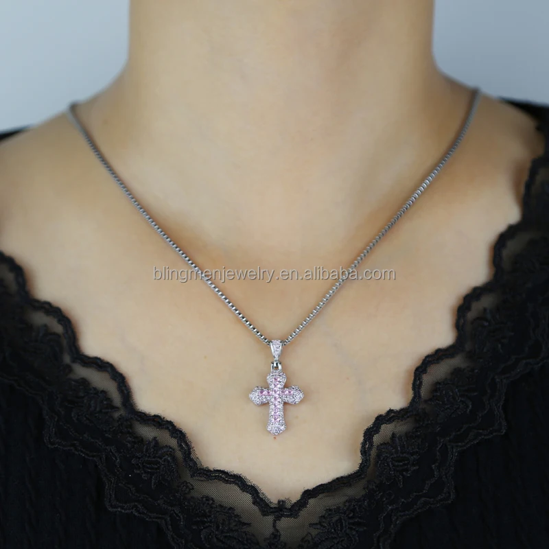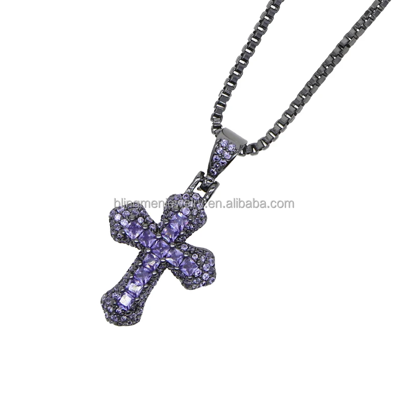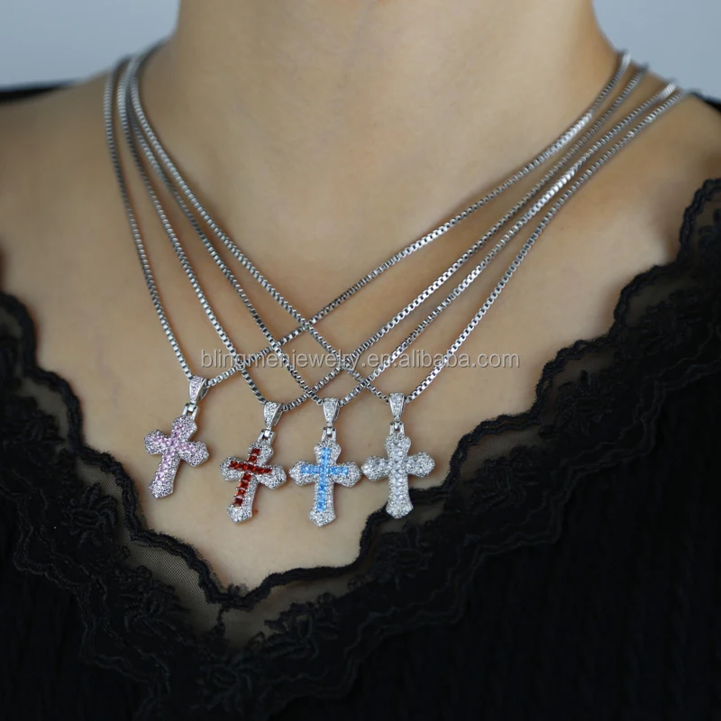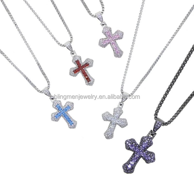 Hip-hop Men Women Classic Cross Pendant Necklace Micro Paved Bling Rainbow Cz Crystal Stones Wholesale Jewelry