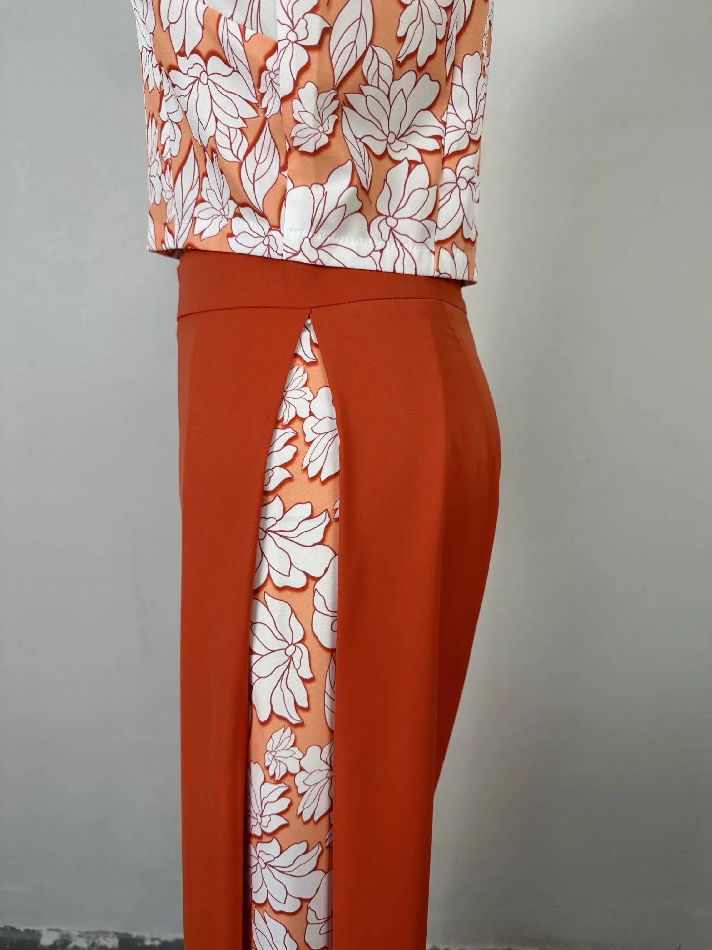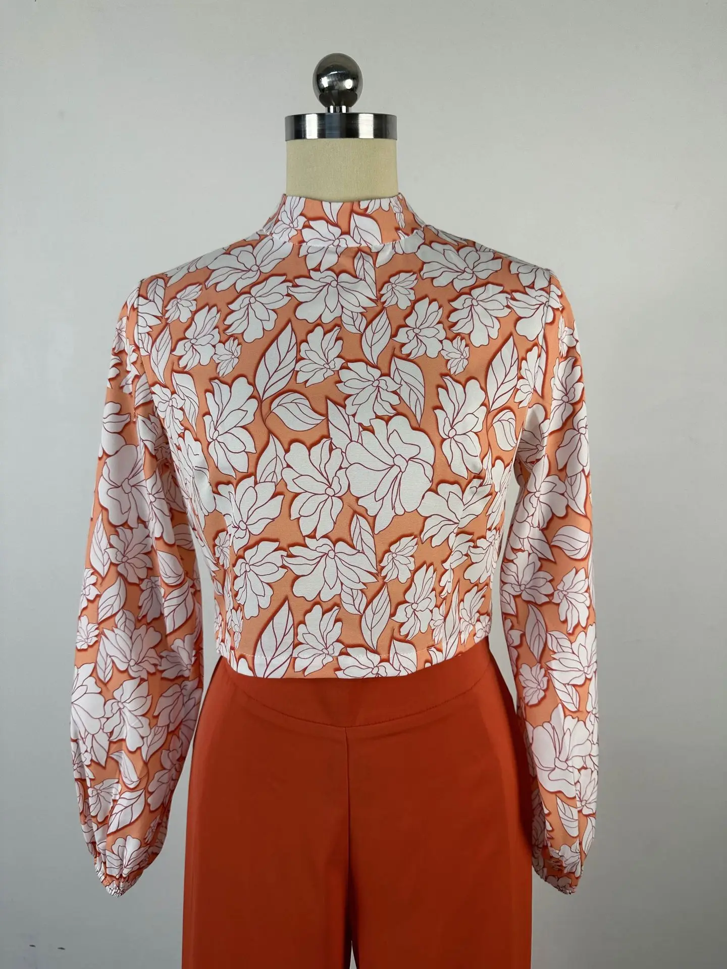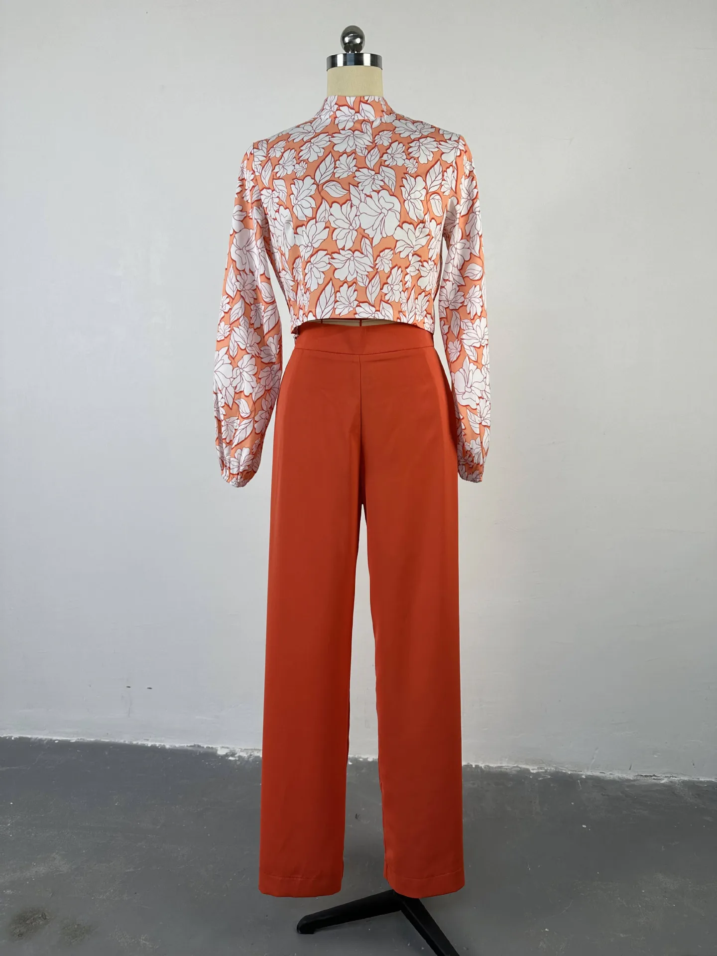 HK5268 Women's Loose Large Size Fashion Lapel Long-sleeved Shirt Wide Printed Leg Pants Suit