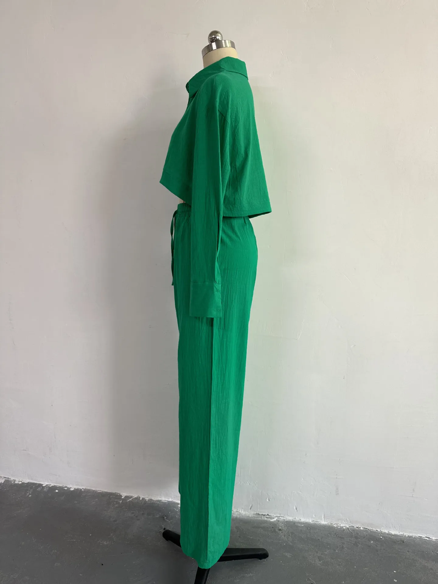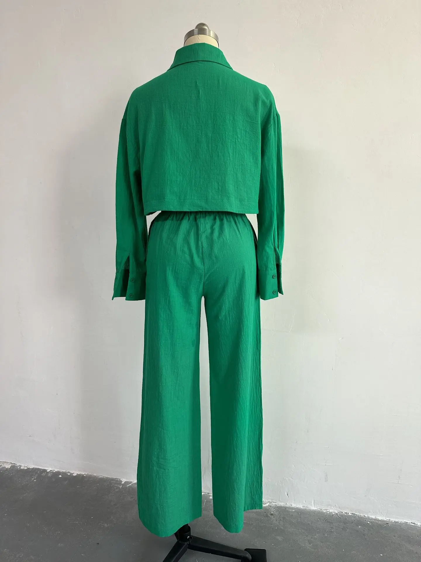 Hk6014 Latest Design Fall Outfits For Women Simple Short Shirt Wide Leg Pants Ladies 2 Piece Outfits Two Piece Set Women Clothin