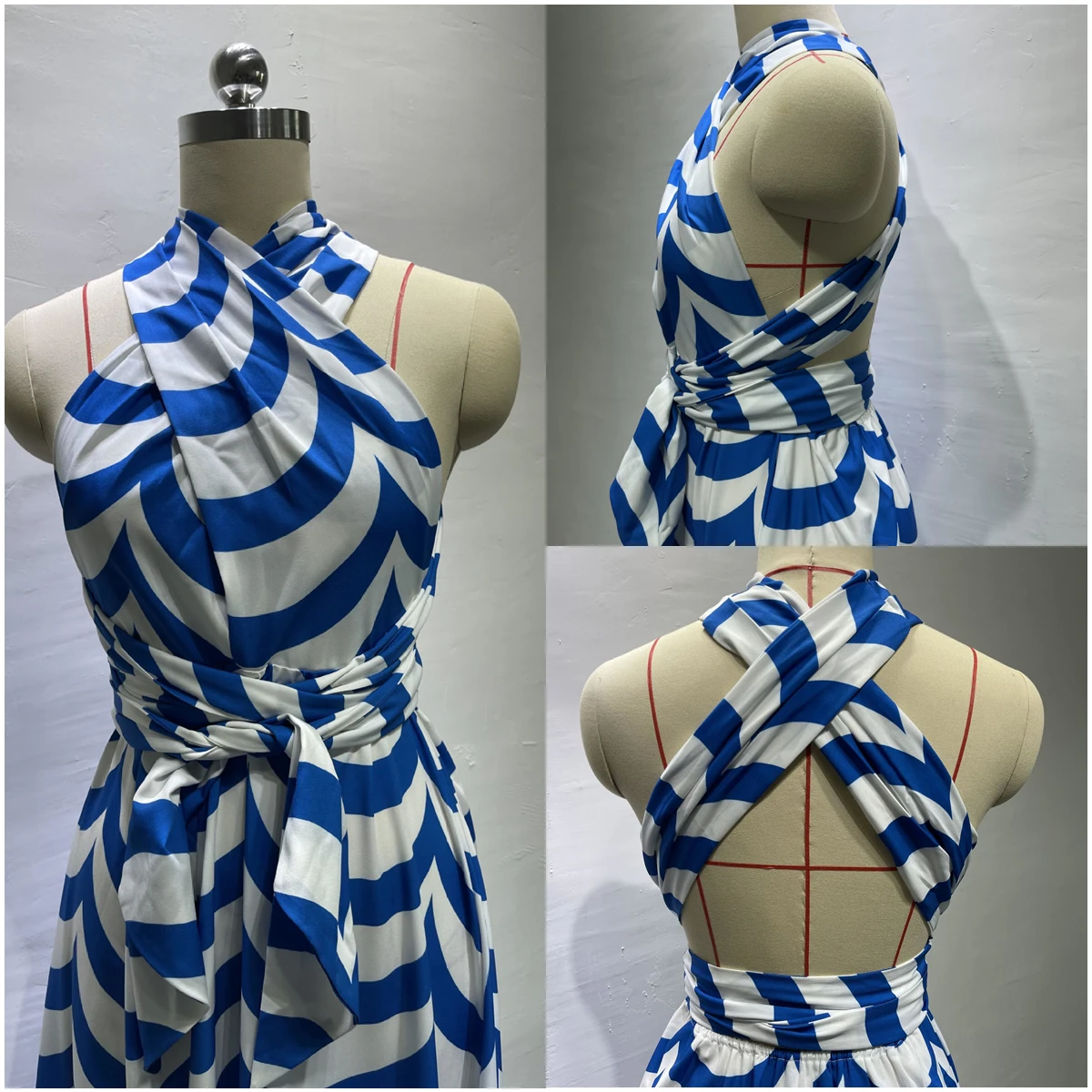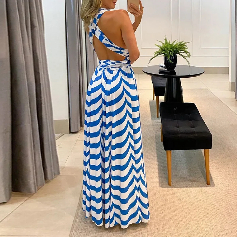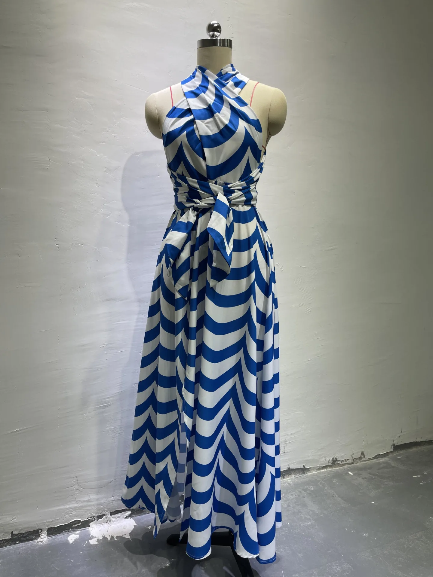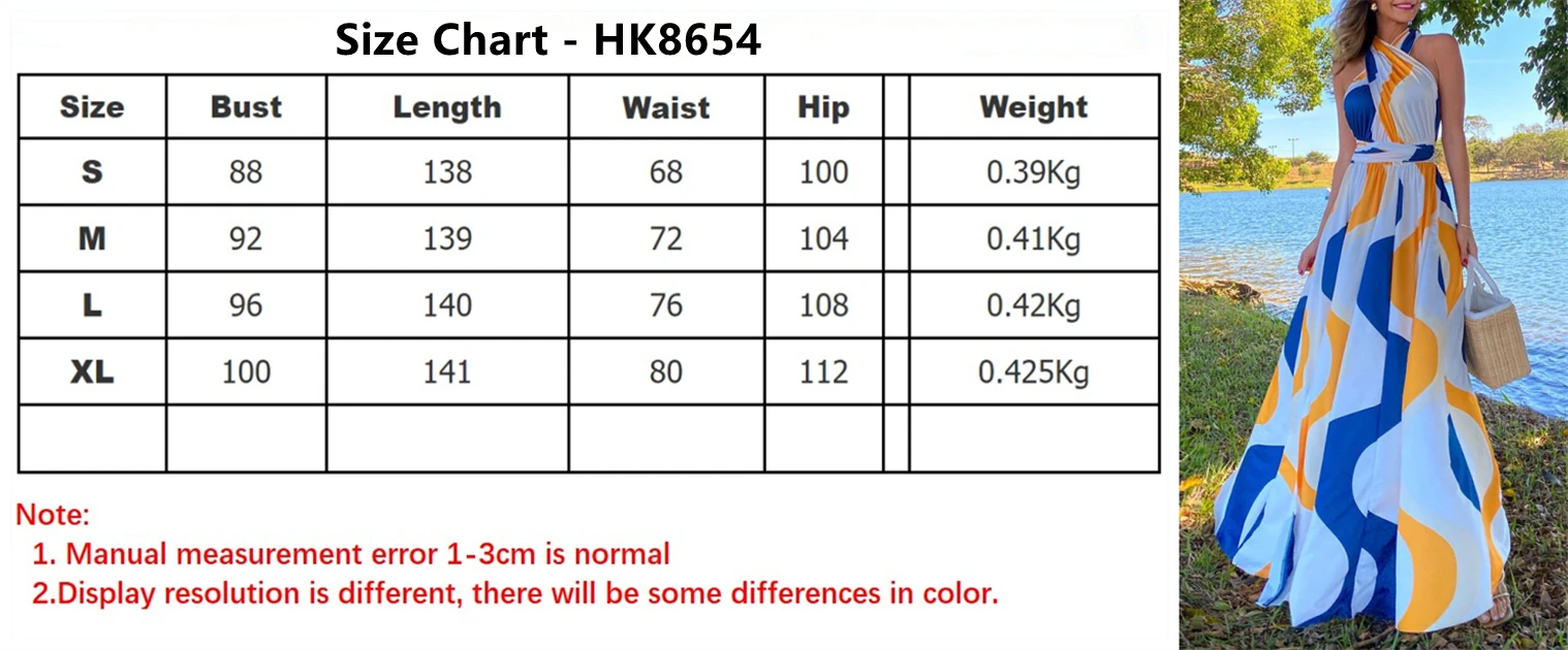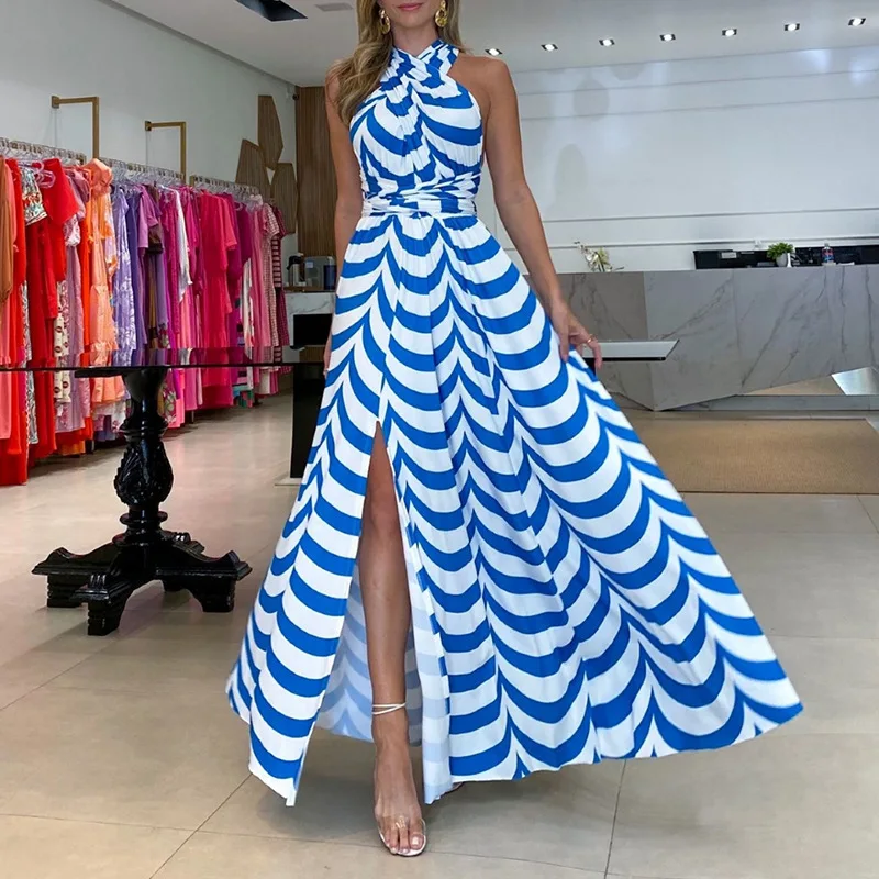 HK8654 New Arrivals Women Summer Dress 2023 Print Halter Backless High Waist Split Long Dresses Women Beach Resort Party Dress
