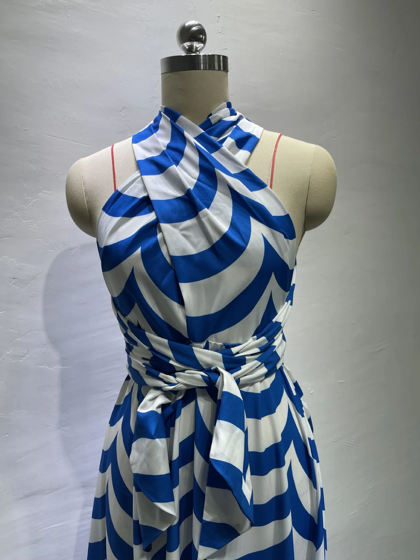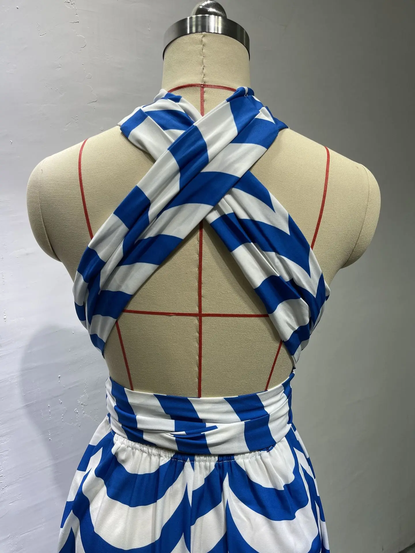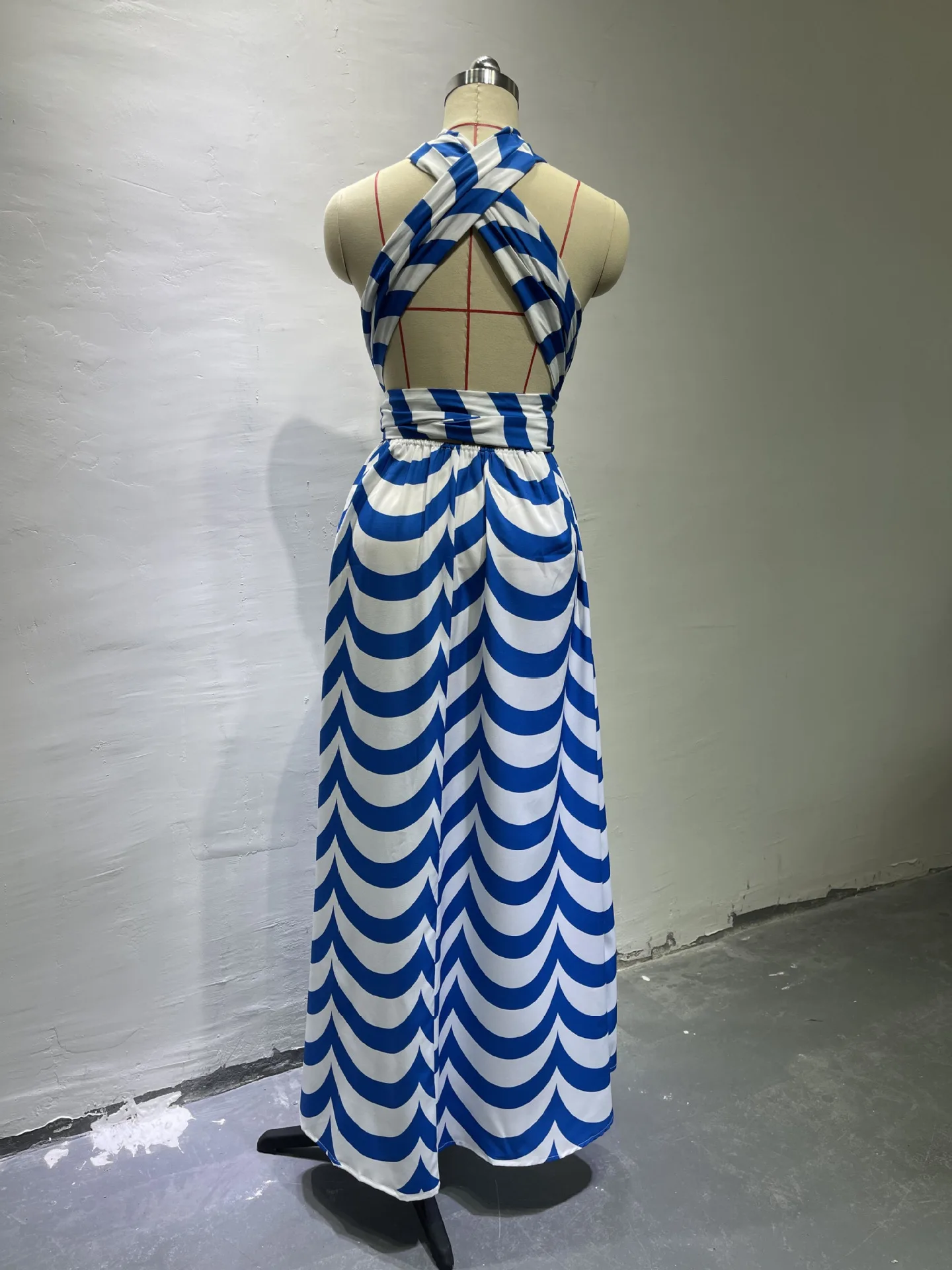 Hk8654 New Arrivals Women Summer Dress 2023 Print Halter Backless High Waist Split Long Dresses Women Beach Resort Party Dress