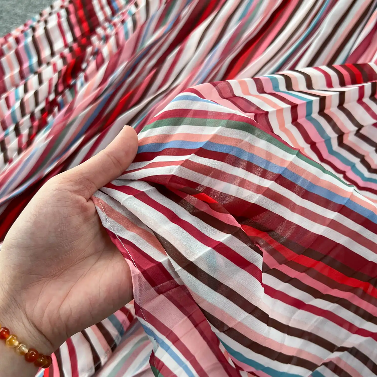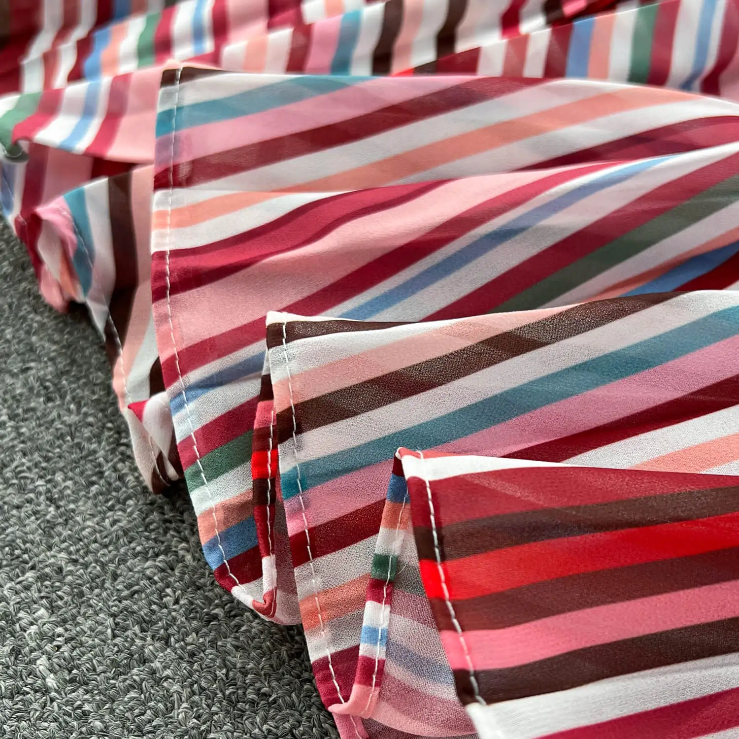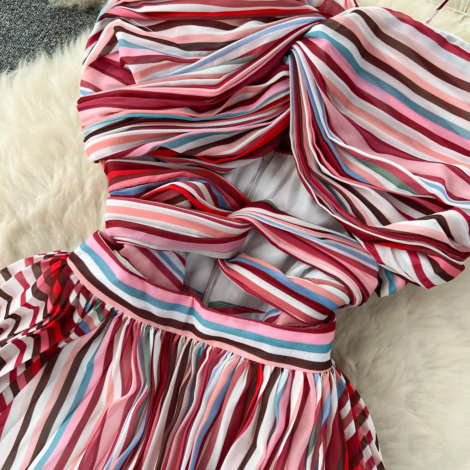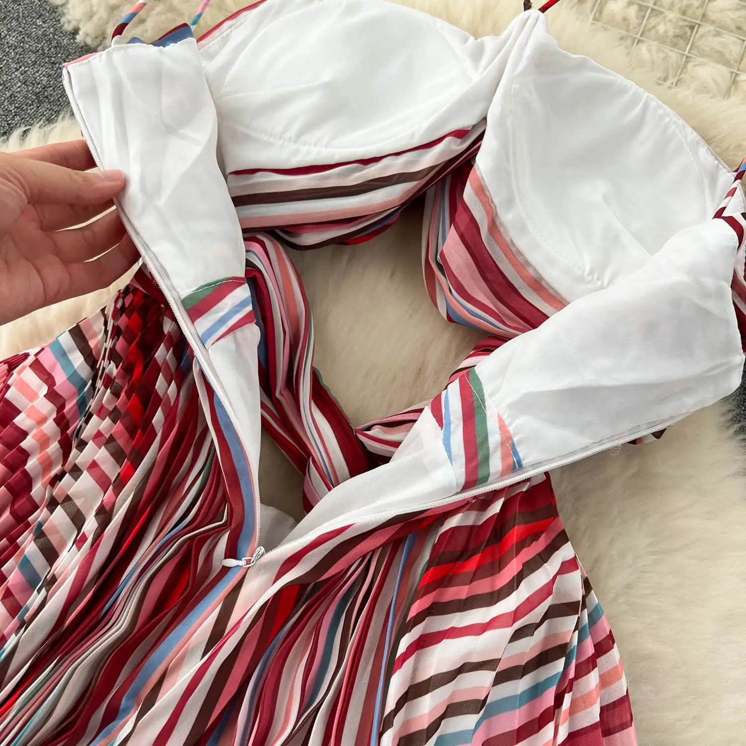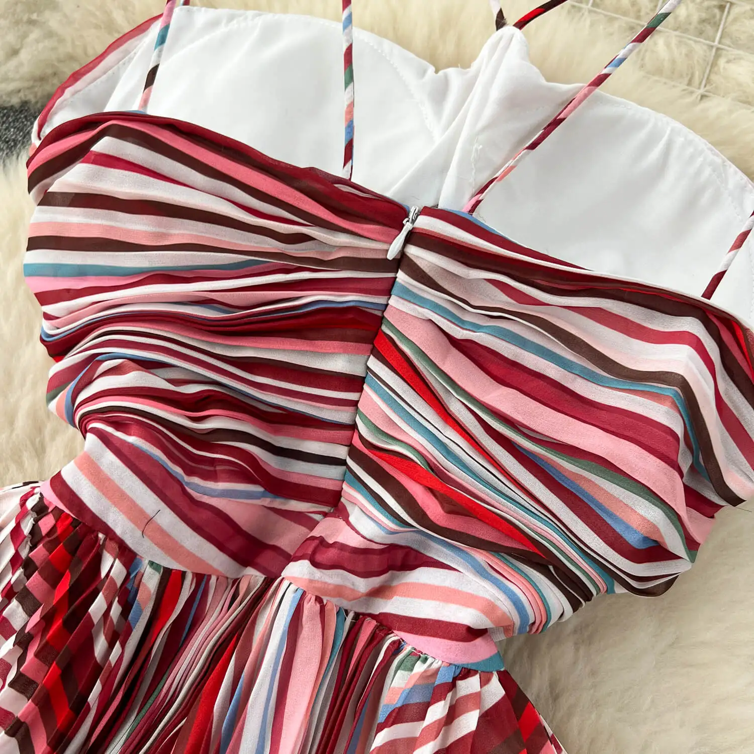 Holiday Style Colorful Stripe halter Dress Hollow out Design for Women's Slim Elegant Beach Skirt
