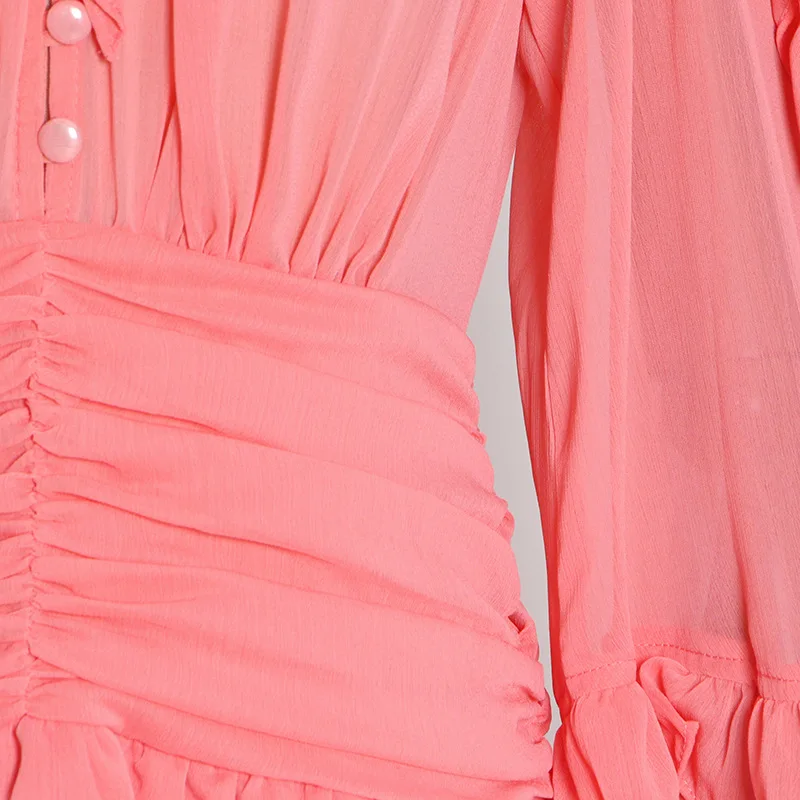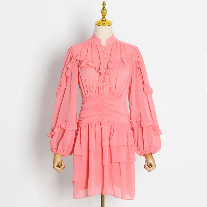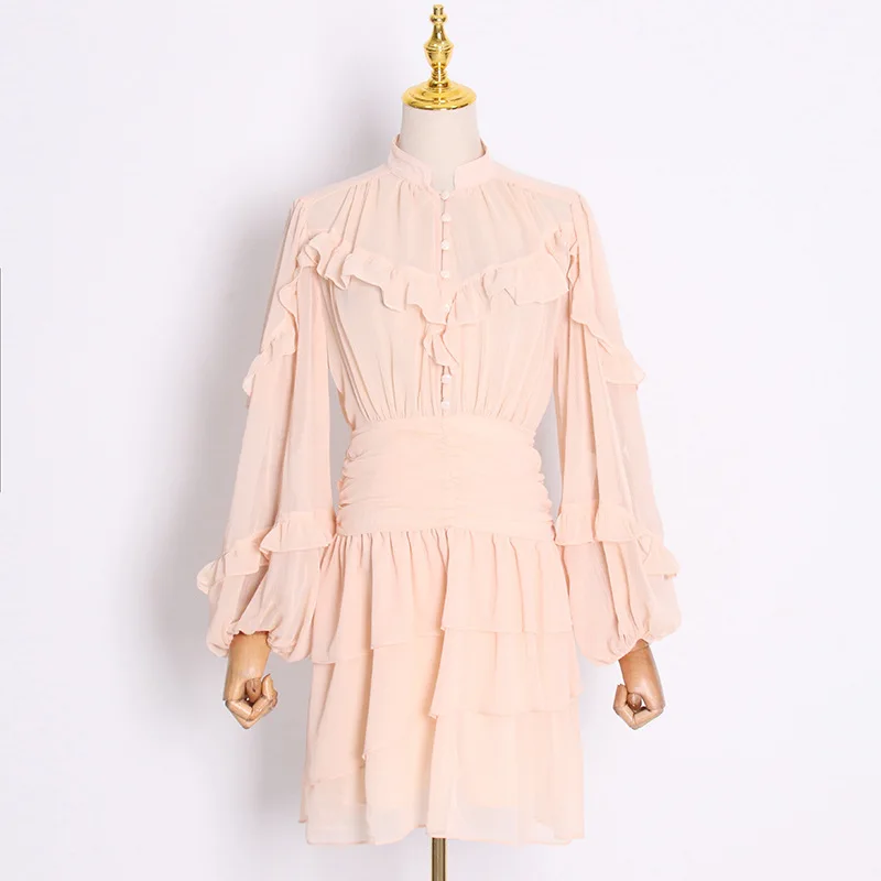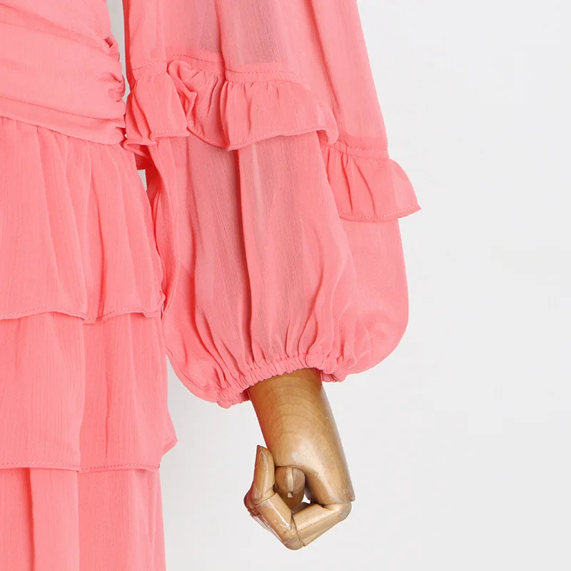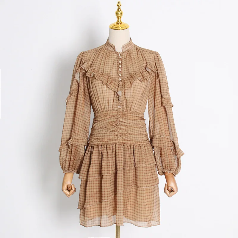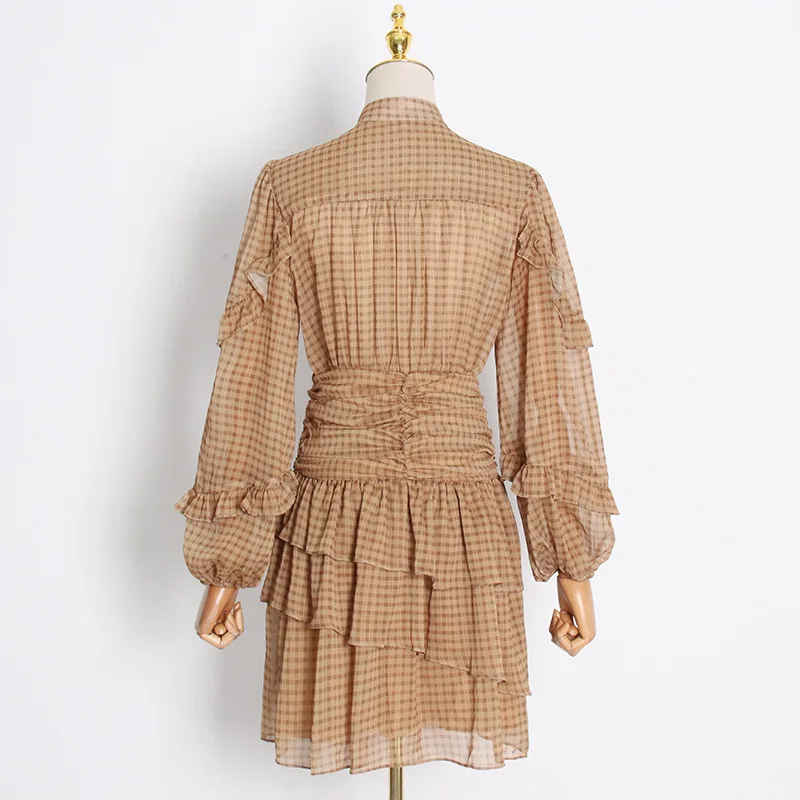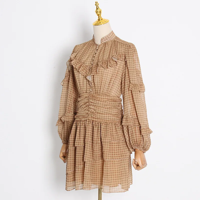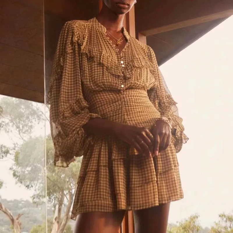 Holiday Style Temperament Ol Commuter Design Sense A-line Skirt 2022 Autumn New Fashion V-Neck Long-sleeved Lace Dress