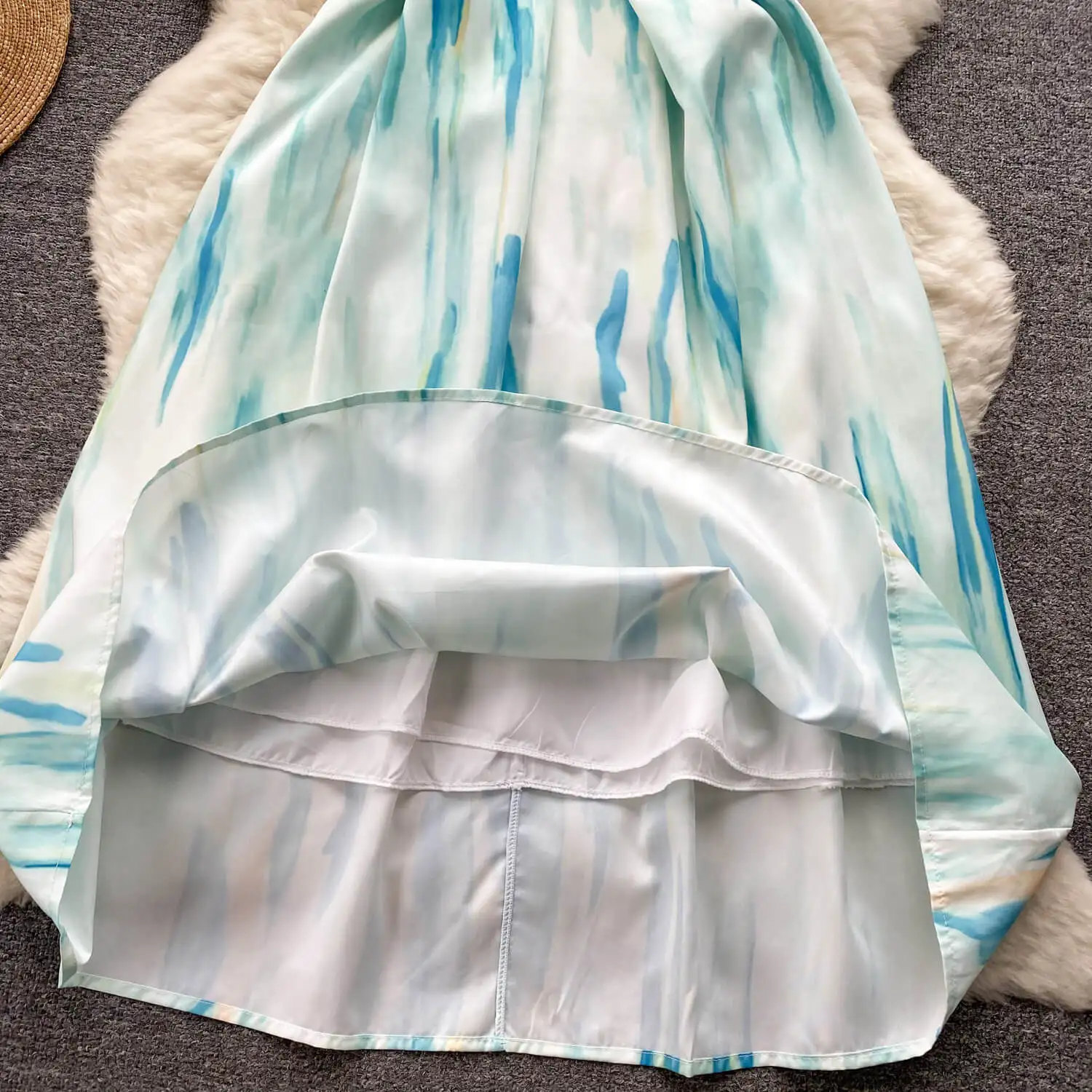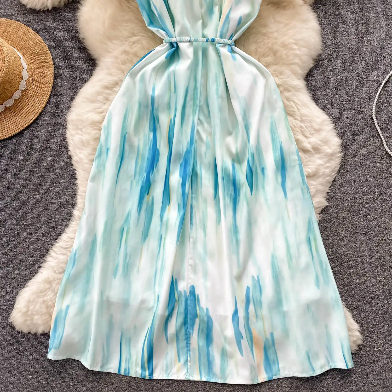 Holiday Wind Dyed Sleeveless Dress Women's Summer Waist High Sense Dress