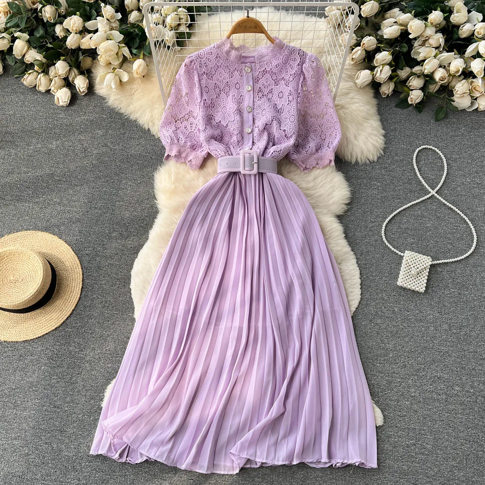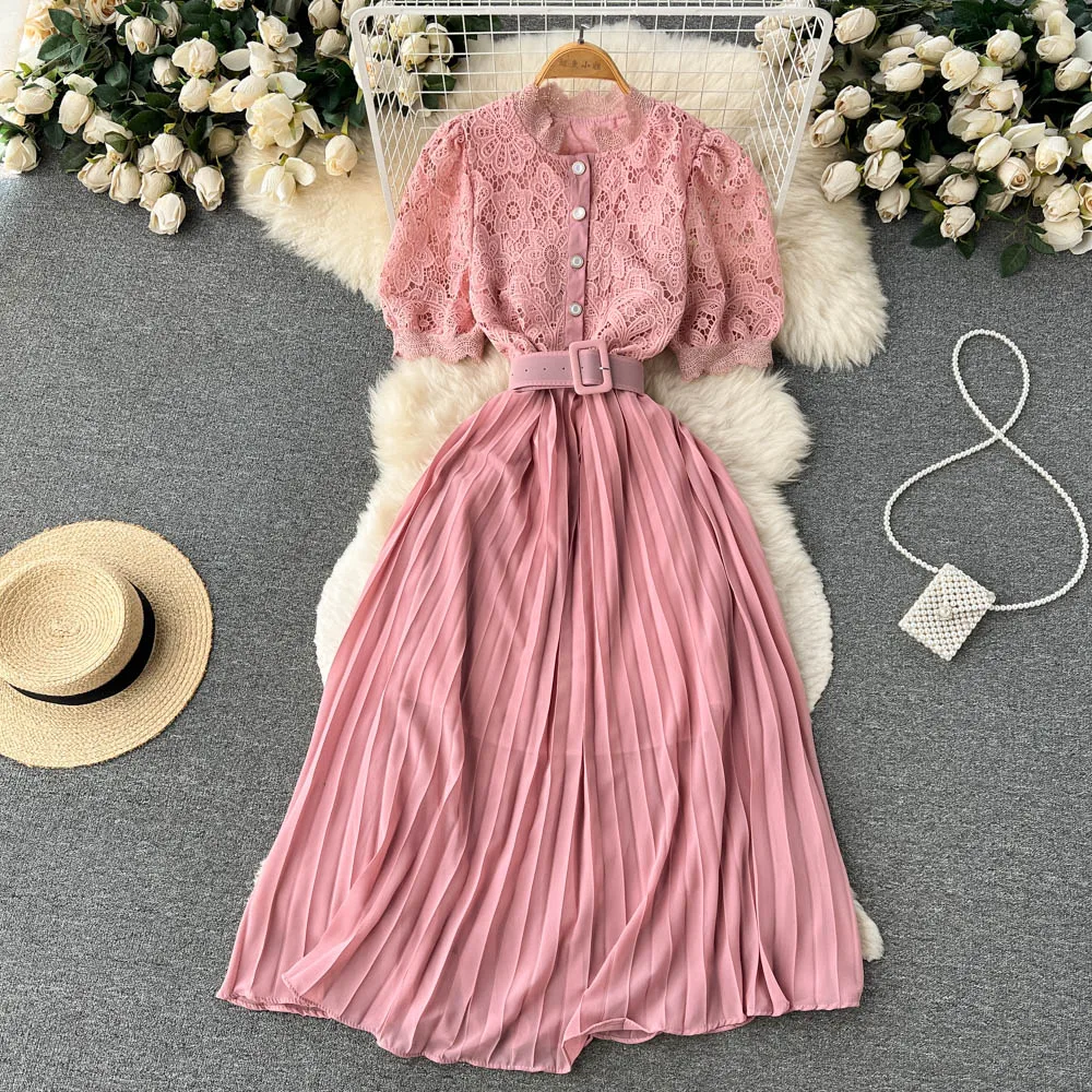 Hollow Embroidered Women'S French Pleated Casual Dress