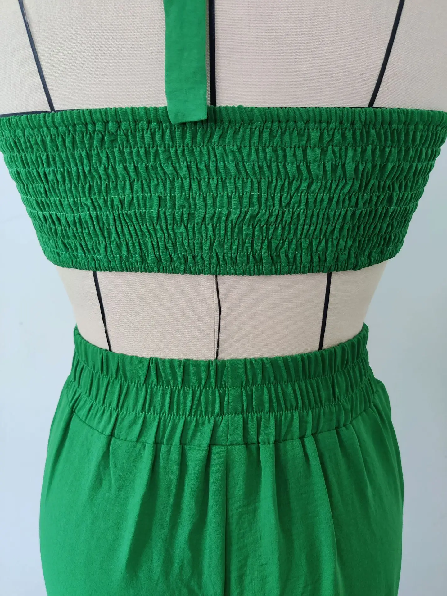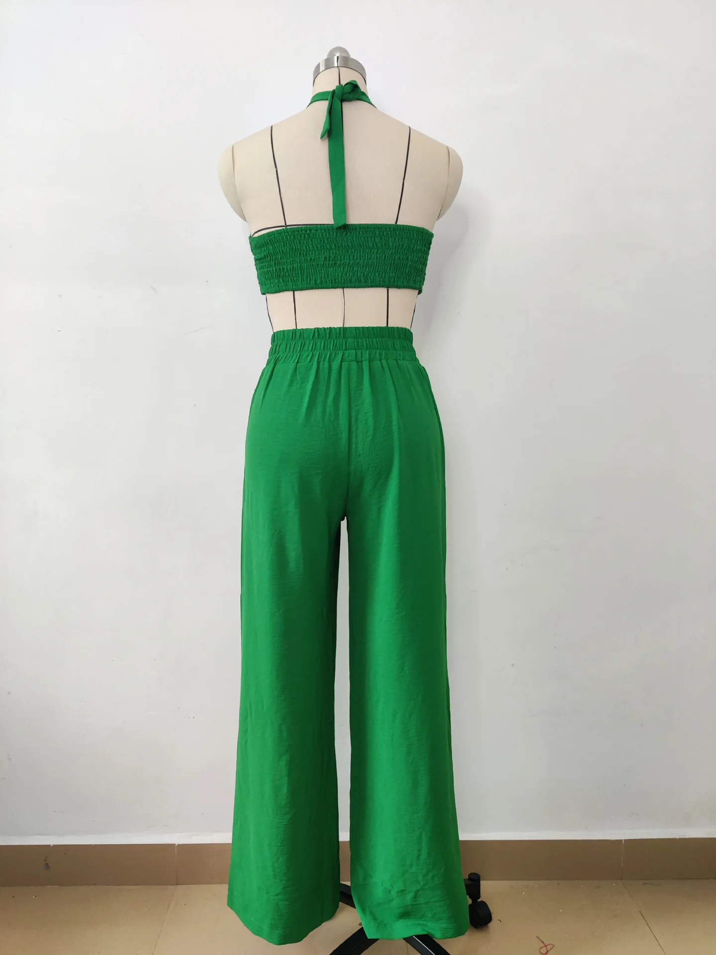Hollow Lace Up Women's Flare Jumpsuit Ladies Fashion Short Sleeve Long Pant 2024 Spring Summer Bodysuit Women's two-piece suit