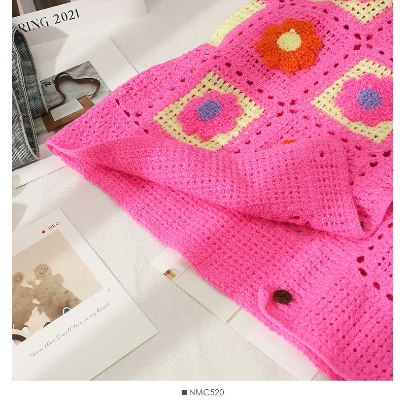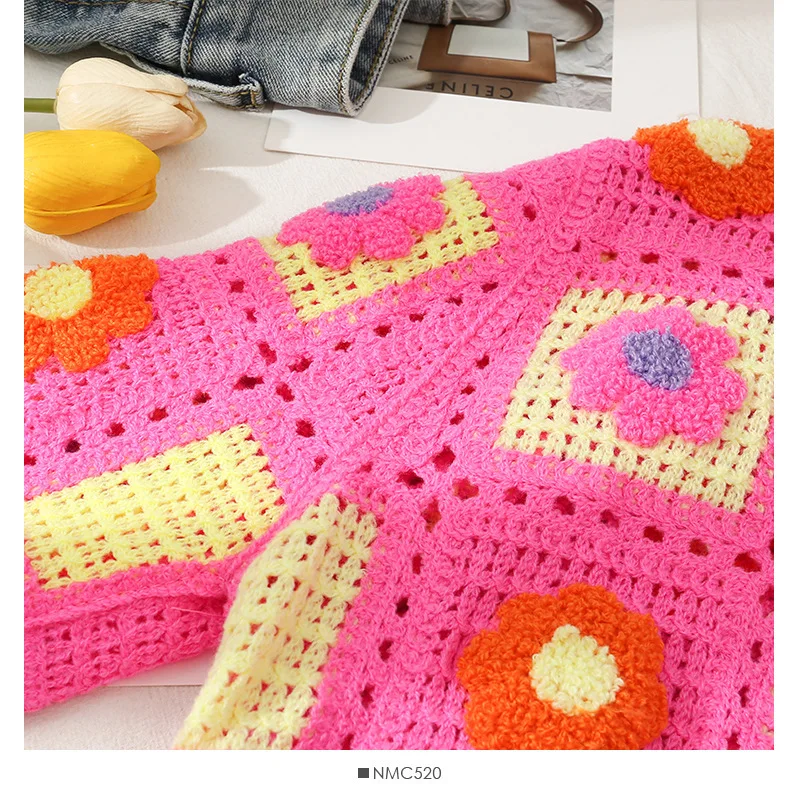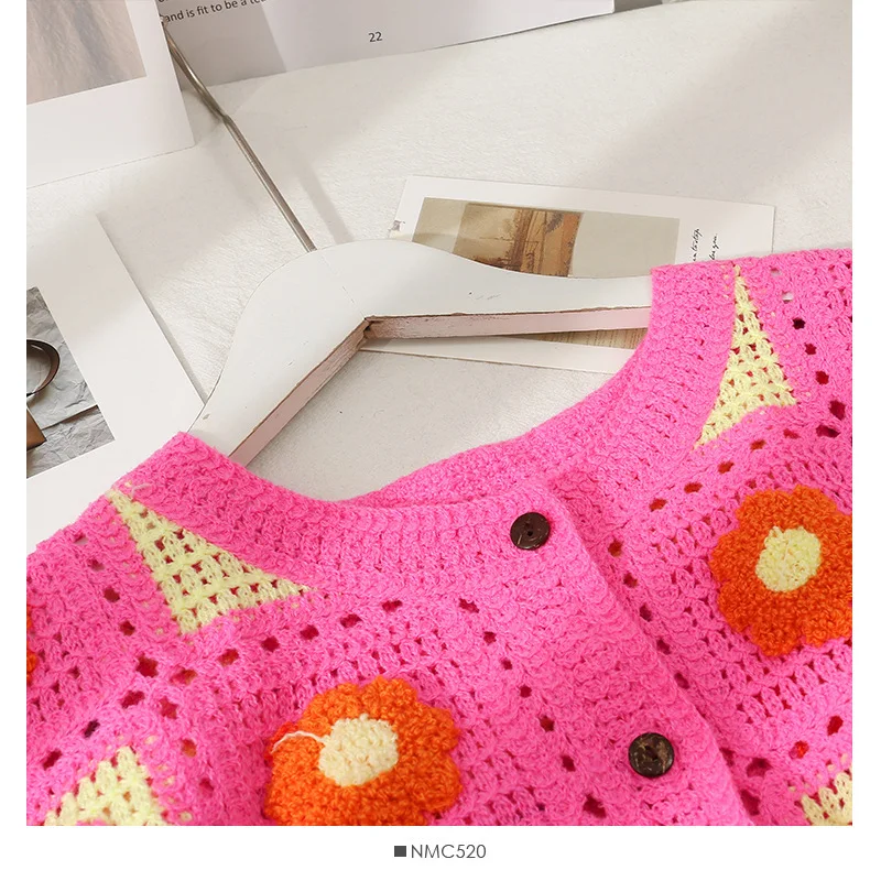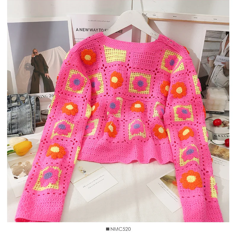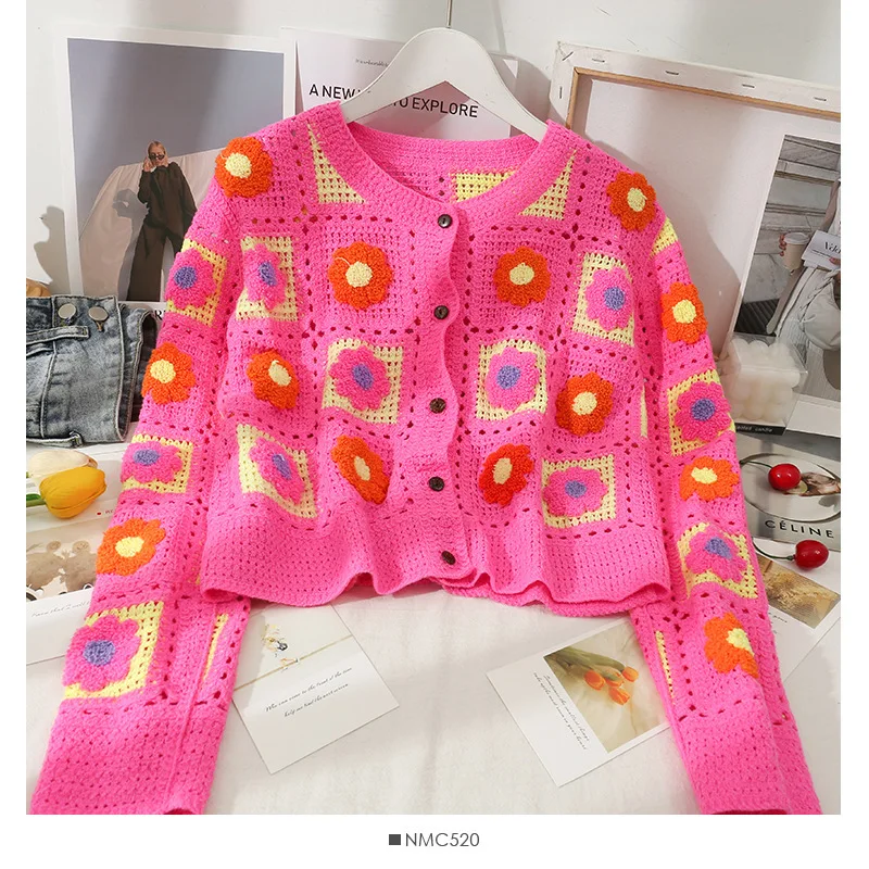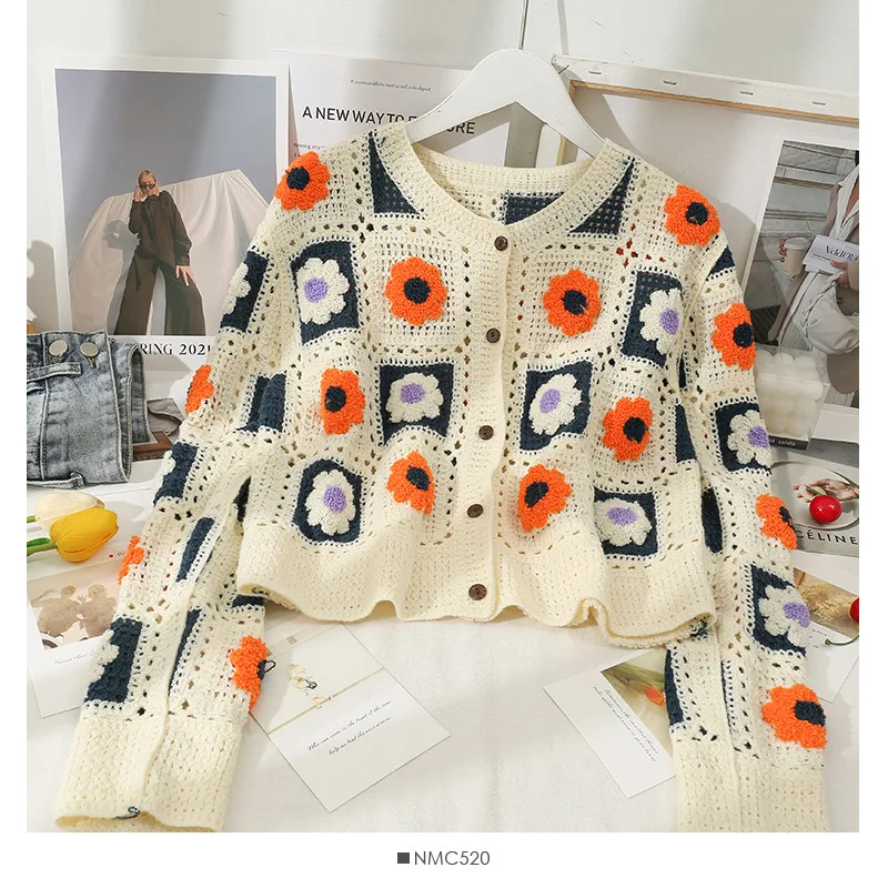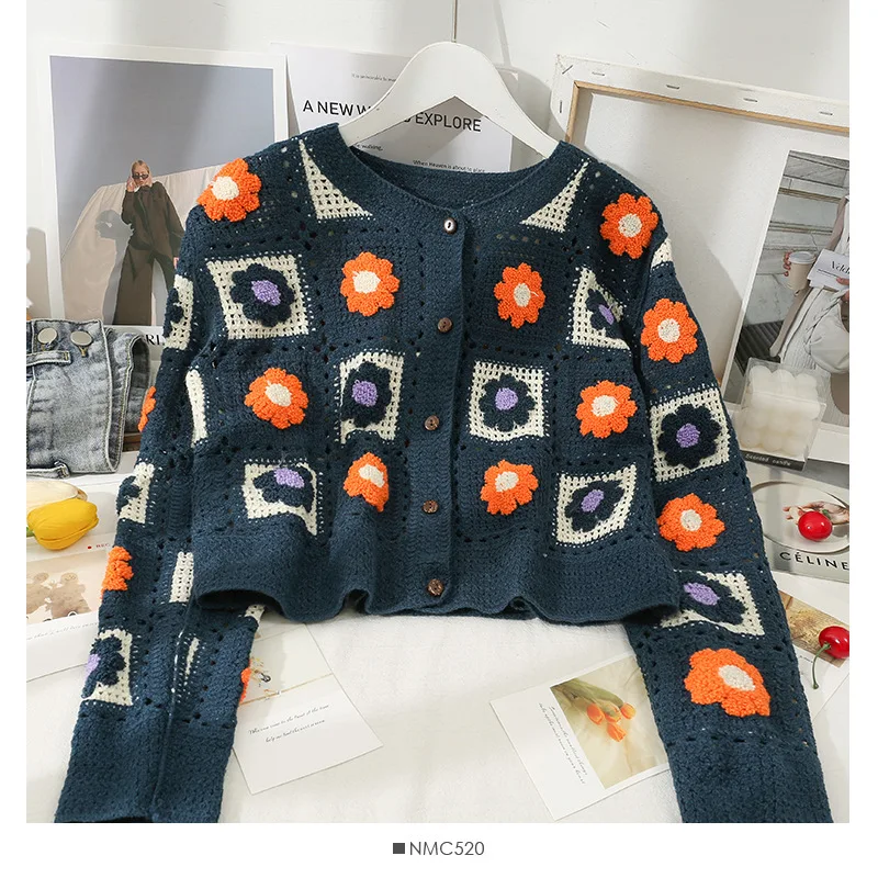 Hollow Out Embroidered Flower Knit Cardigan Retro Lazy Sweet Handwork Embroidered Sweater Jacket Women Coat