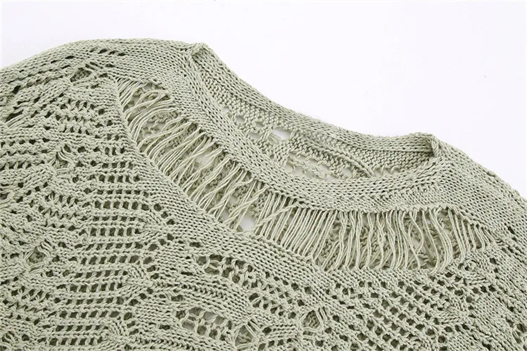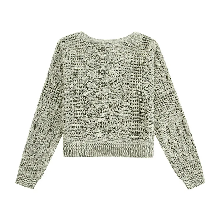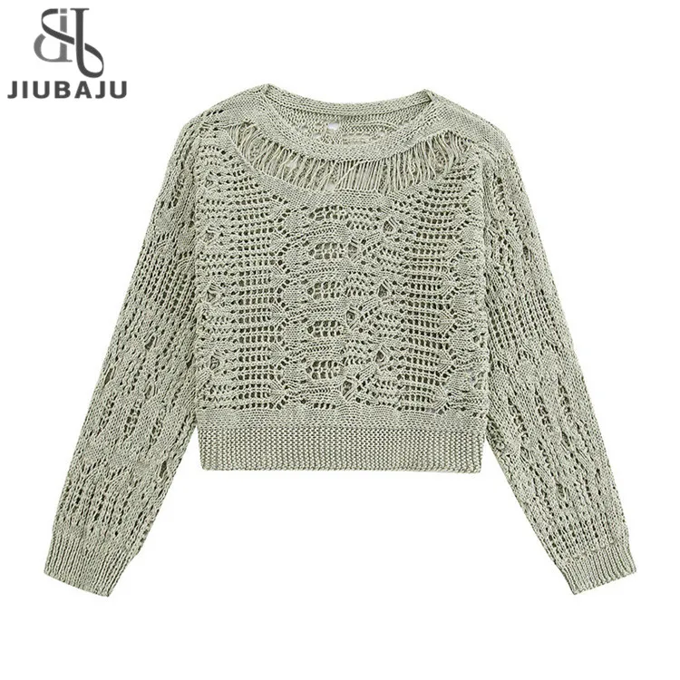Hollow Out Sweater Long Sleeve O Neck Pullovers Knitwear Sexy Jumper Lady Streetwear